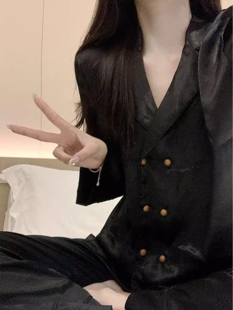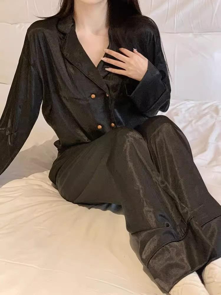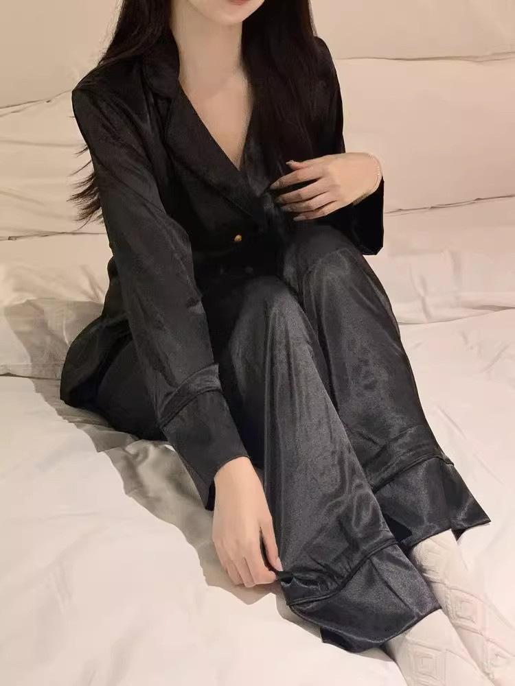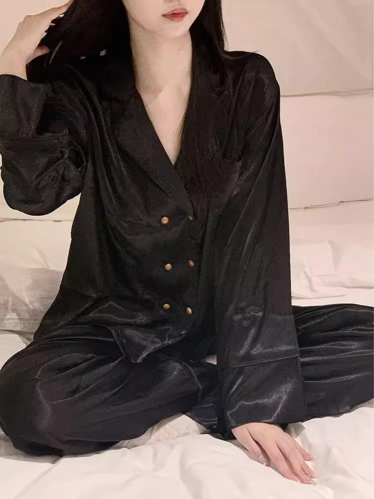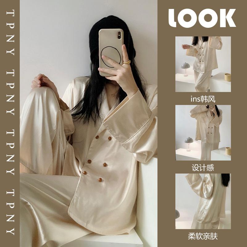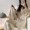 Puesto en stock-ins Viento rojo neto pijamas de Mujer Primavera y Otoño cárdigan de manga larga delgado seda artificial traje para estar en casa