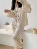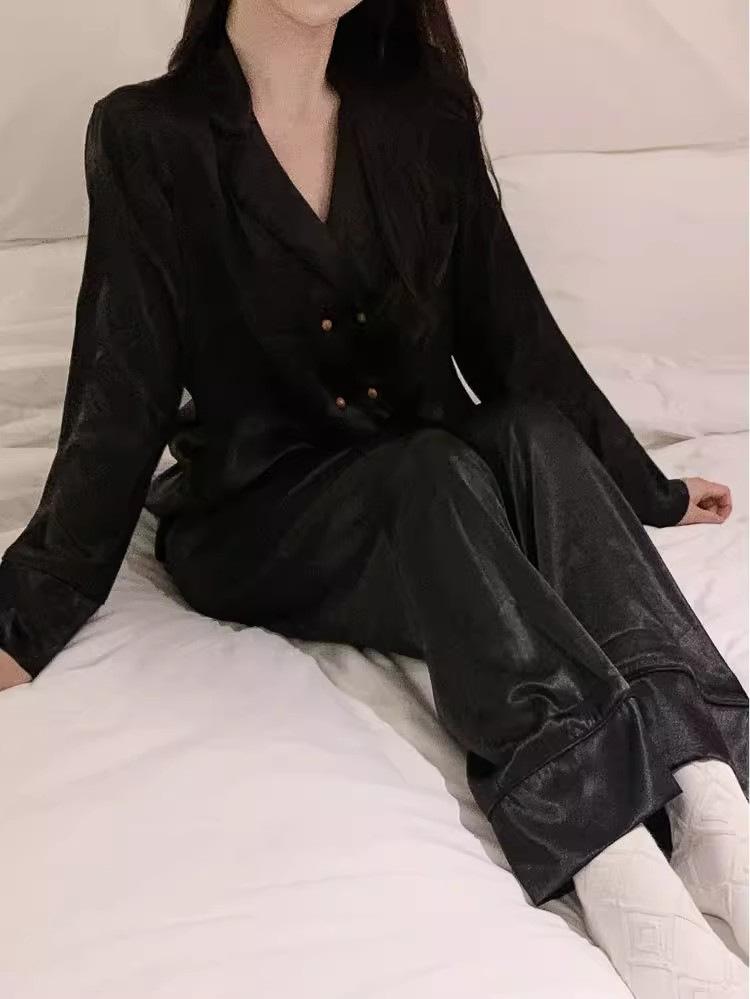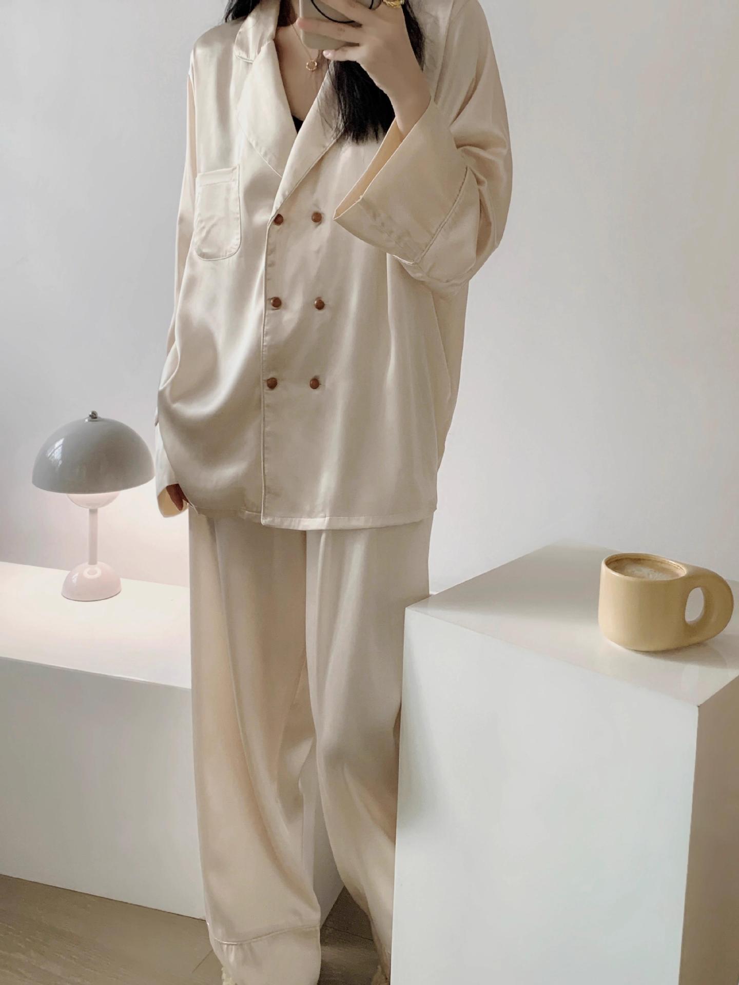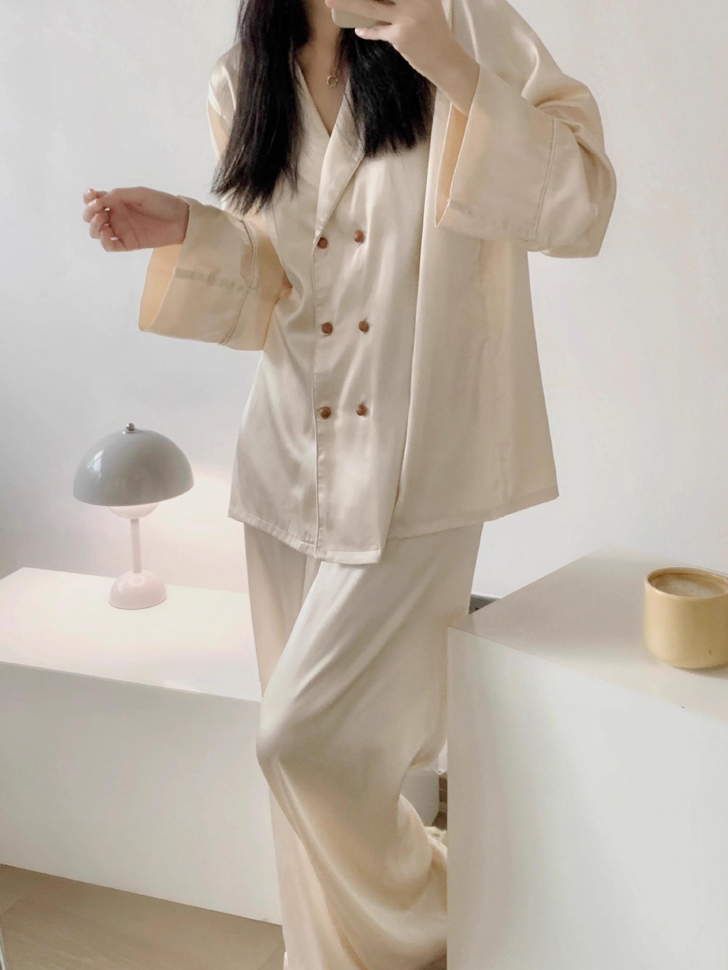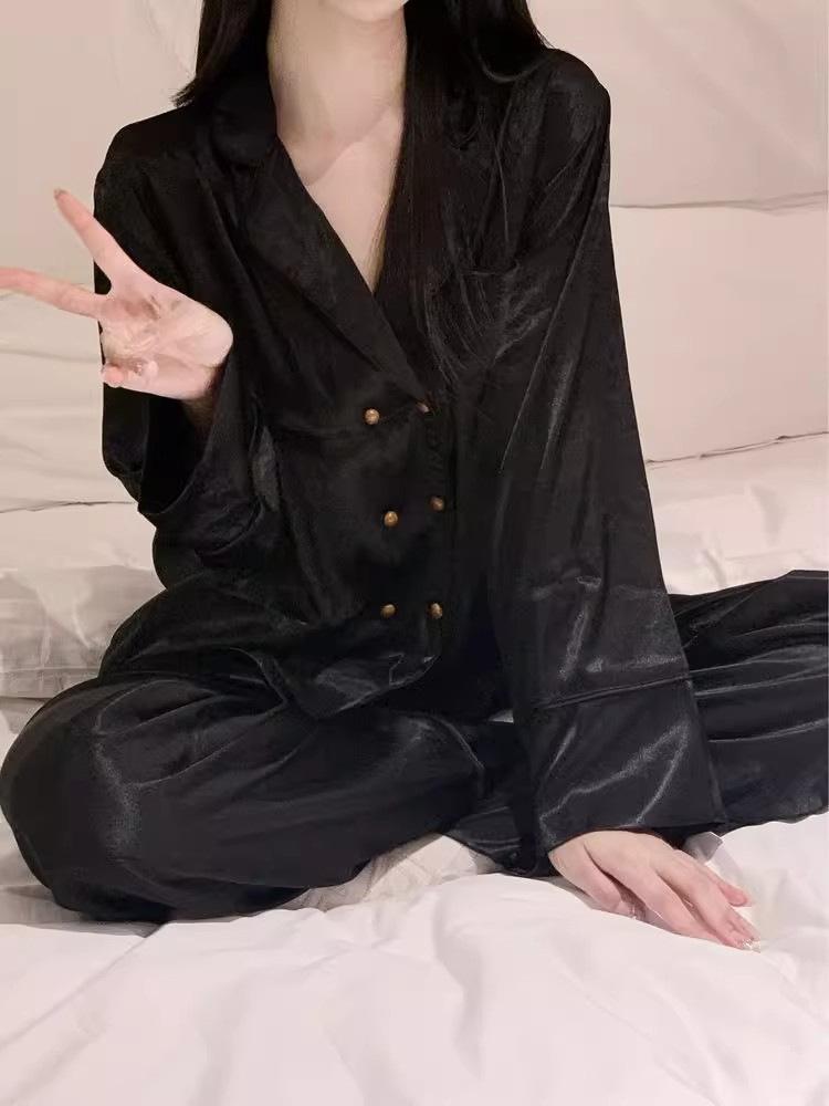 Puesto en stock-ins Viento rojo neto pijamas de Mujer Primavera y Otoño cárdigan de manga larga delgado seda artificial traje para estar en casa