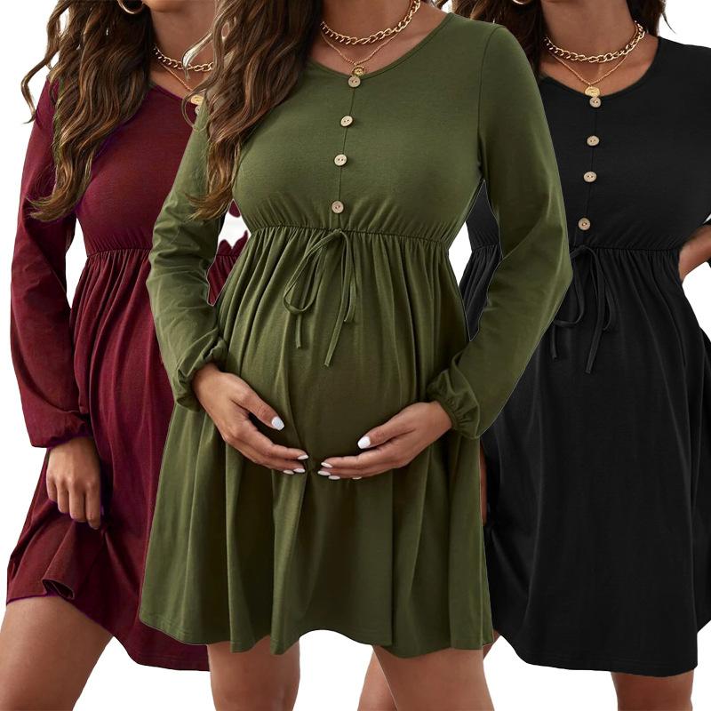 Nuevo punto de suministro transfronterizo vestido premamá de cabello lacio vestido de manga larga