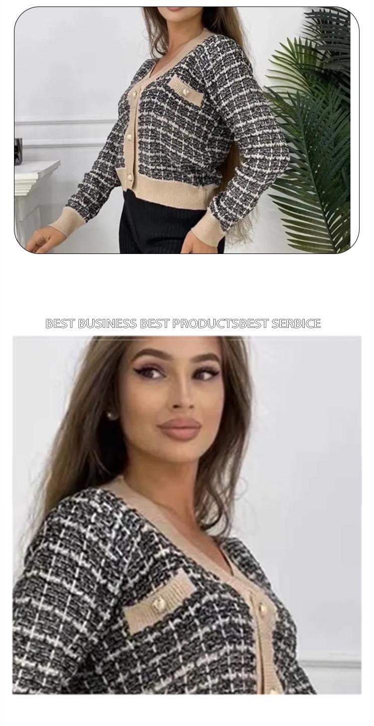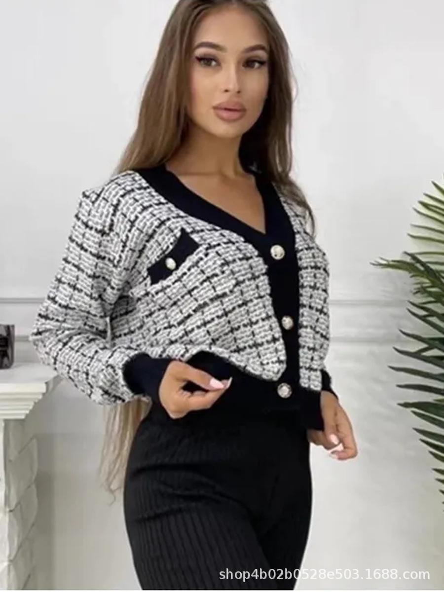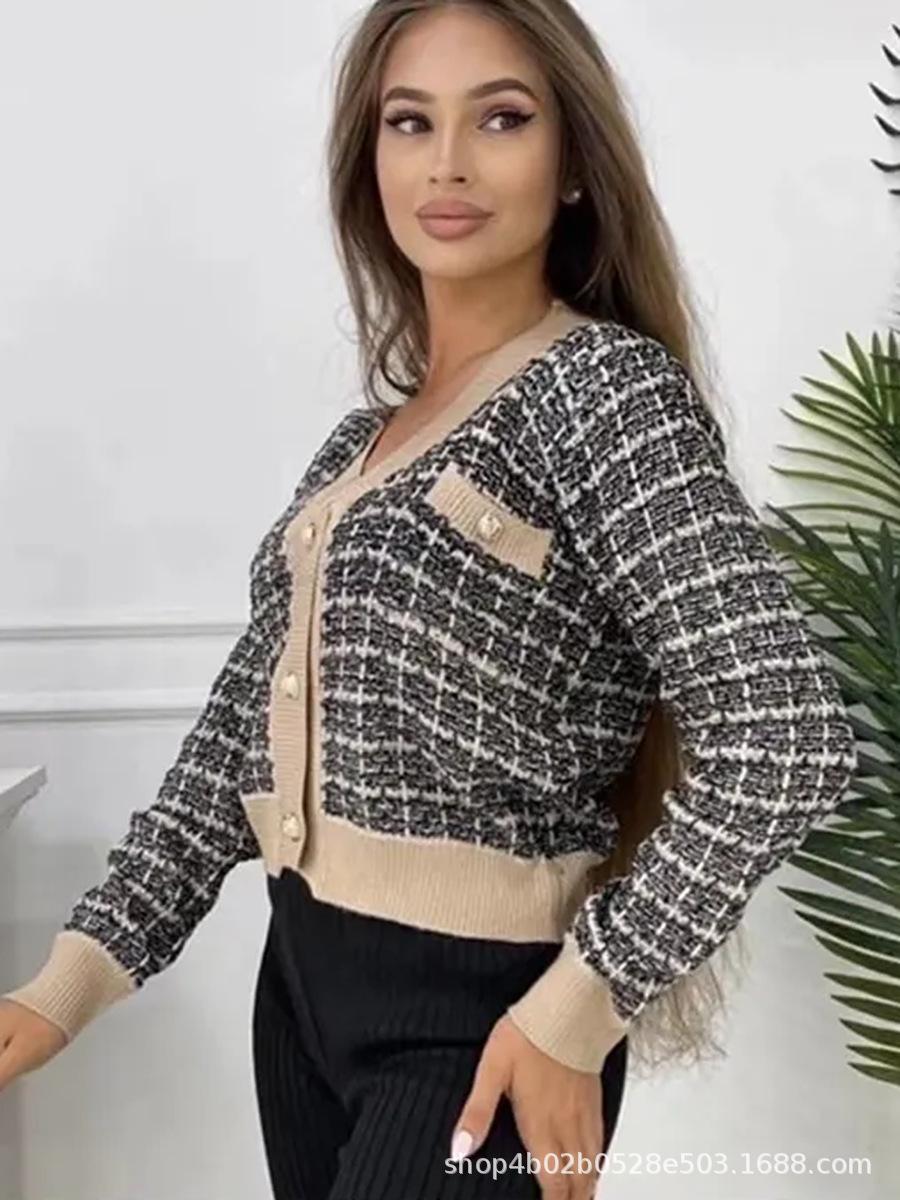 Amazon AliExpress Europa y América 2024 Otoño e Invierno Cárdigan Corto Cuello en V Suéter de Punto Top Mujer Comercio Exterior Transfronterizo