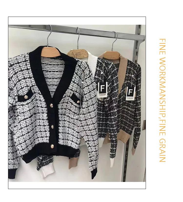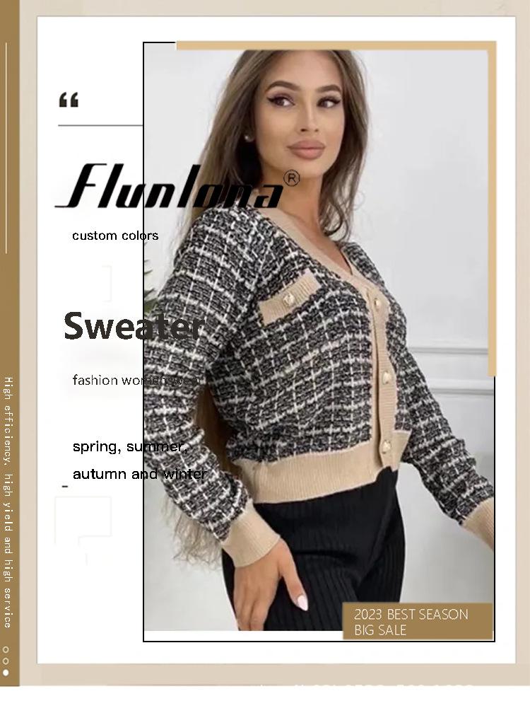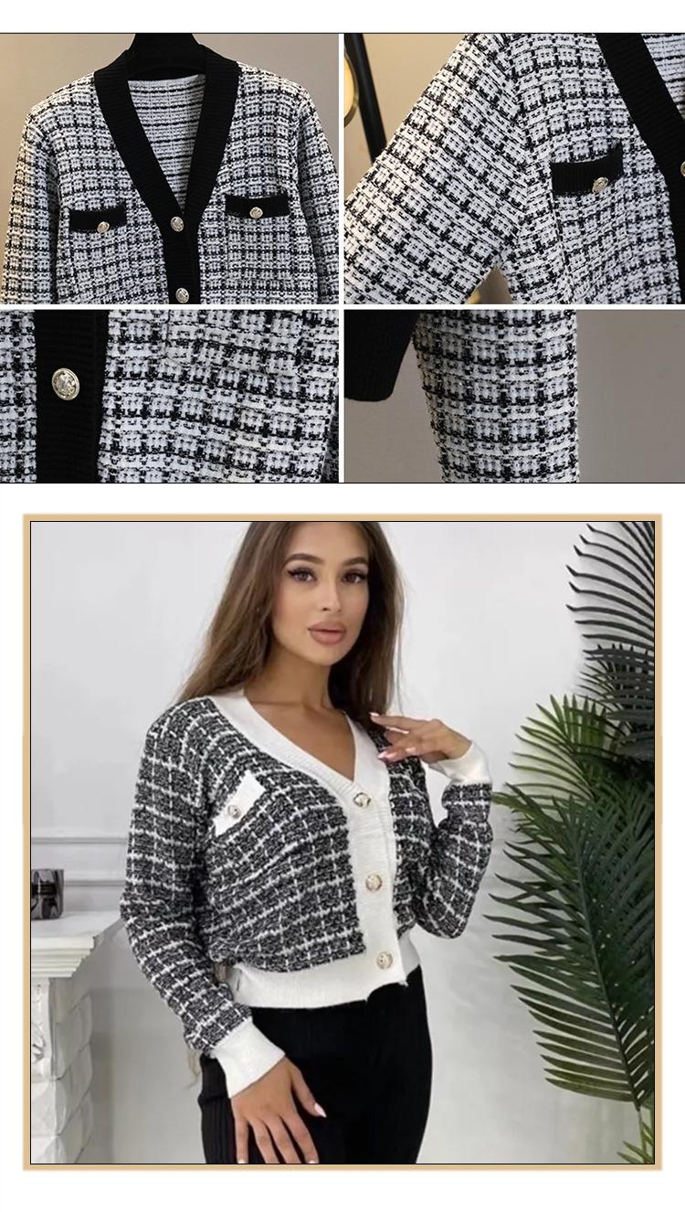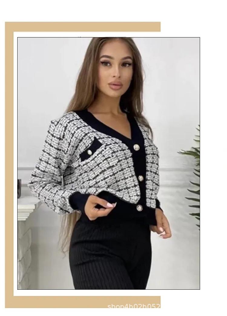 Amazon AliExpress Europa y América 2024 Otoño e Invierno Cárdigan Corto Cuello en V Suéter de Punto Top Mujer Comercio Exterior Transfronterizo