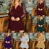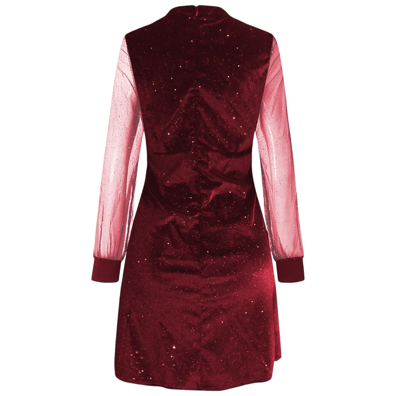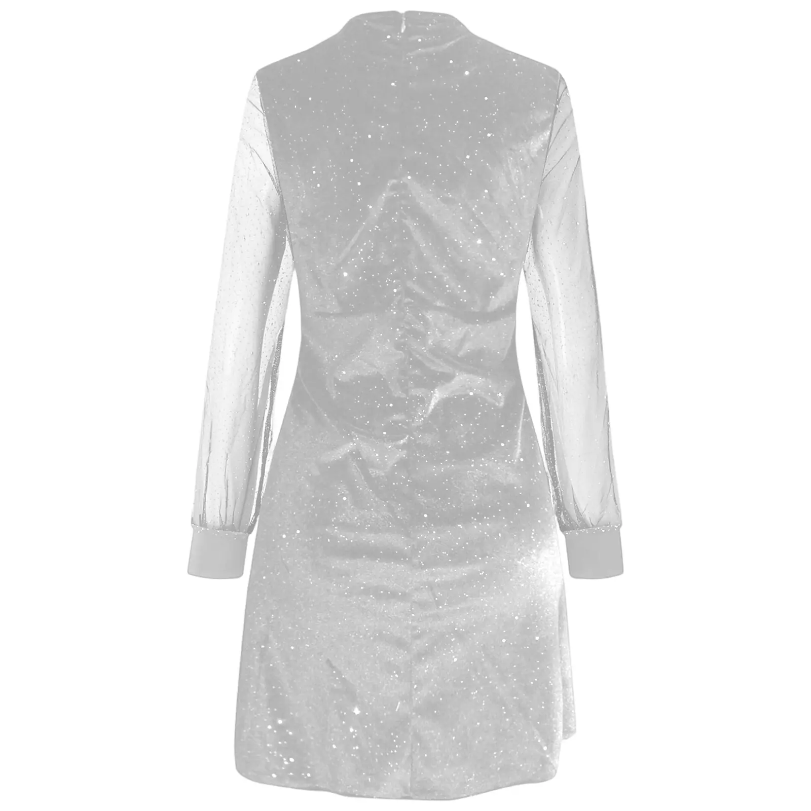 Vestido de noche de manga larga con encaje, sexy, ajustado, de color liso, para mujer europea y americana