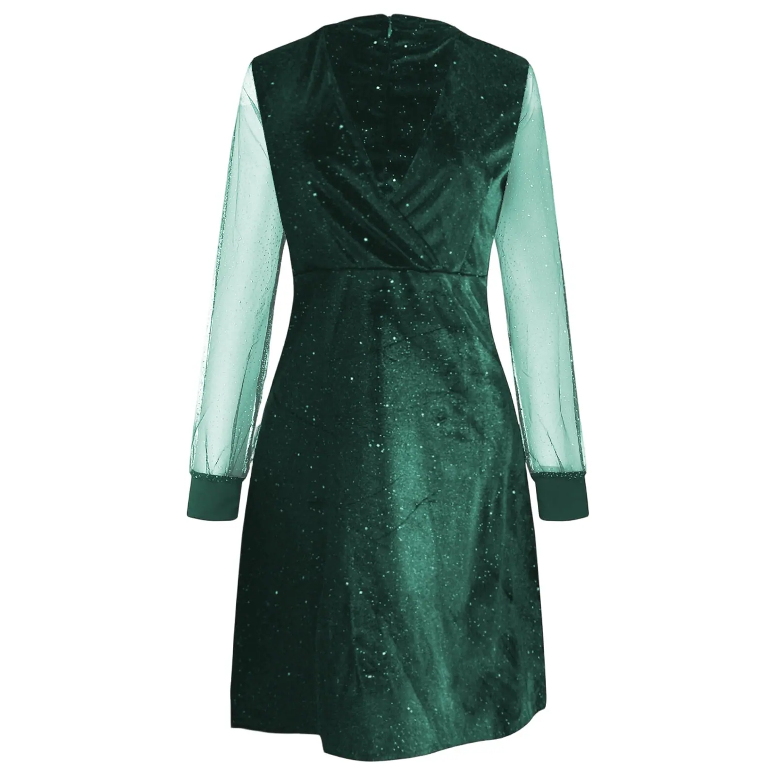 Compra Vestido de noche de manga larga con encaje, sexy, ajustado, de color liso, para mujer europea y americana al por mayor en Joom.pro