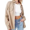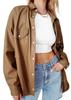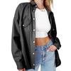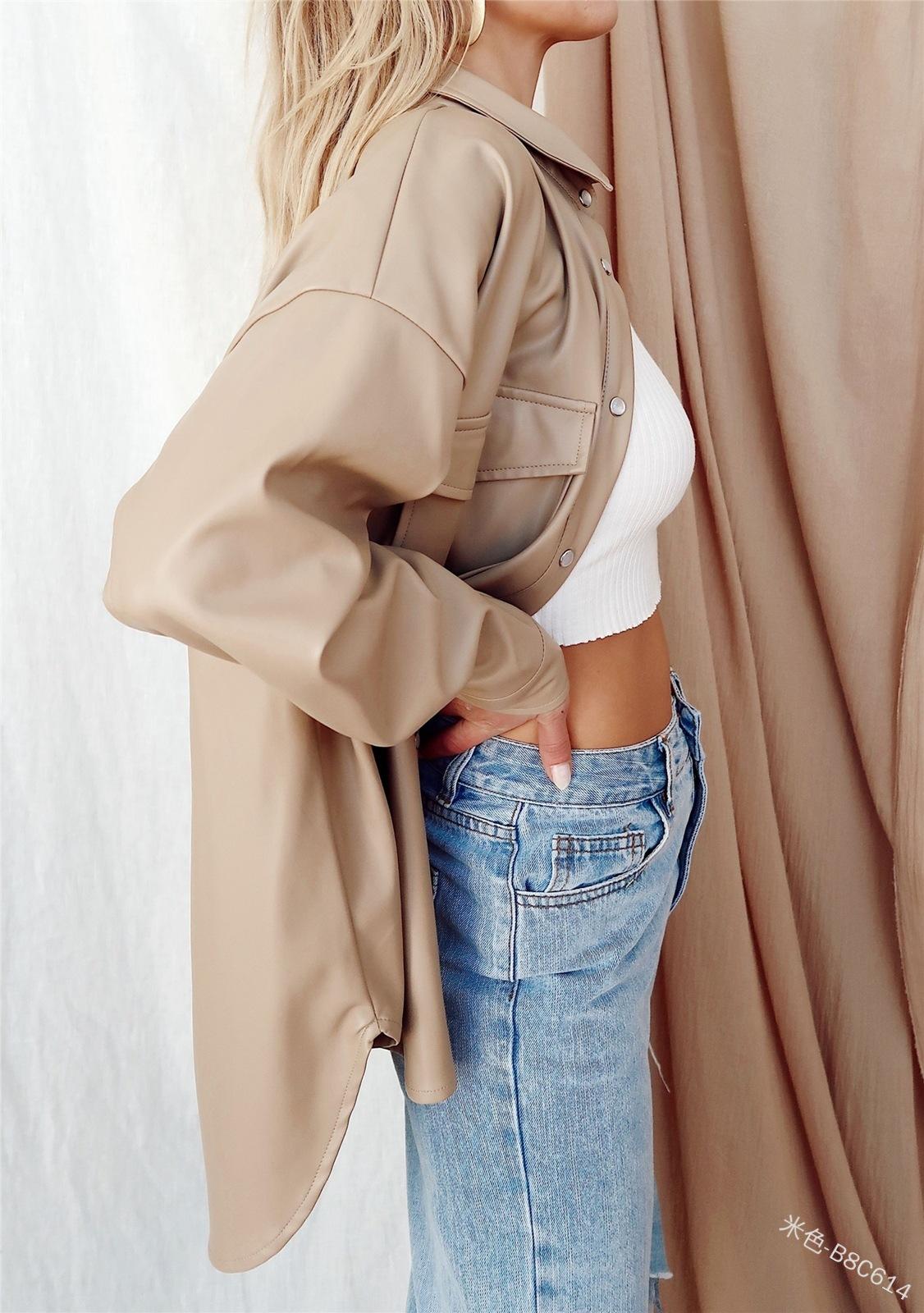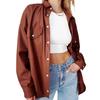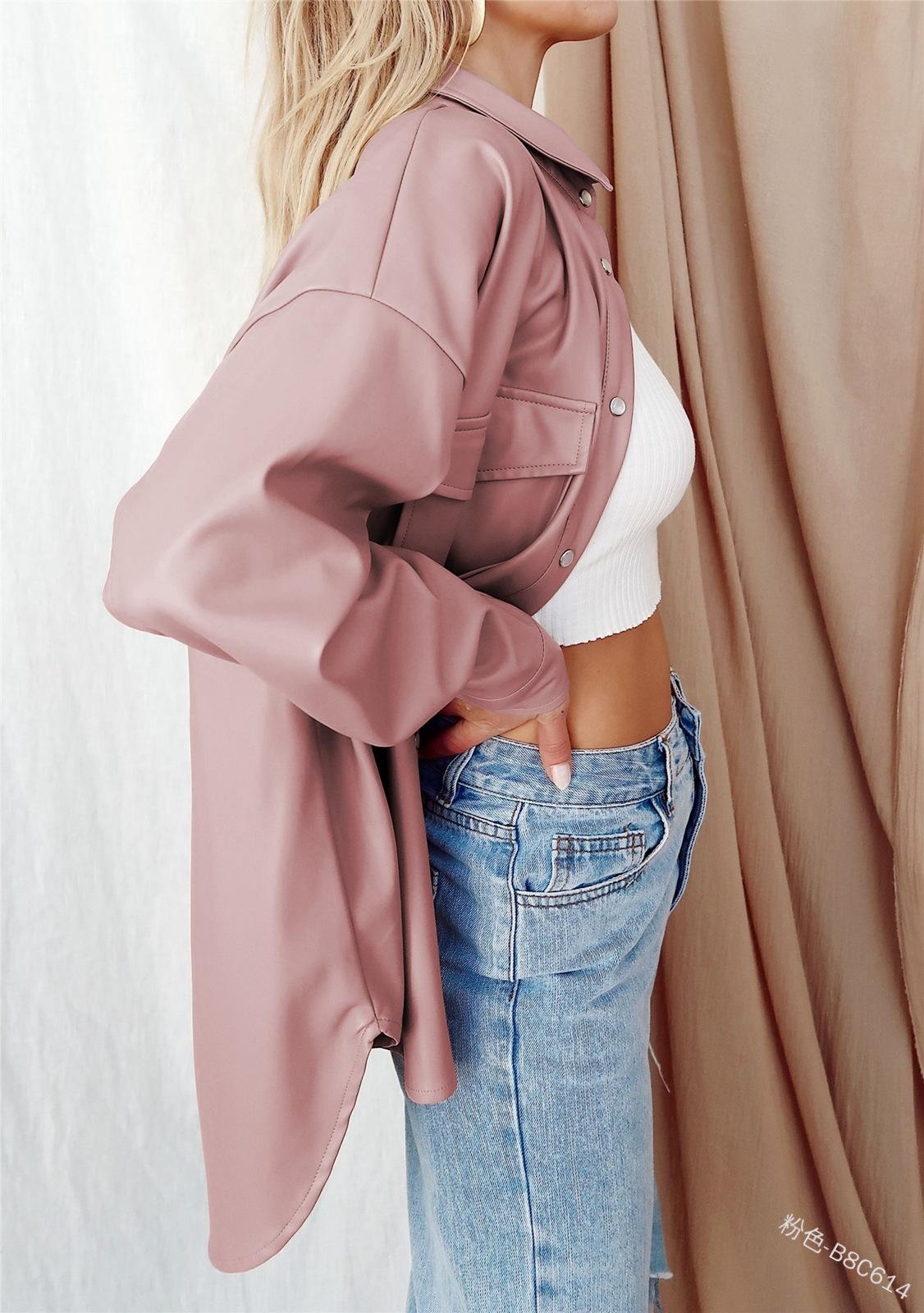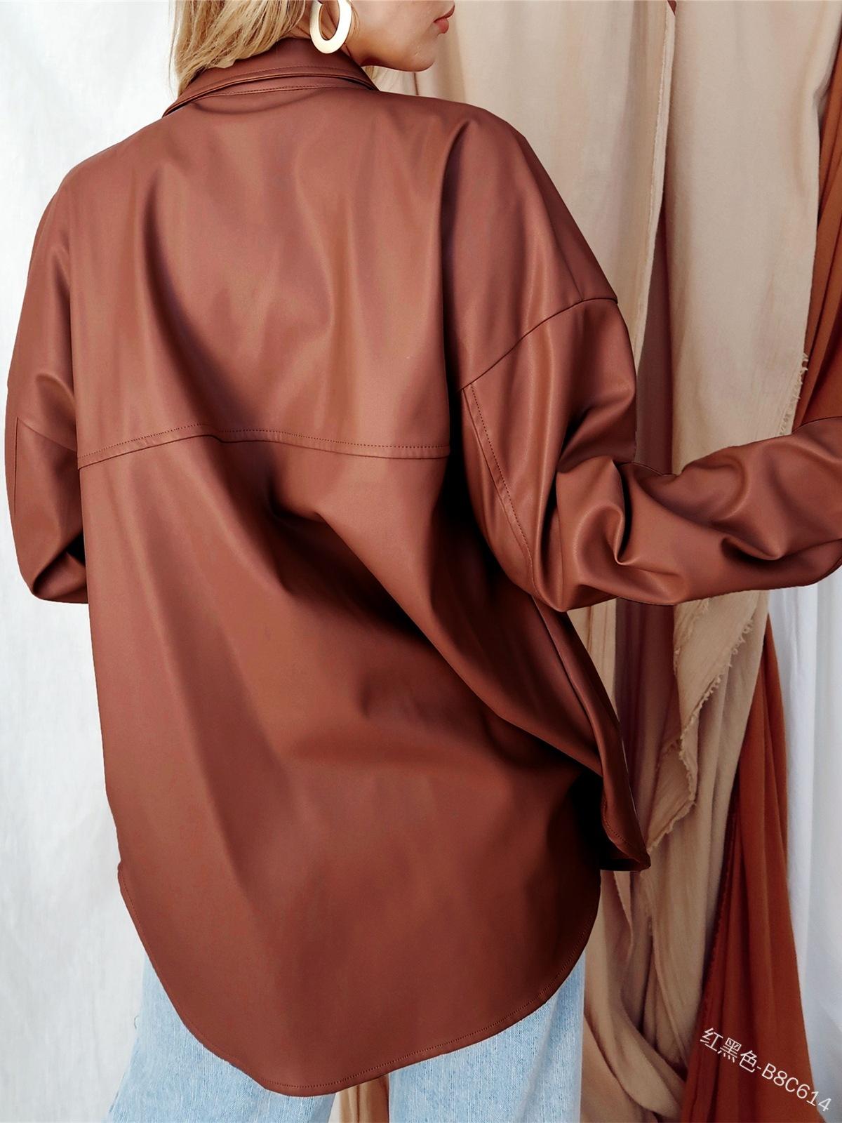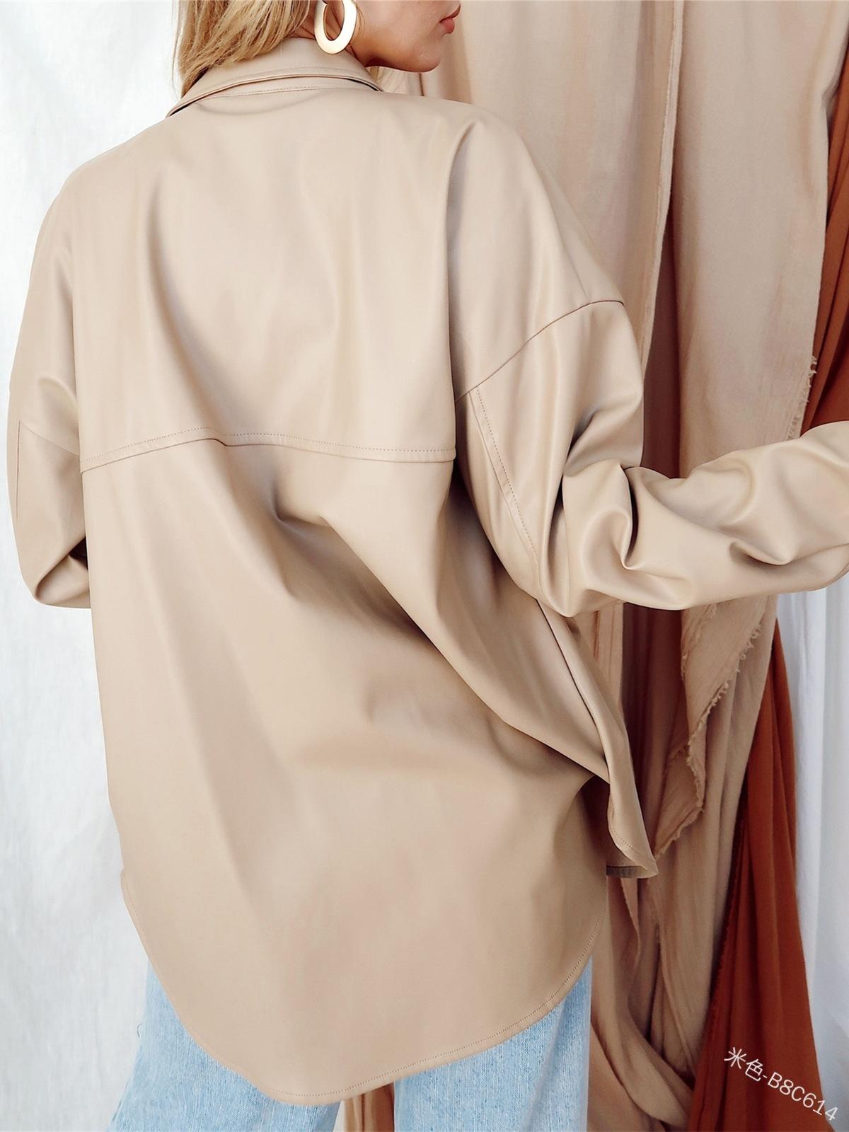 Camisa de solapa de color sólido de Amazon transfronteriza, chaqueta de PU para mujer, nueva moda casual, tops de un solo botón para mujer, peso: 415-505 gramos