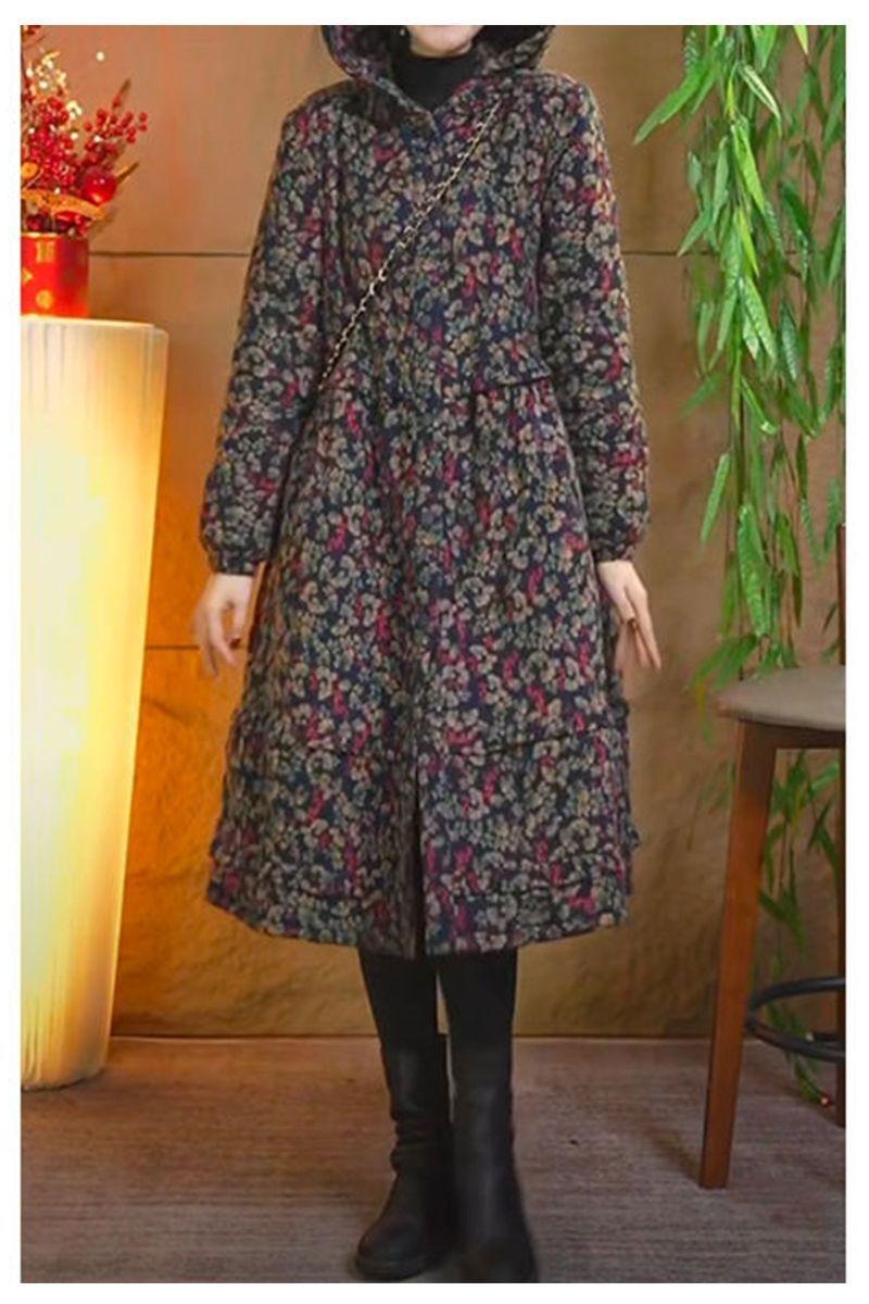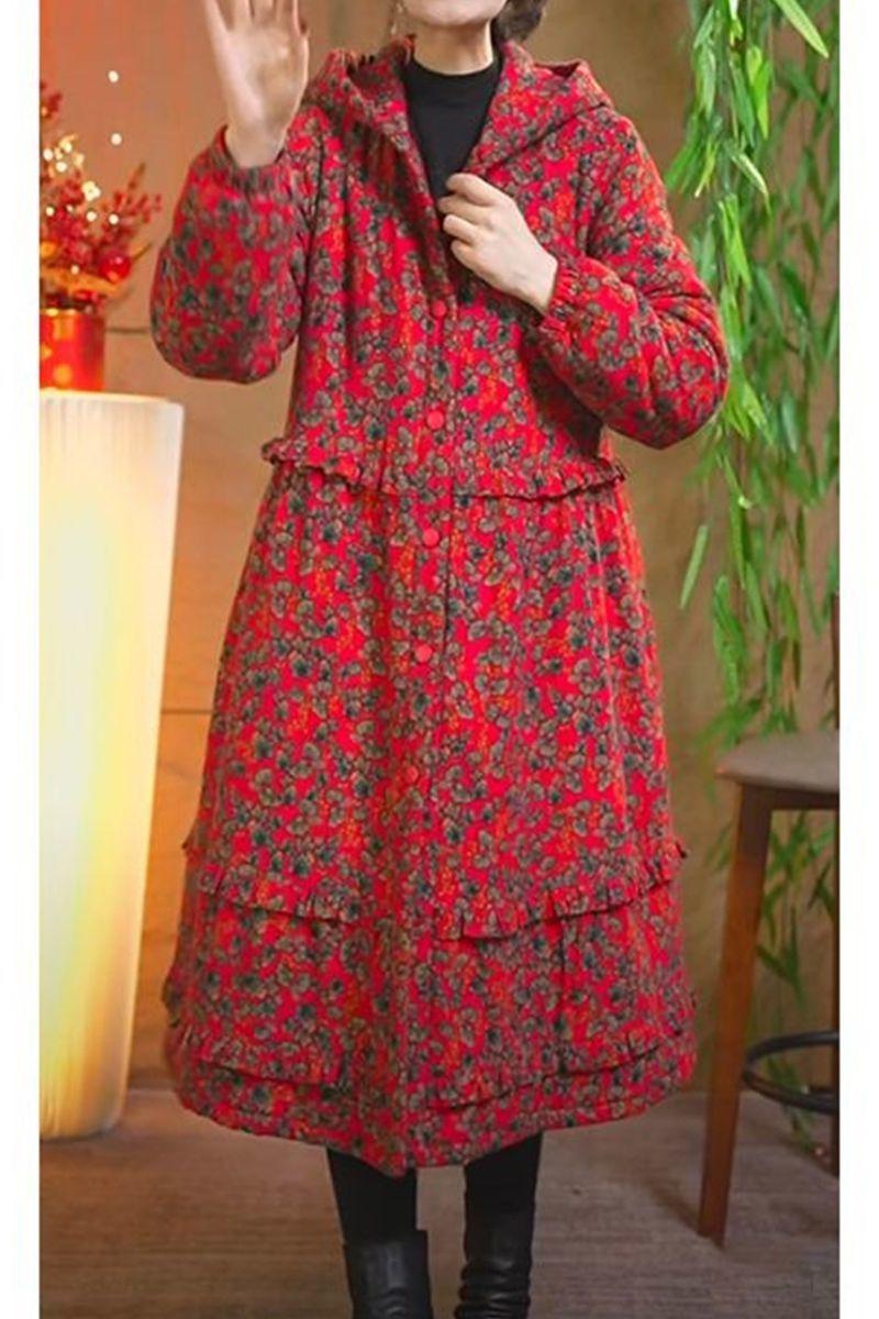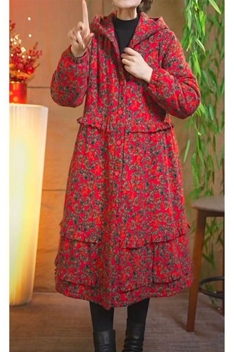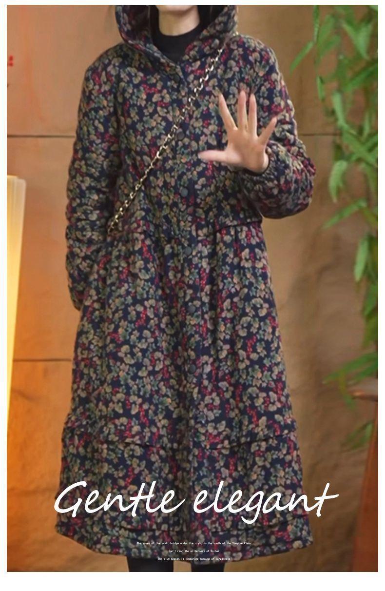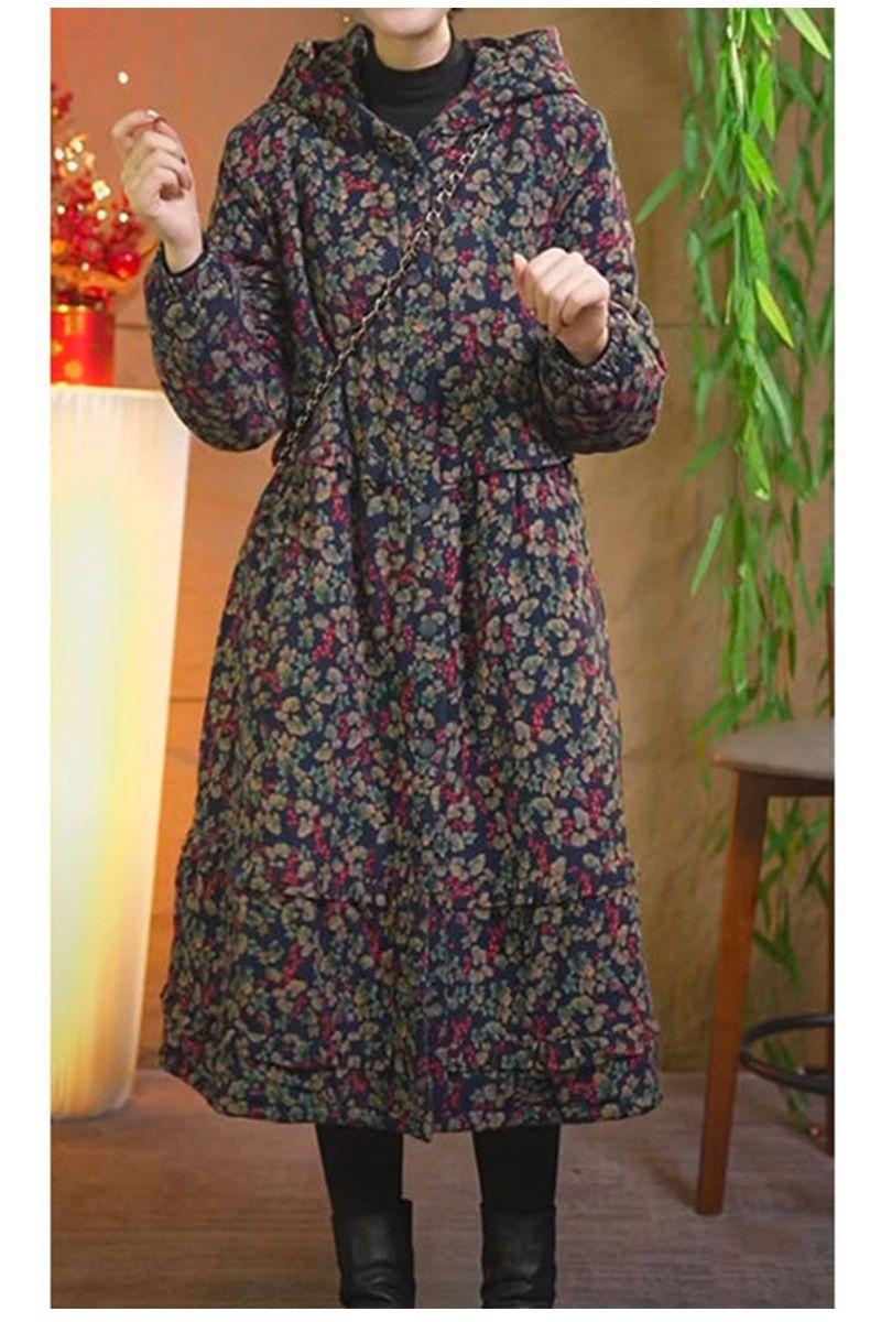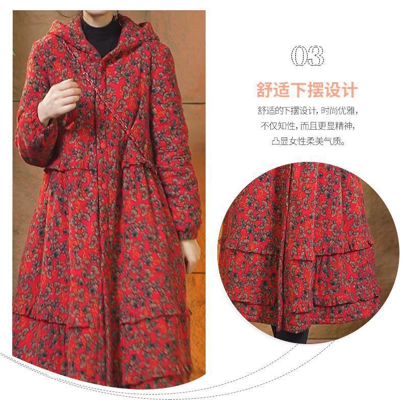 Abrigo acolchado de algodón cálido con capucha y estampado floral de alta gama para mujer 2023 Invierno adelgazante de longitud media para mamás