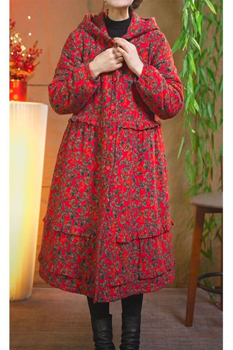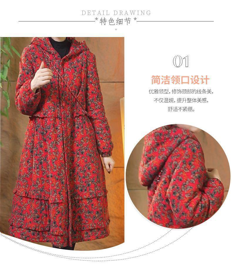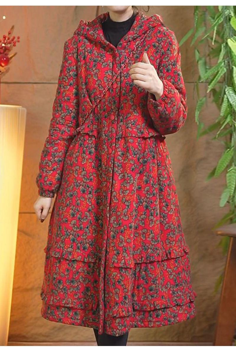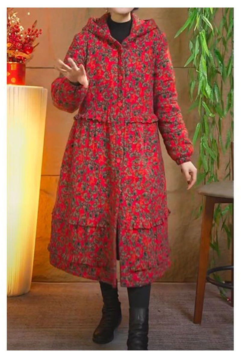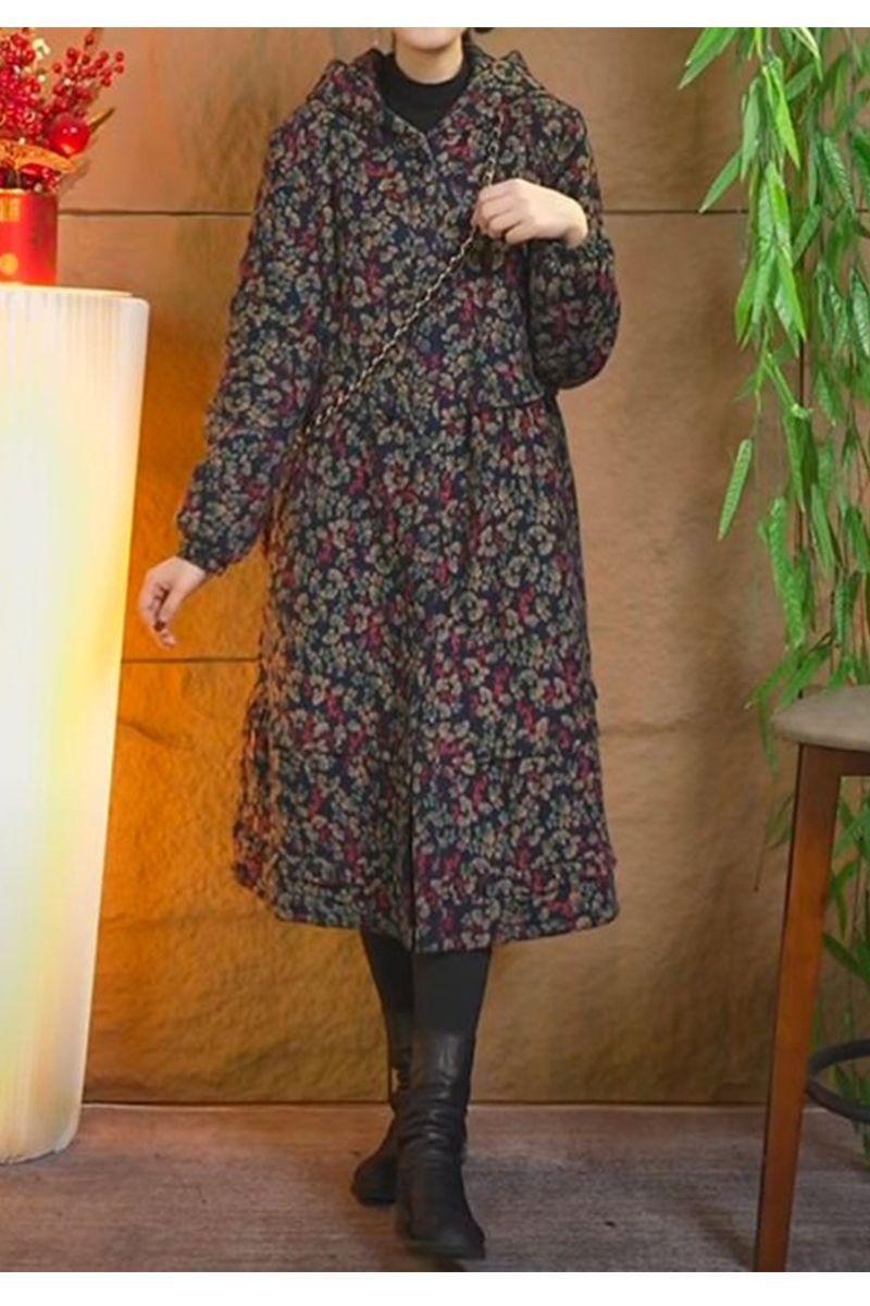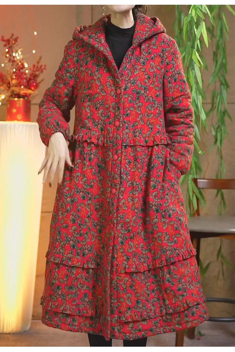Abrigo acolchado de algodón cálido con capucha y estampado floral de alta gama para mujer 2023 Invierno adelgazante de longitud media para mamás