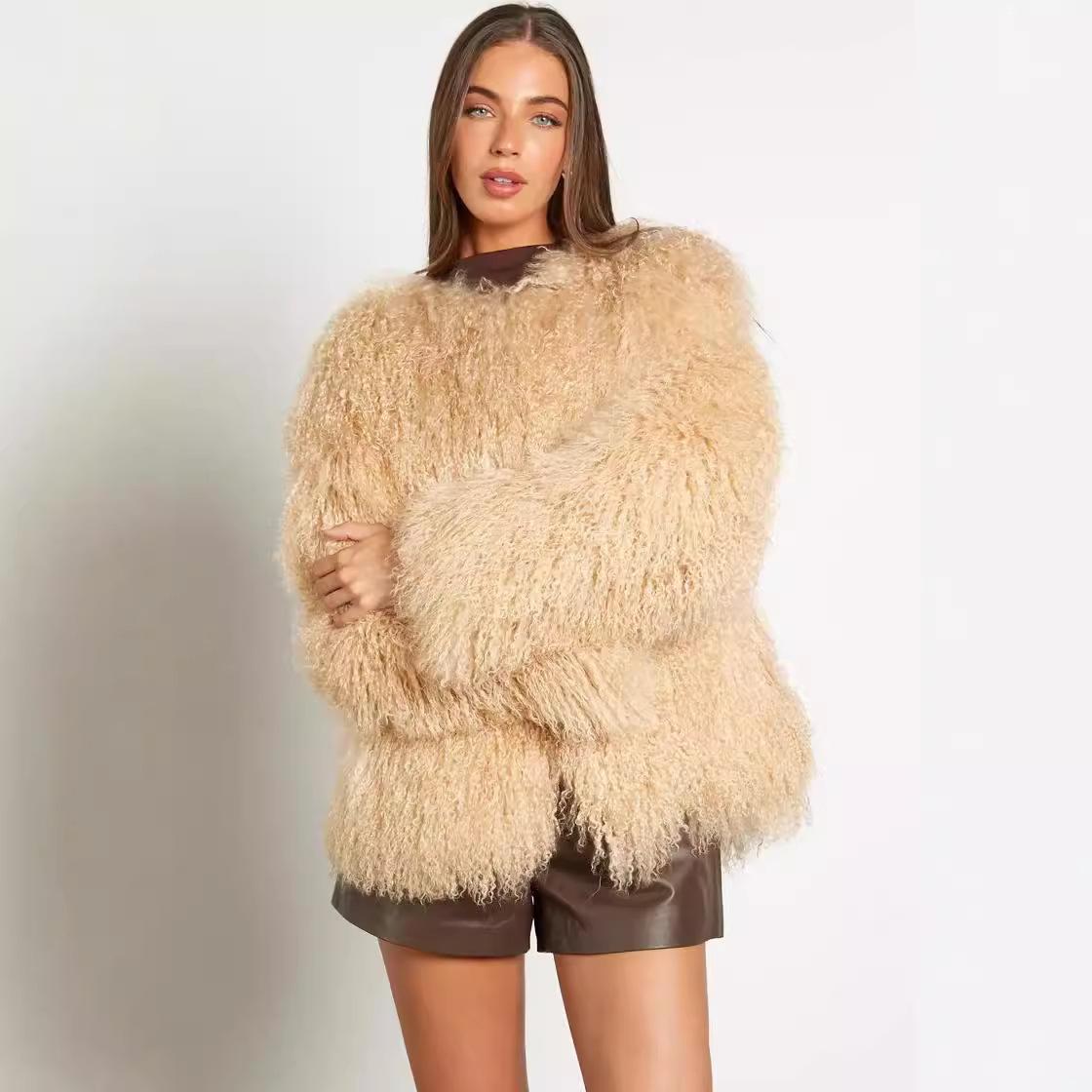 Amazon Comercio Exterior Transfronterizo Abrigo Grueso de Imitación de Lana de Cordero Negro para Mujer Invierno 2024 Nuevo Piel Piel