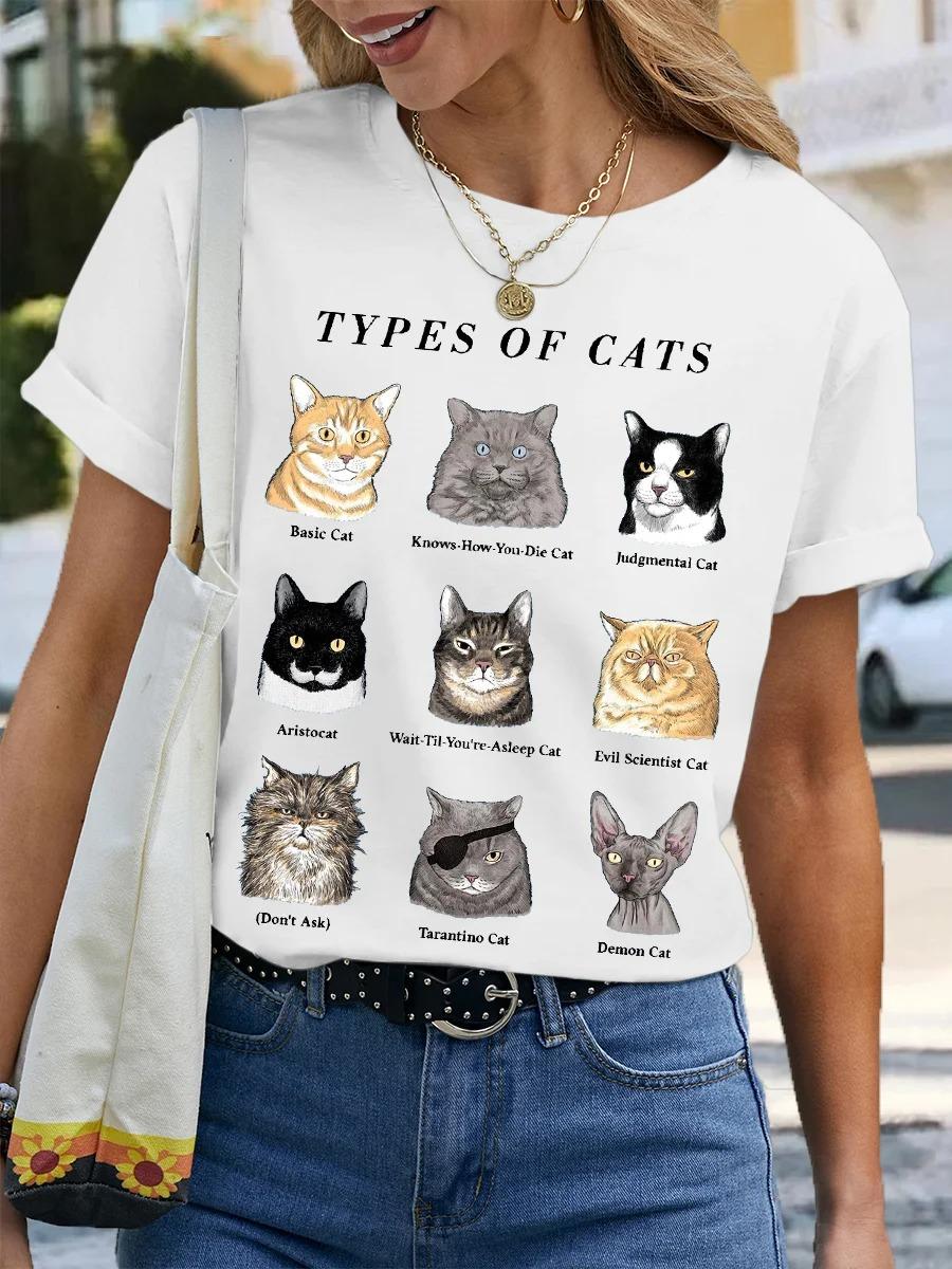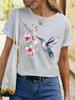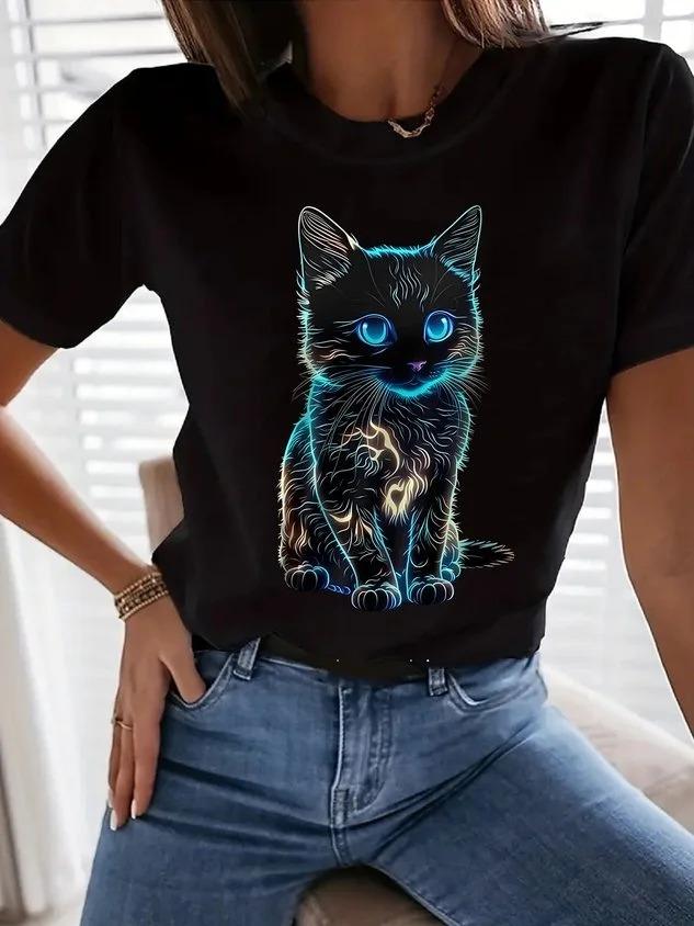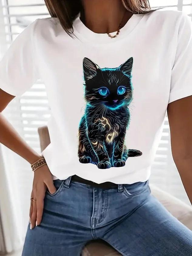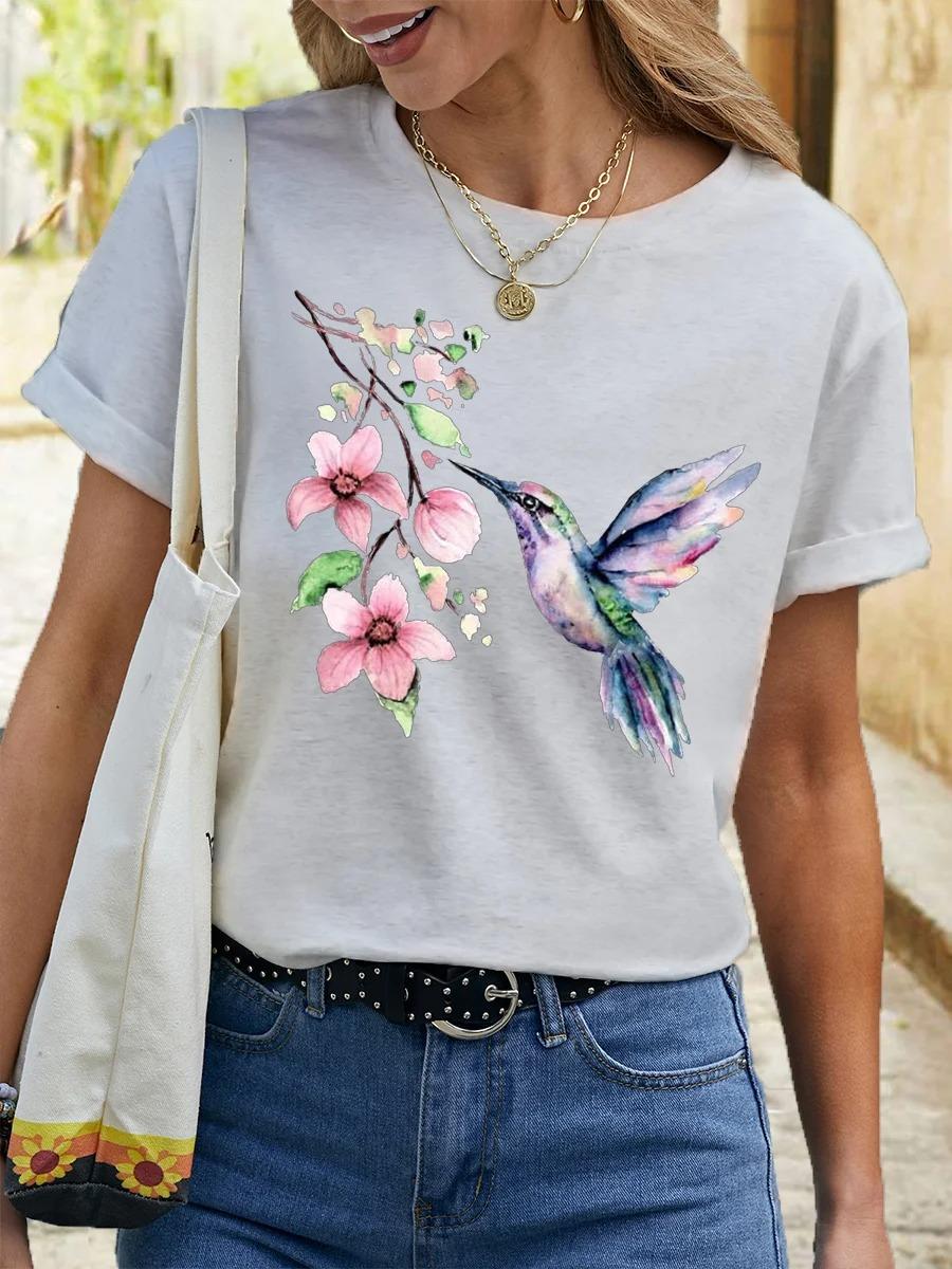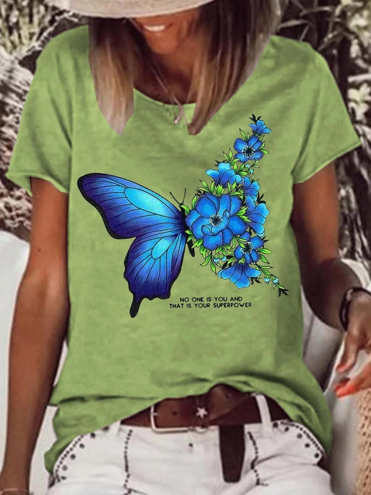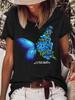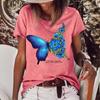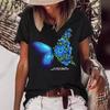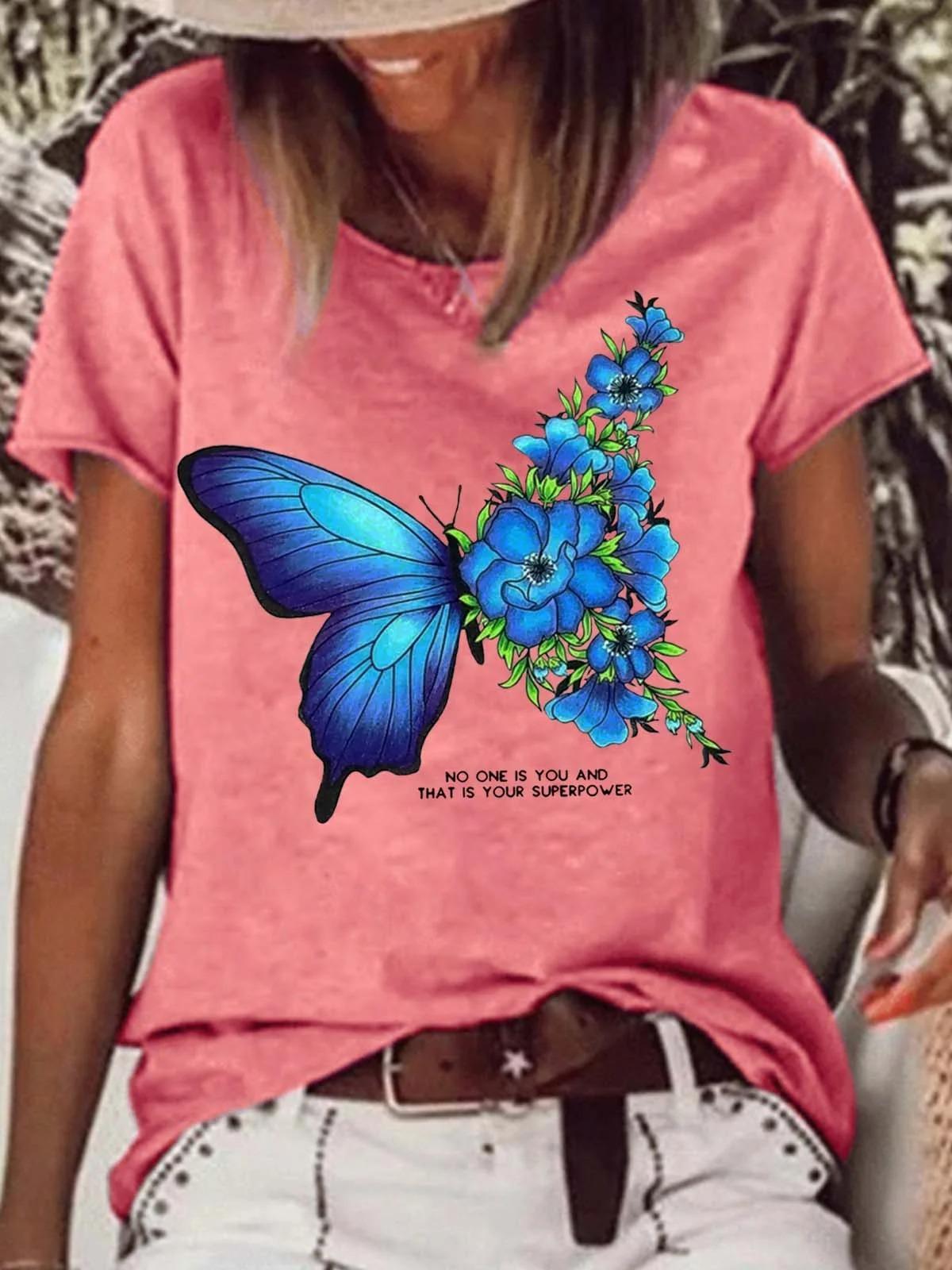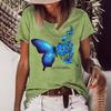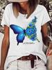 Camiseta de cuello redondo para mujer, de manga corta, nueva, con estampado de mariposas y animales, informal, moderna y a la moda.