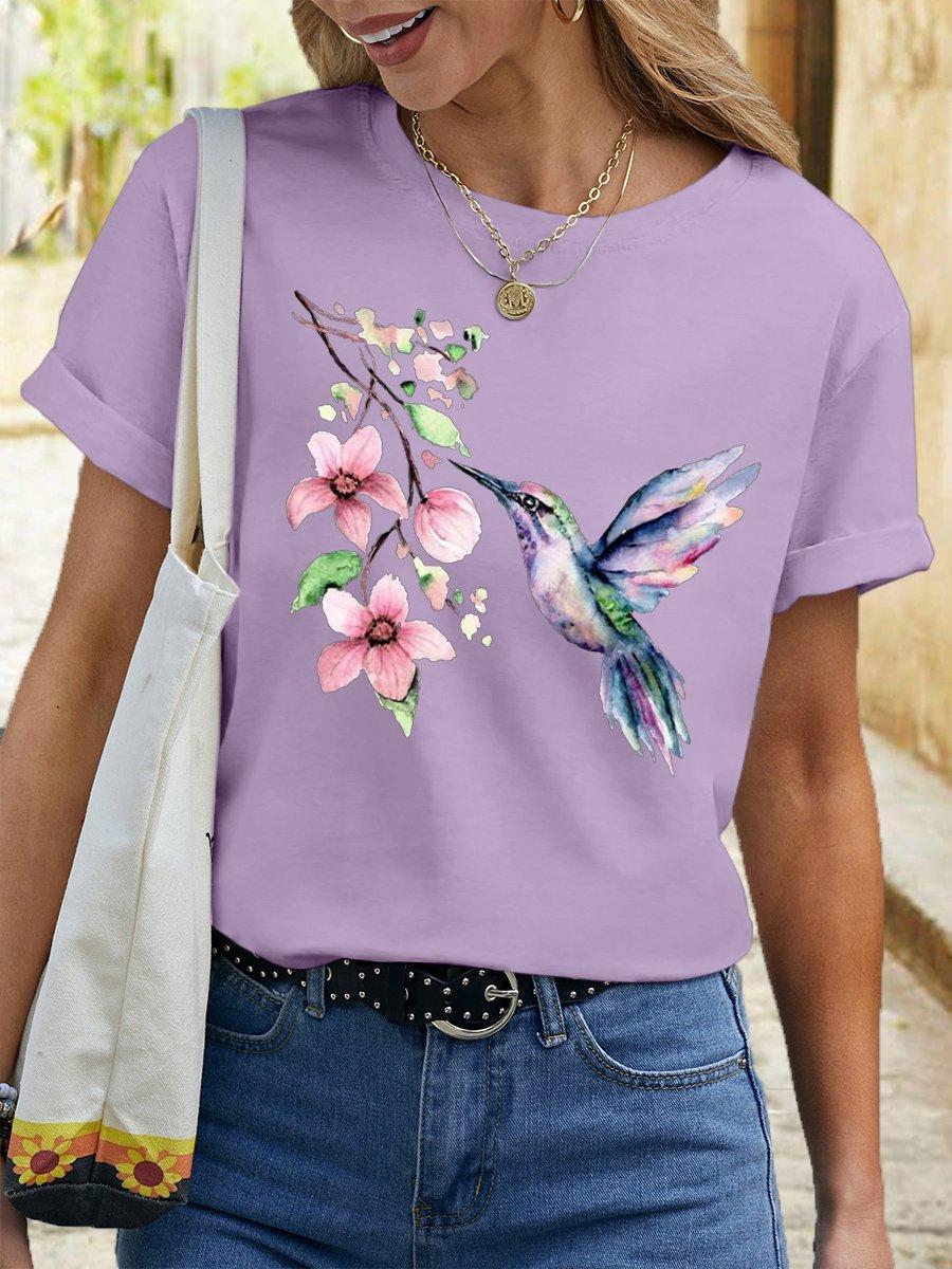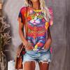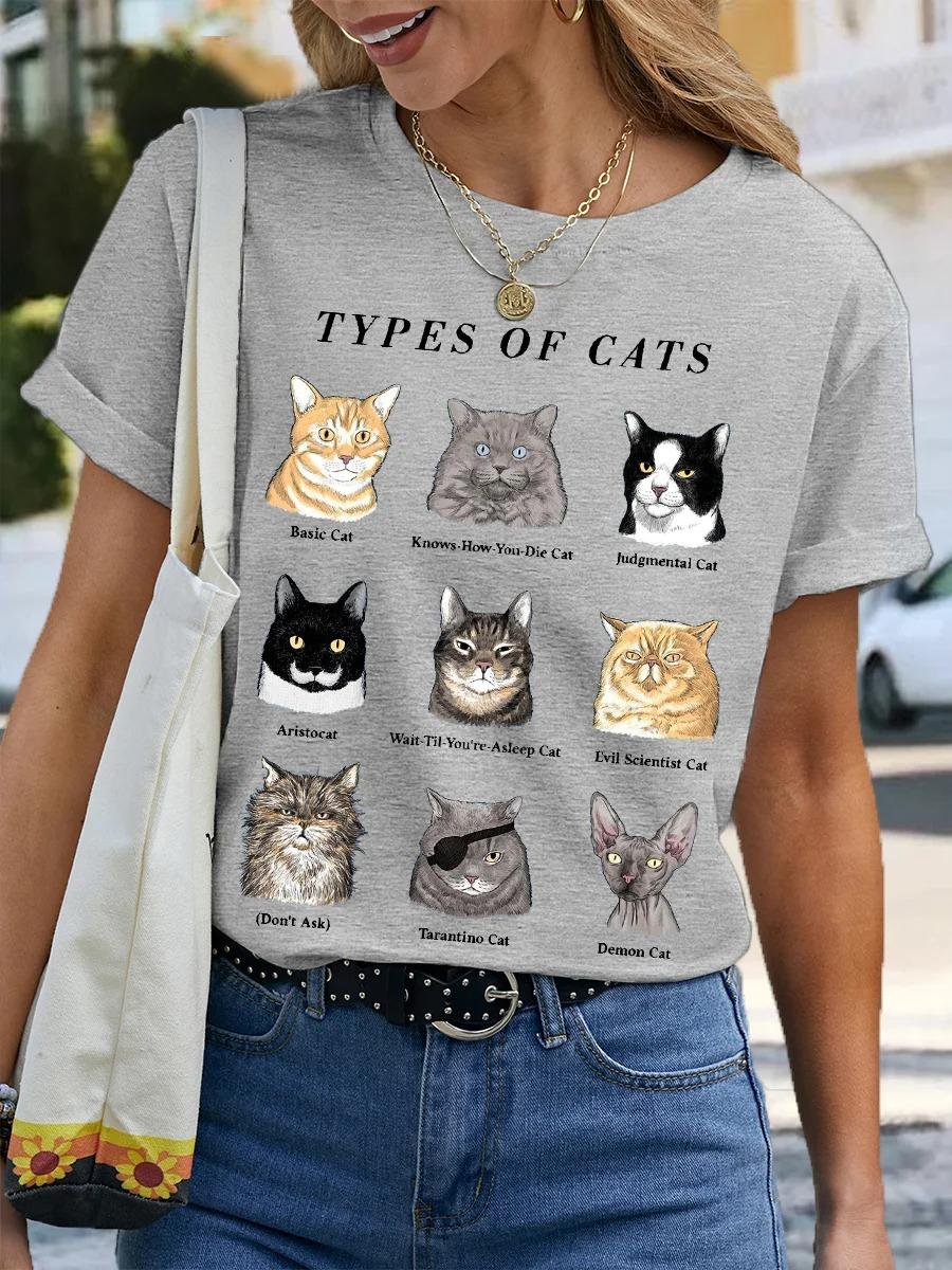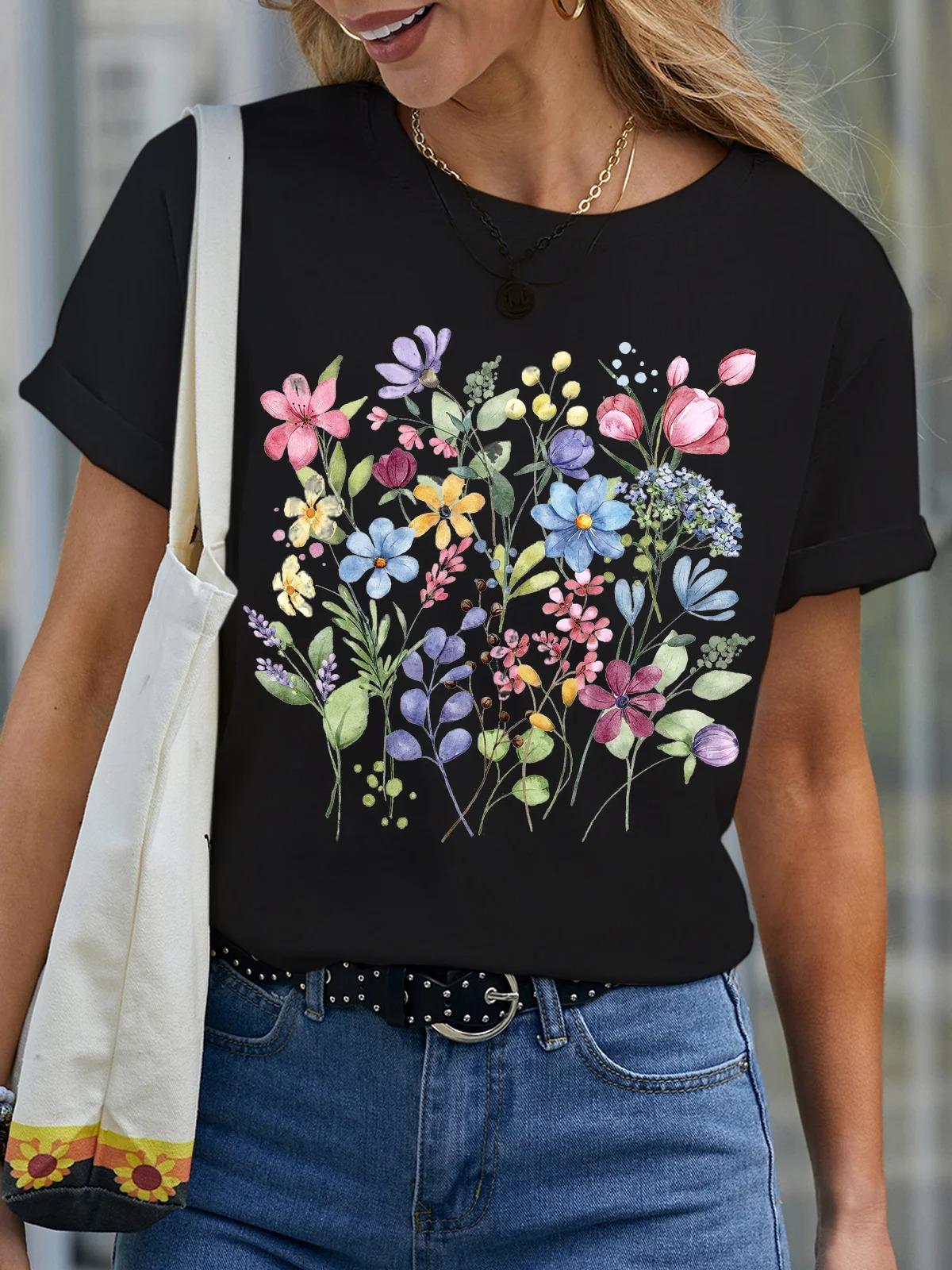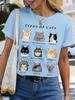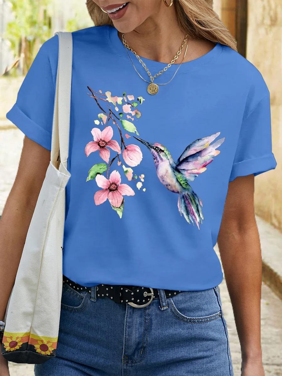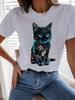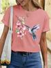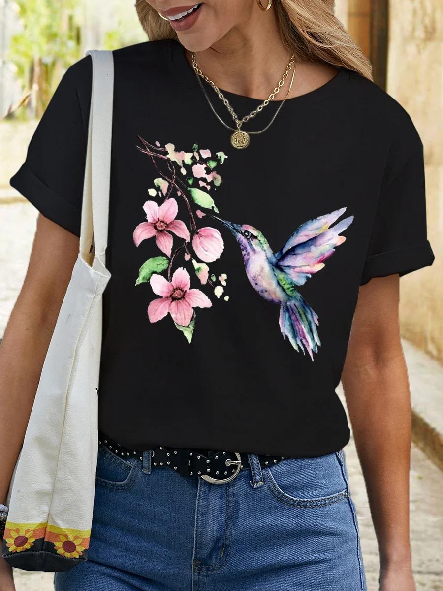 Camiseta de cuello redondo para mujer, de manga corta, nueva, con estampado de mariposas y animales, informal, moderna y a la moda.
