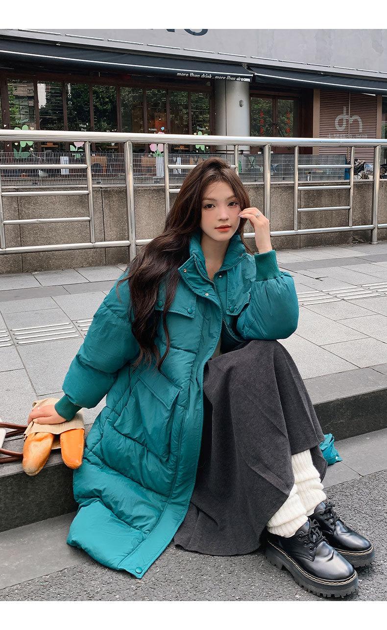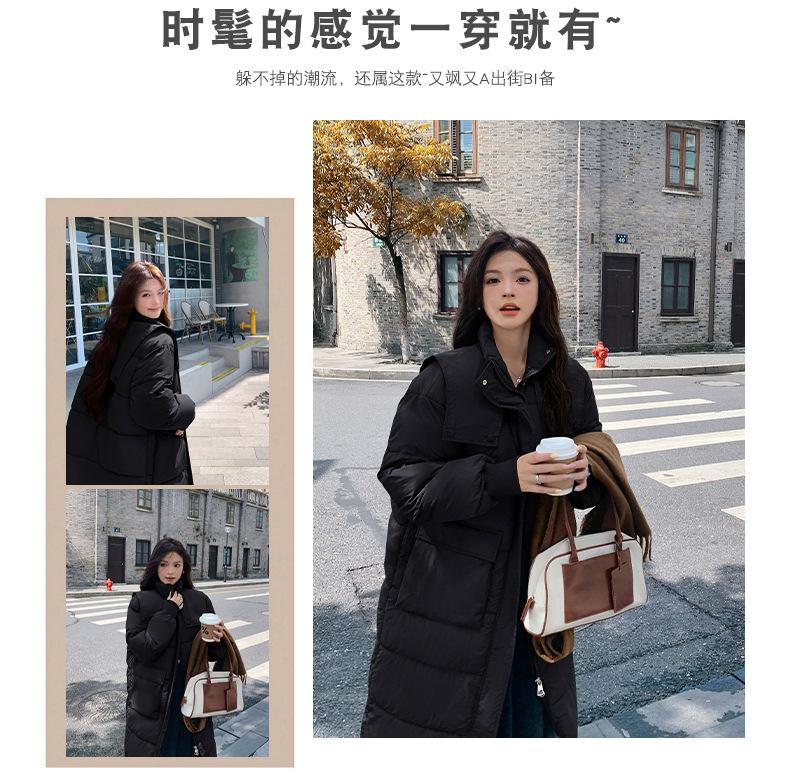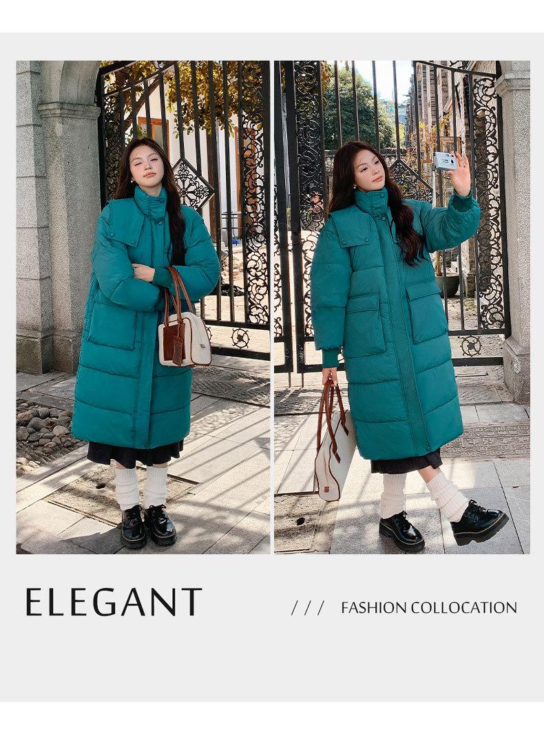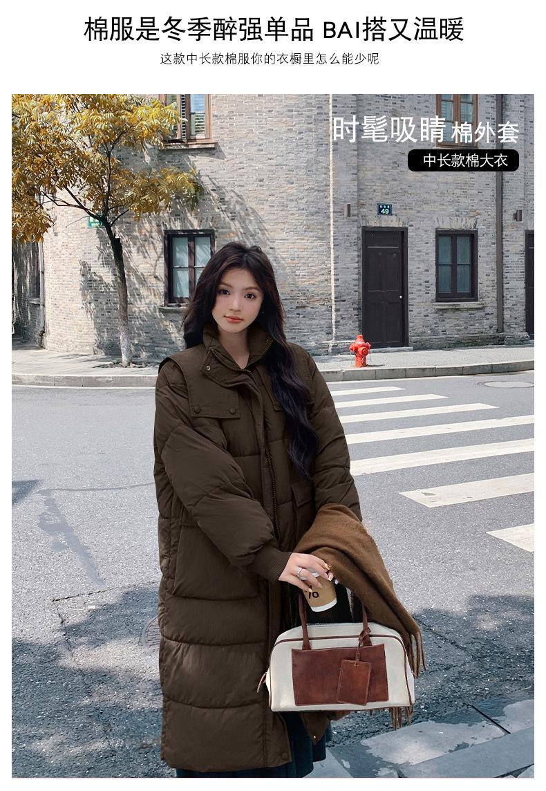 Chaqueta acolchada de algodón para mujer, invierno 2024, nueva, de longitud media, con bolsillos grandes por encima de la rodilla, gruesa, holgada, acolchada de algodón, abrigo grueso