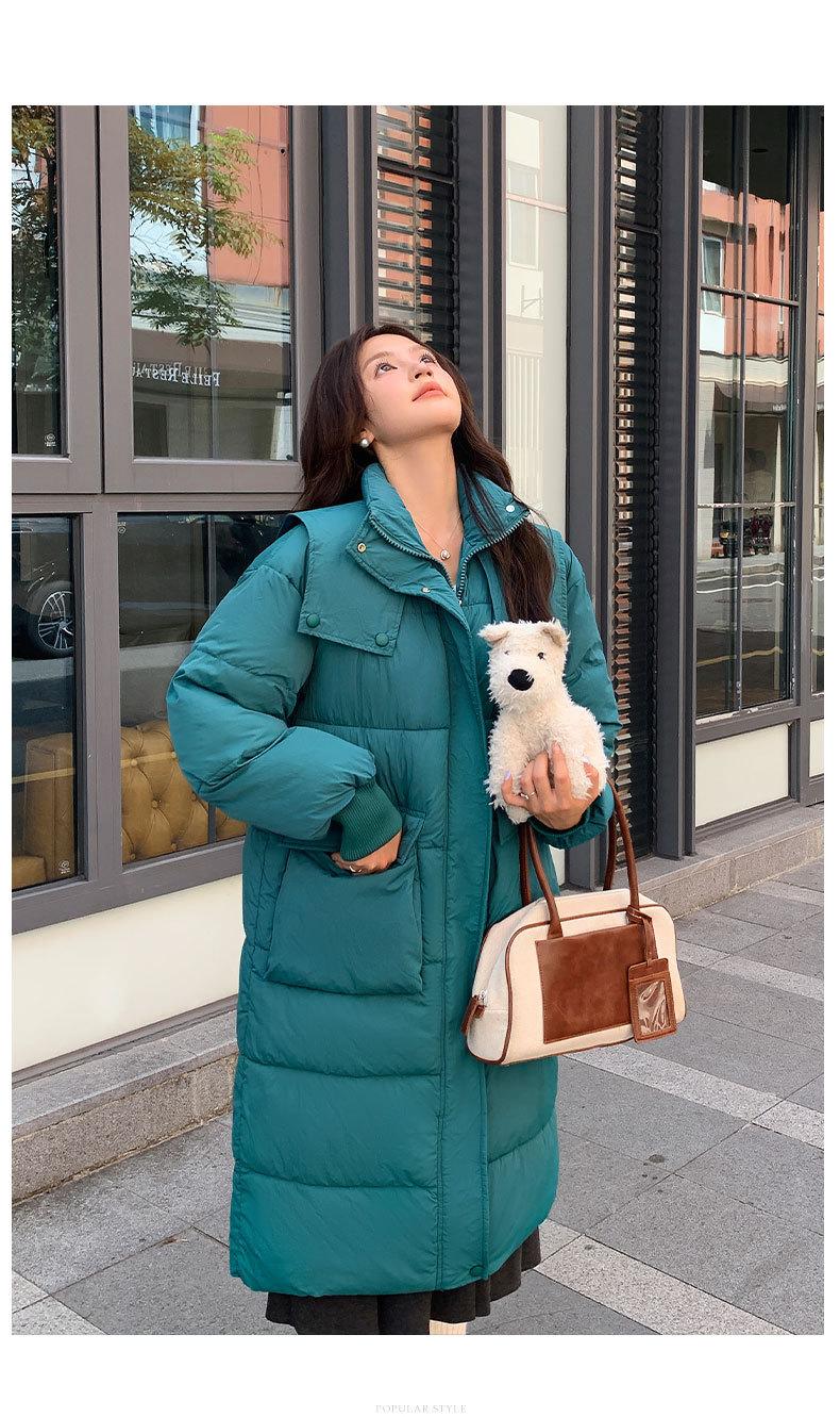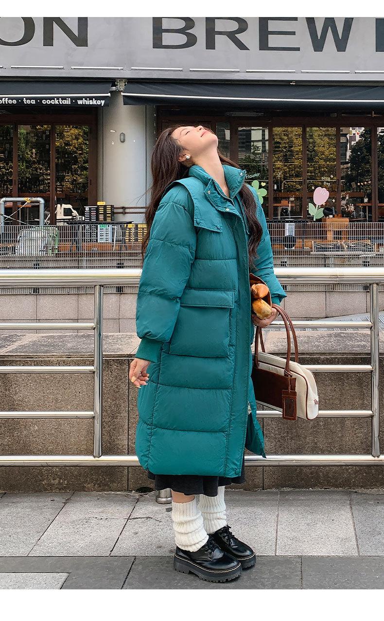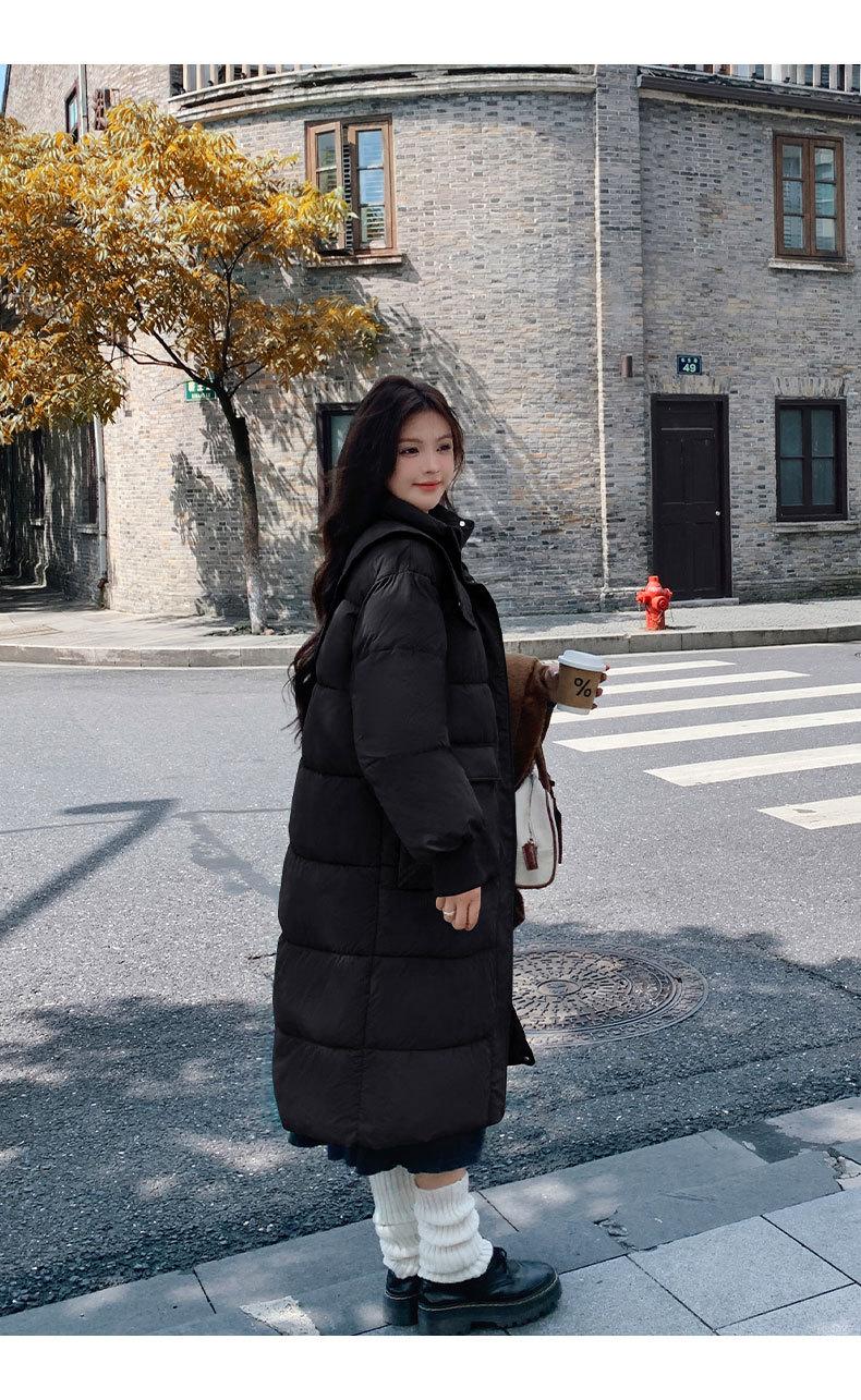 Chaqueta acolchada de algodón para mujer, invierno 2024, nueva, de longitud media, con bolsillos grandes por encima de la rodilla, gruesa, holgada, acolchada de algodón, abrigo grueso