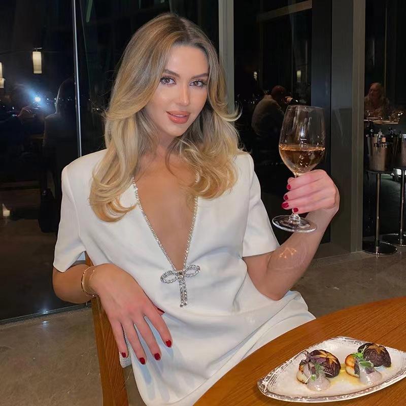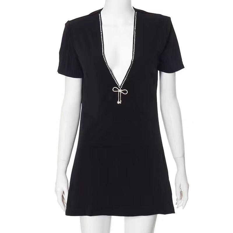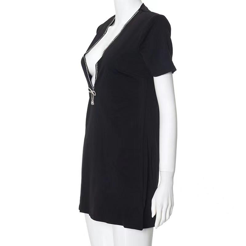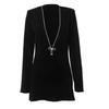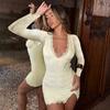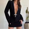Vestido de Amazon 2024, ropa de mujer europea y americana, otoño e invierno 2024, nuevo vestido de chica sexy de moda con cuello en V y manga larga al por mayor