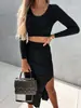 Conjunto de dos piezas de camiseta de manga larga y falda hasta la mitad de la cadera para mujer, venta caliente transfronteriza europea y americana, 2024