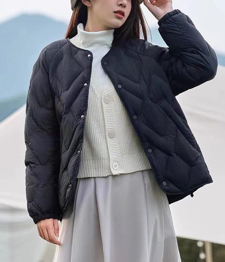 Chamarra de Plumas para Mujer Nueva Invierno Alta Gama Corta Ropa Exterior Plumón de Pato Pequeña Popular Pinghu Venta al Mayoreo Hd