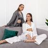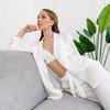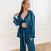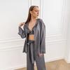Conjunto de Tres Piezas de Camisón y Pantalones con Tirantes de Moda de Otoño e Invierno Color Puro Seda Imitación Cómodo Francés Sexy Ropa de Hogar para Mujer
