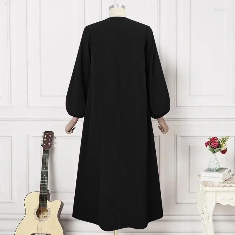 H723 Bata Nueva de Color Puro para Mujer Musulmana Vestido Suelto Moda Casual Manga Linterna Falda Larga