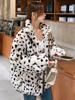 Nueva Chaqueta con Cierre y Cuello de Piel con Estampado de Leopardo Otoño e Invierno Largo Medio Imitación Piel de Conejo para Mujer Top de Piel Cálido Grueso