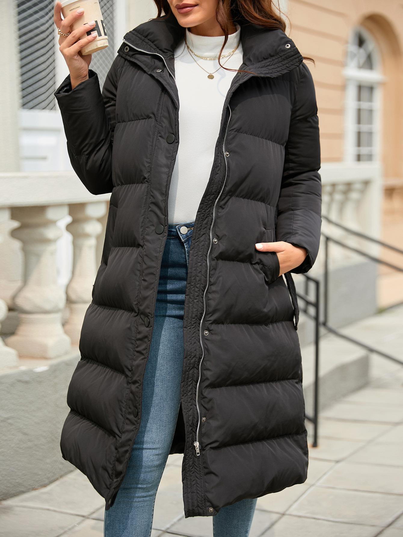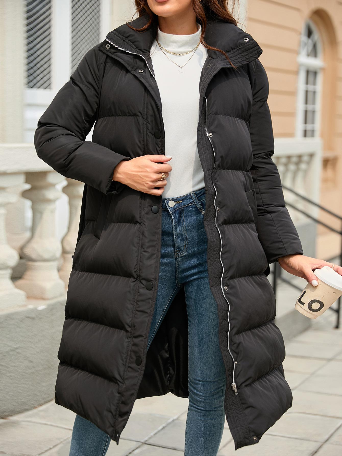 Amazon Europeo y Americano Transfronterizo Otoño e Invierno Forrado Bolsillo con Cinturón Engrosado Cálido Color Sólido Casual Ajustado Algodón Acolchado Chaqueta