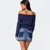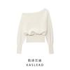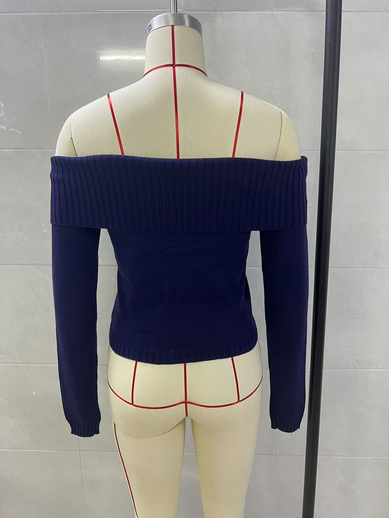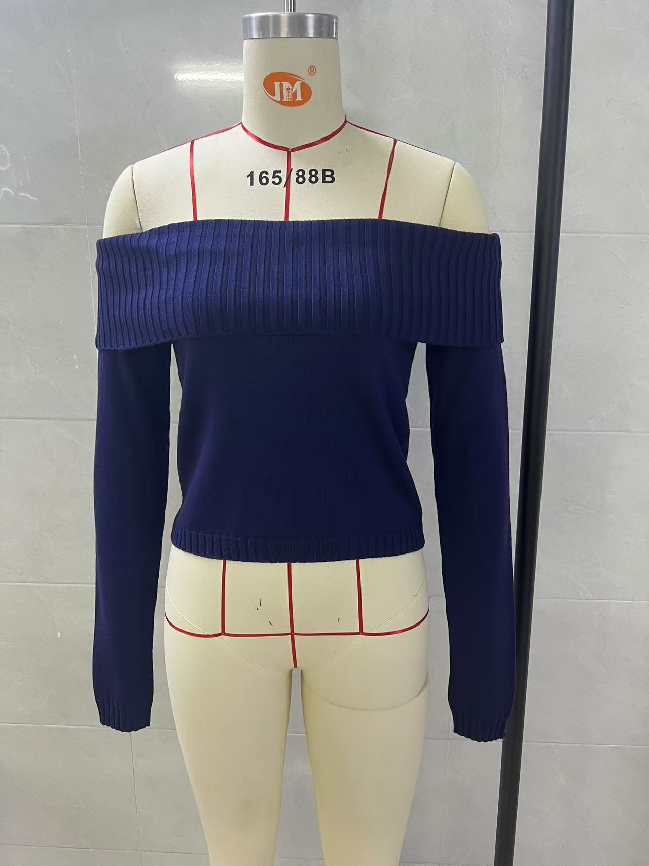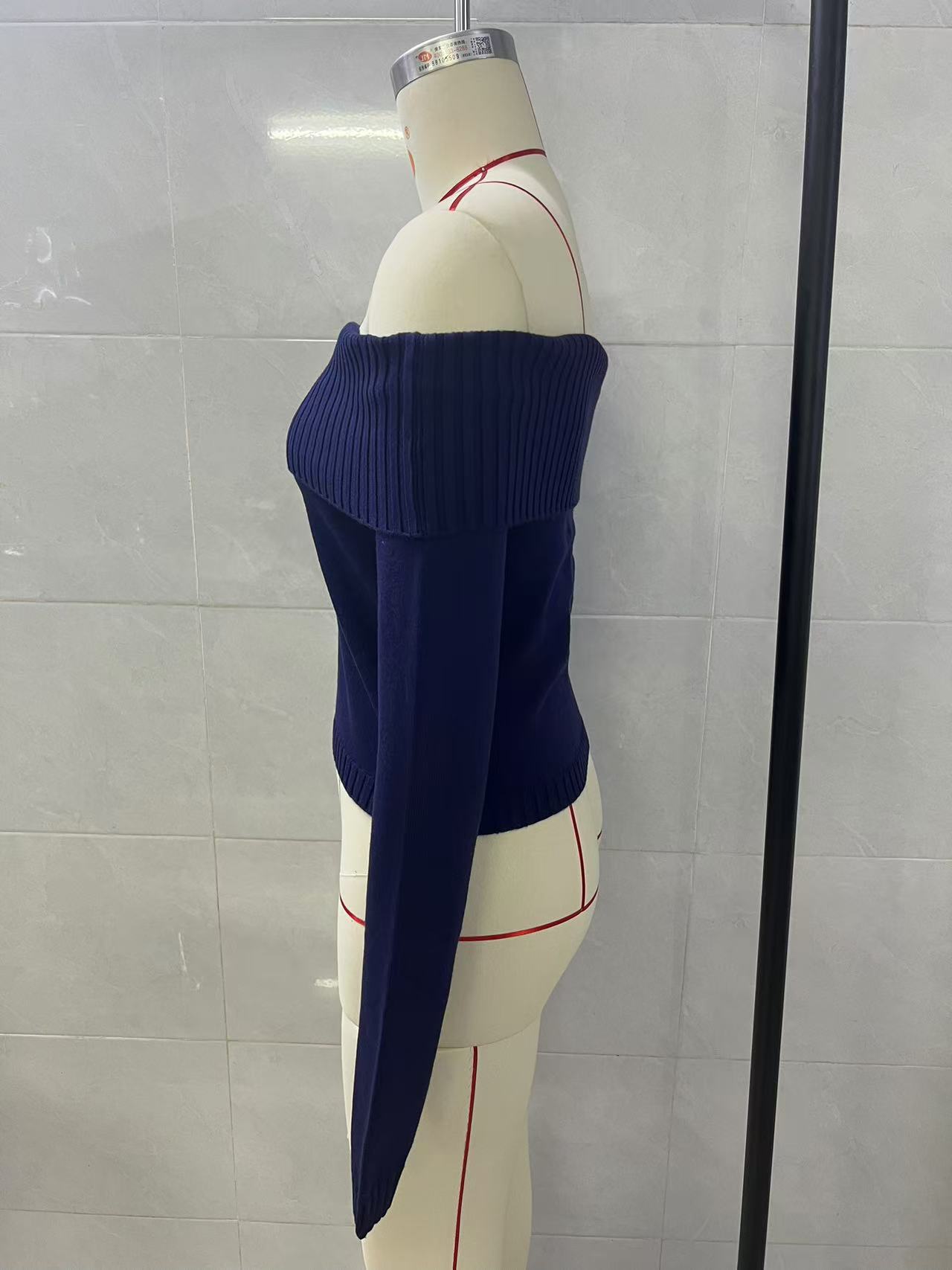 Top de Punto Nuevo de Primavera 2025 Europeo y Americano Transfronterizo para Mujer Color Puro Cuello de un Hombro Suéter Jersey de Manga Larga para Mujer