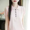 Camiseta de Manga Corta con Cuello Polo para Mujer Verano Jersey Nuevo Slim Ajustado Tejido de Seda Helada Moda Color Puro Chic Top