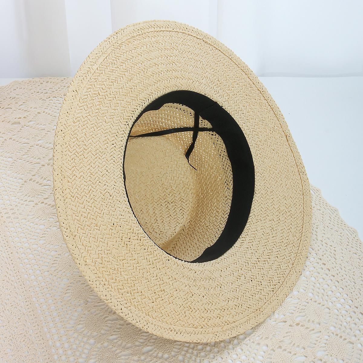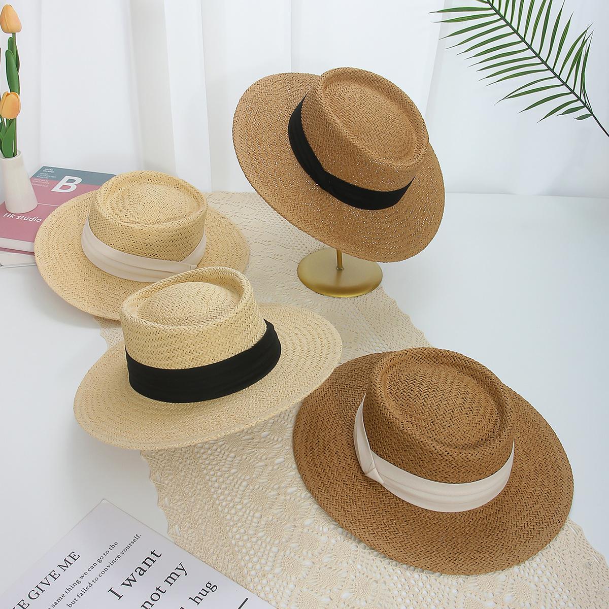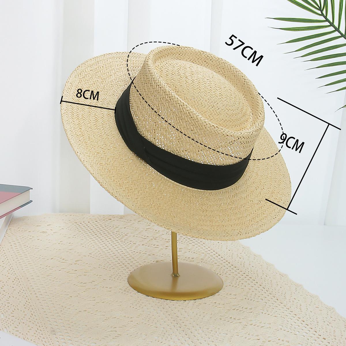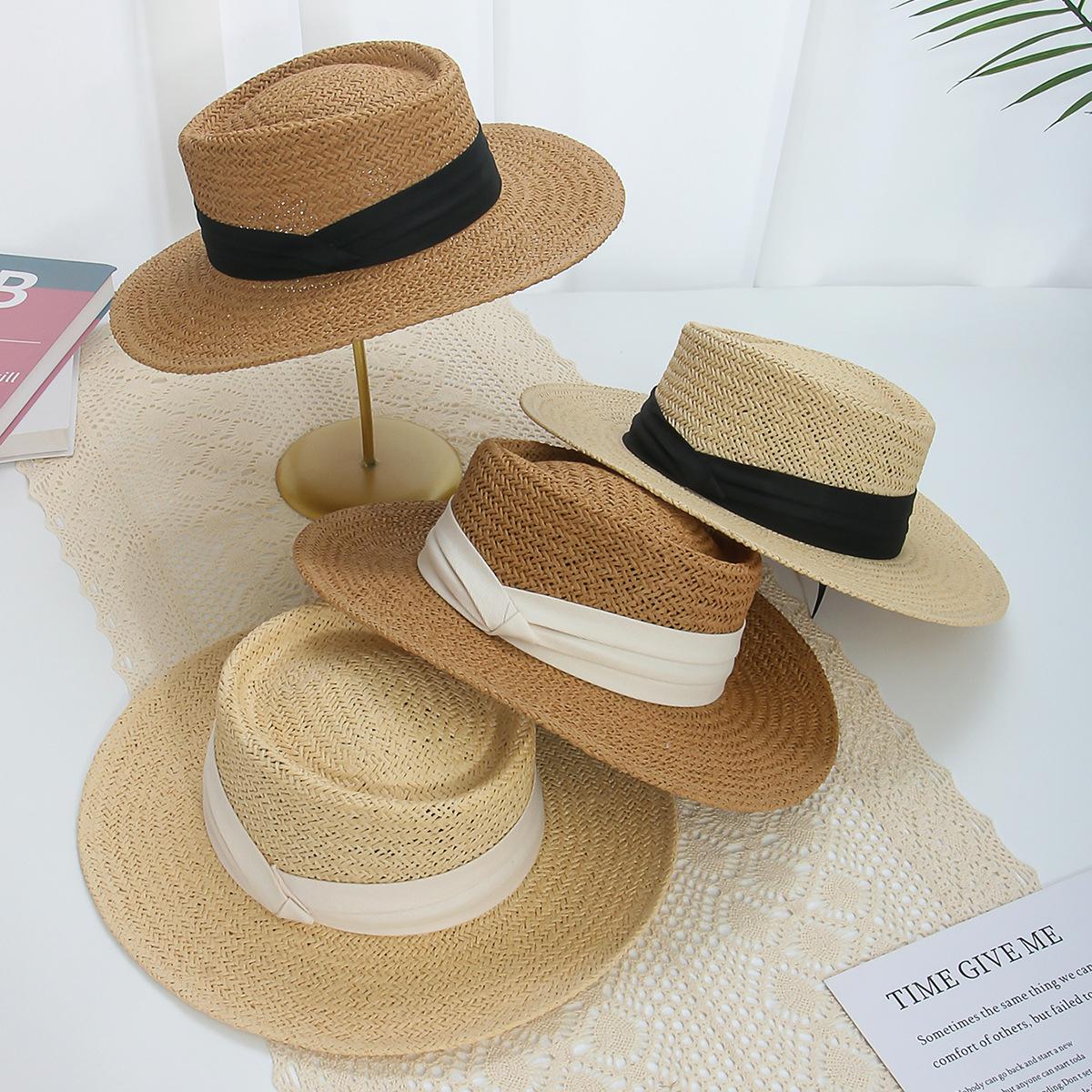 Sombrero de paja Lafite para mujer, sombrero de verano para playa, francés, de parte superior plana, con protección solar, sombrero de pescador para playa, sombrero tejido de paja para fotografía.