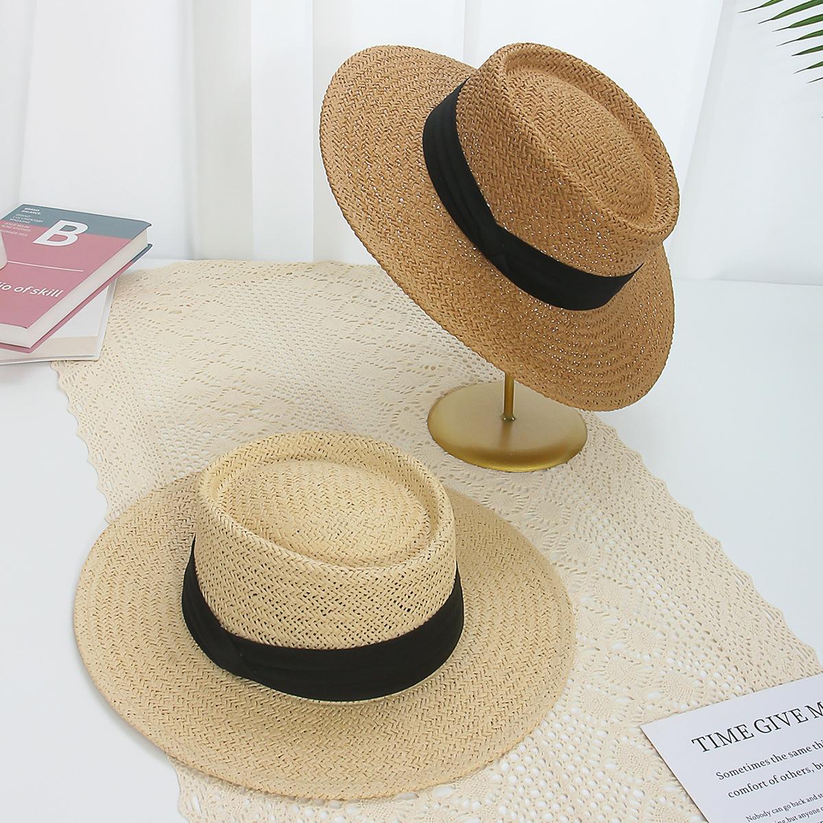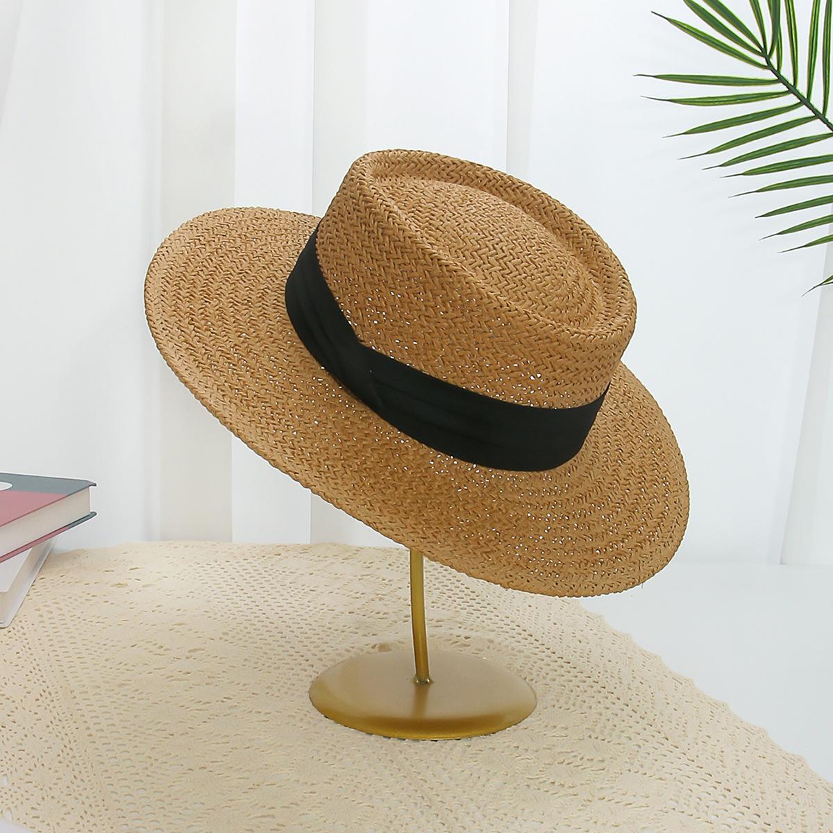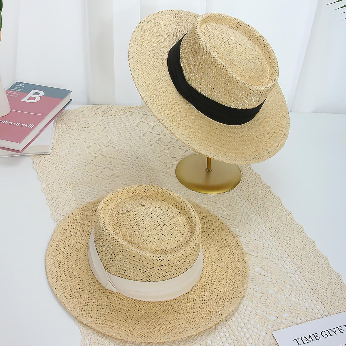 Sombrero de paja Lafite para mujer, sombrero de verano para playa, francés, de parte superior plana, con protección solar, sombrero de pescador para playa, sombrero tejido de paja para fotografía.