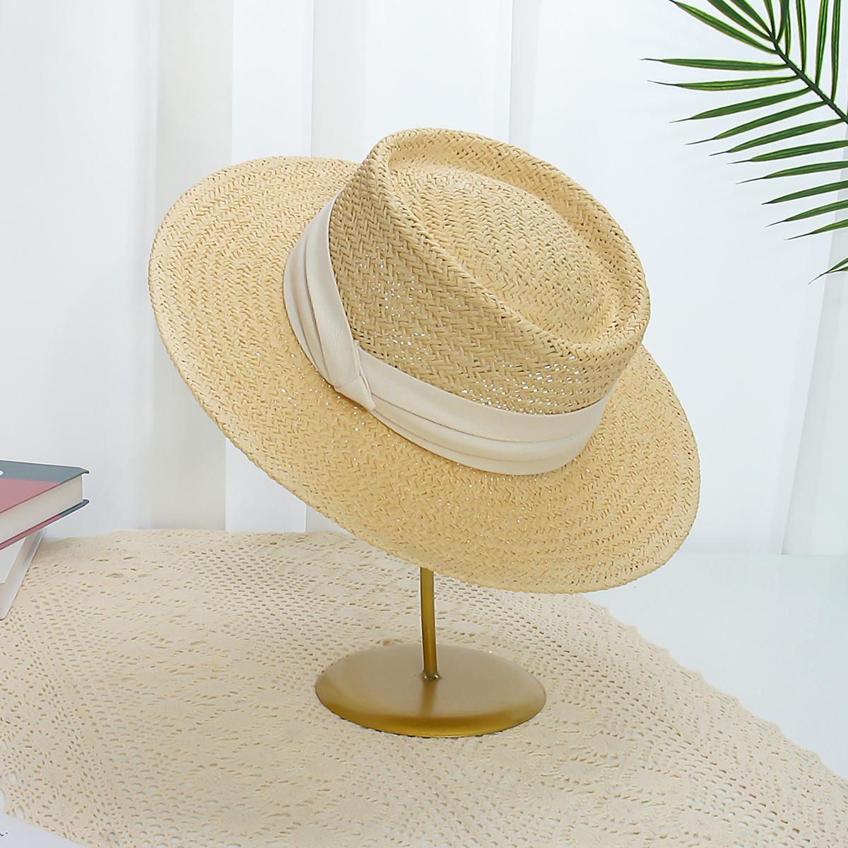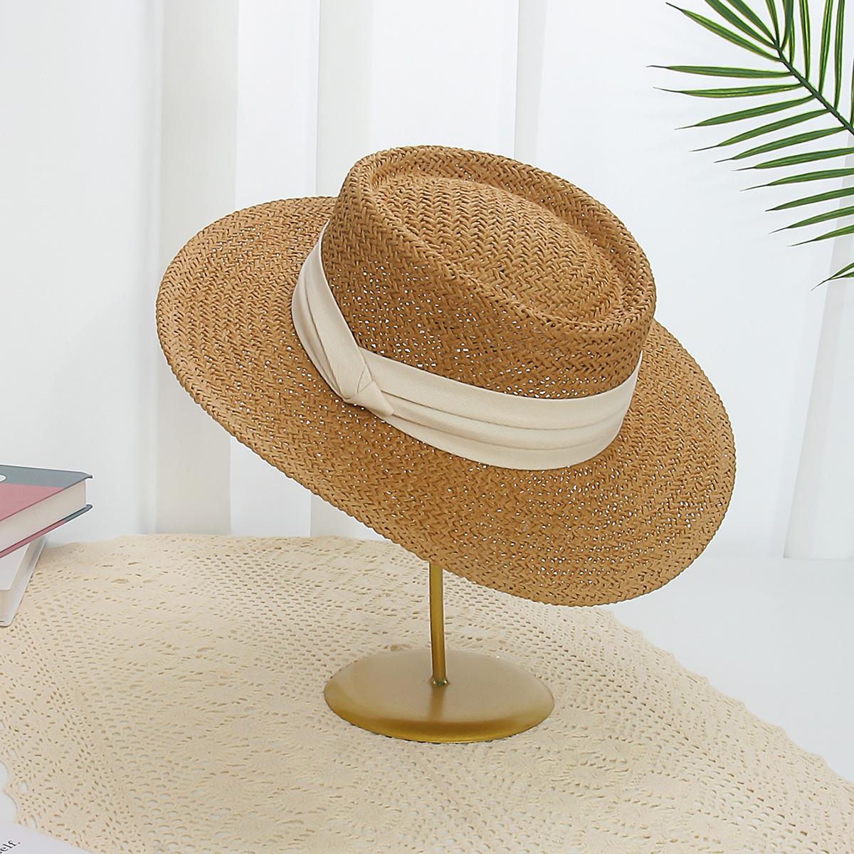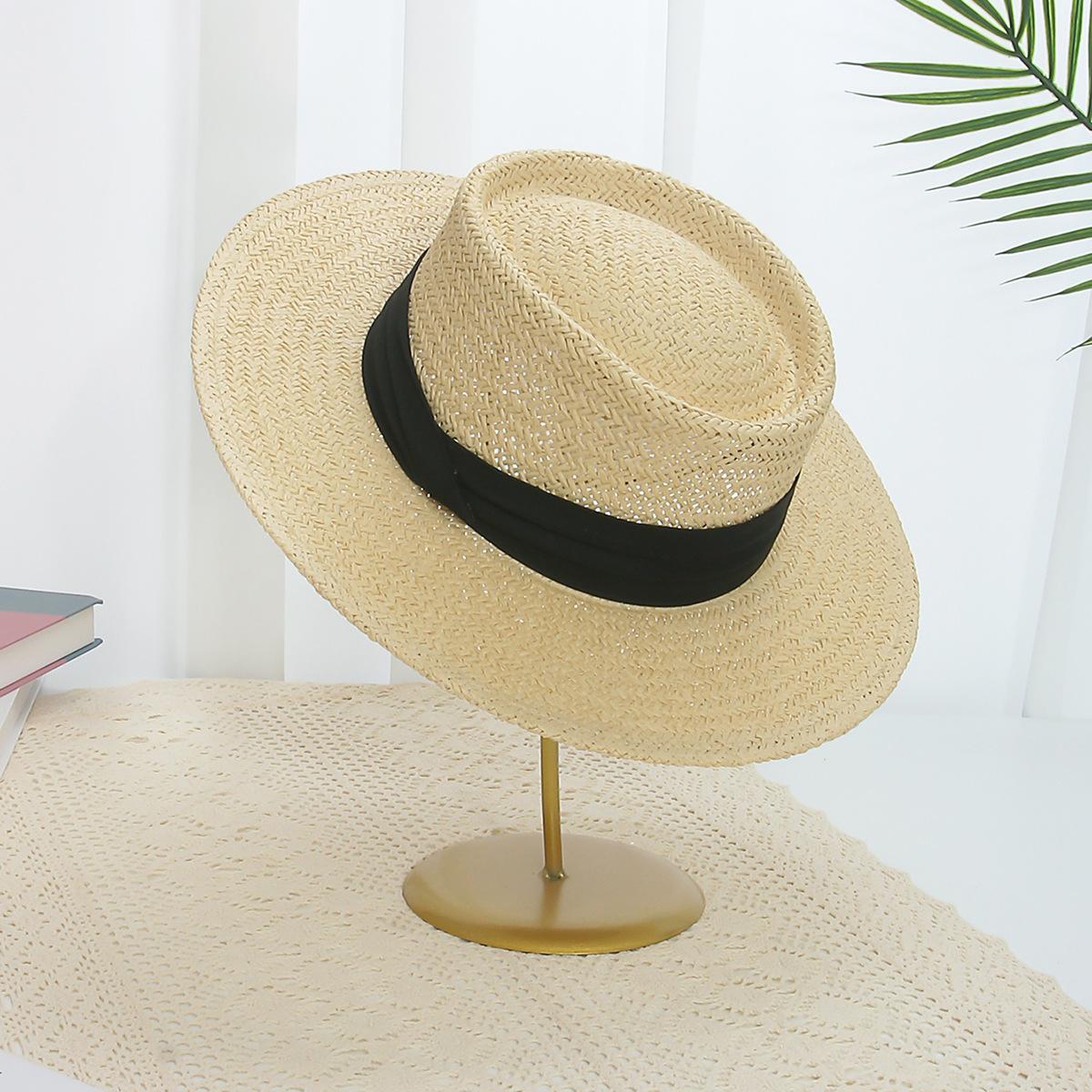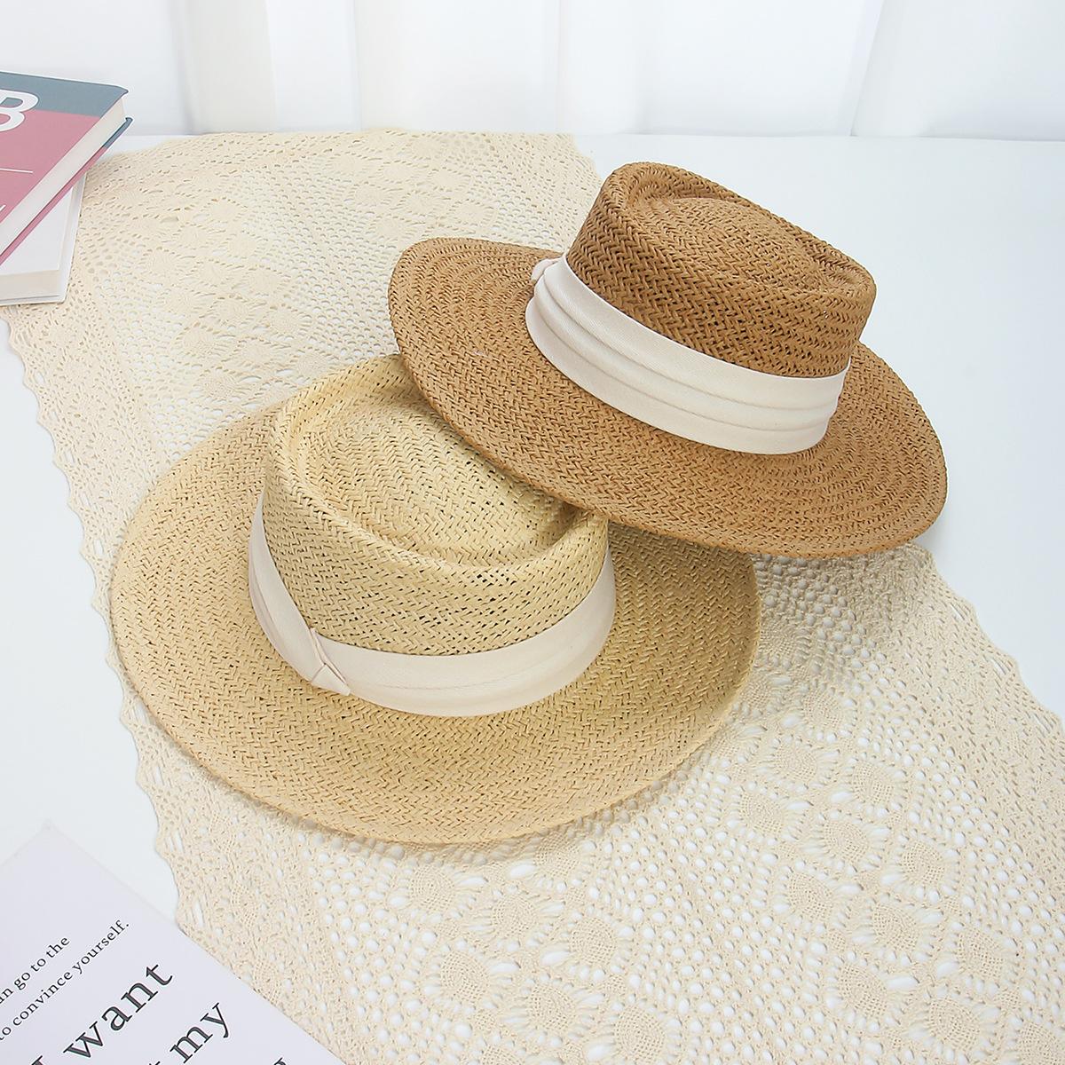 Sombrero de paja Lafite para mujer, sombrero de verano para playa, francés, de parte superior plana, con protección solar, sombrero de pescador para playa, sombrero tejido de paja para fotografía.