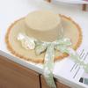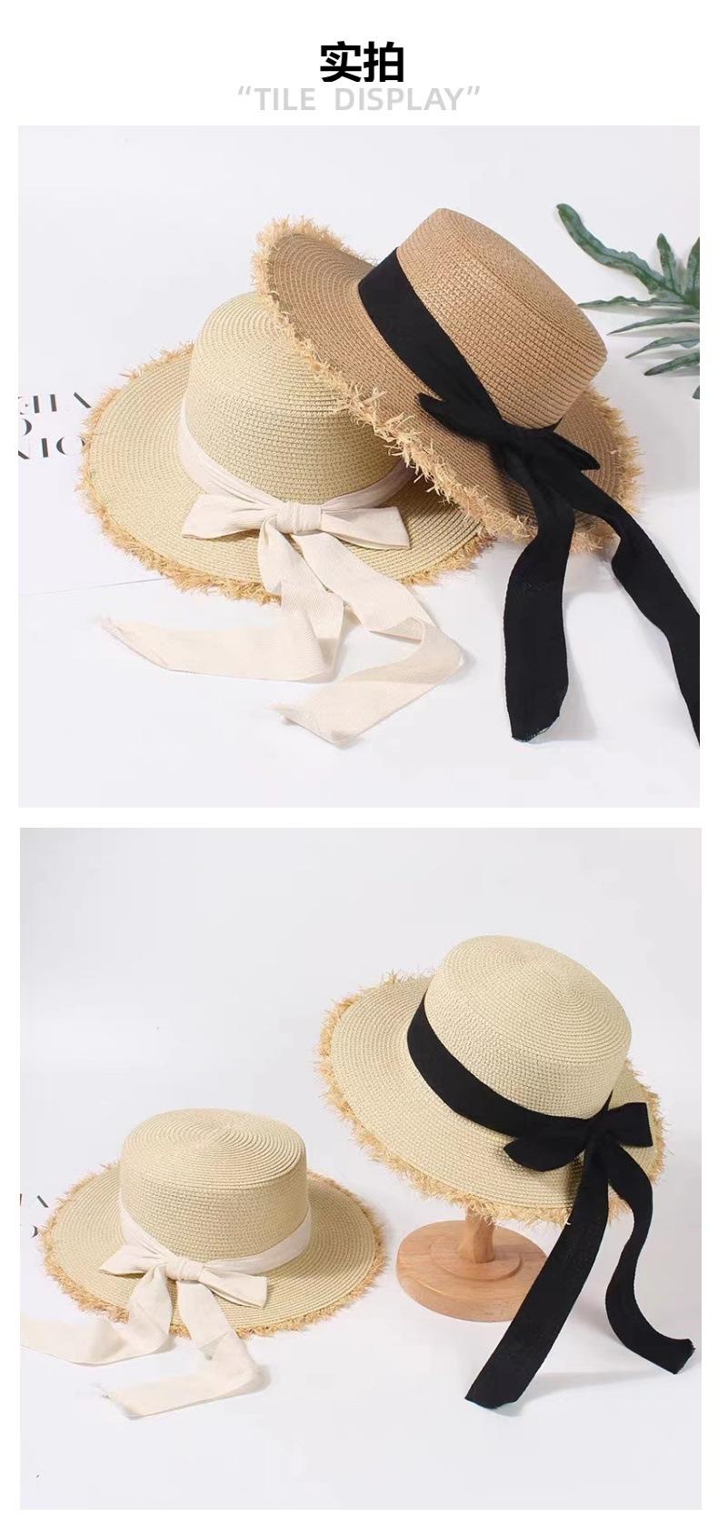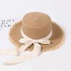 Black bow beige, Black bow khaki, White bow beige, White bow khaki, Flat hat with raffia edge and white rose—b...