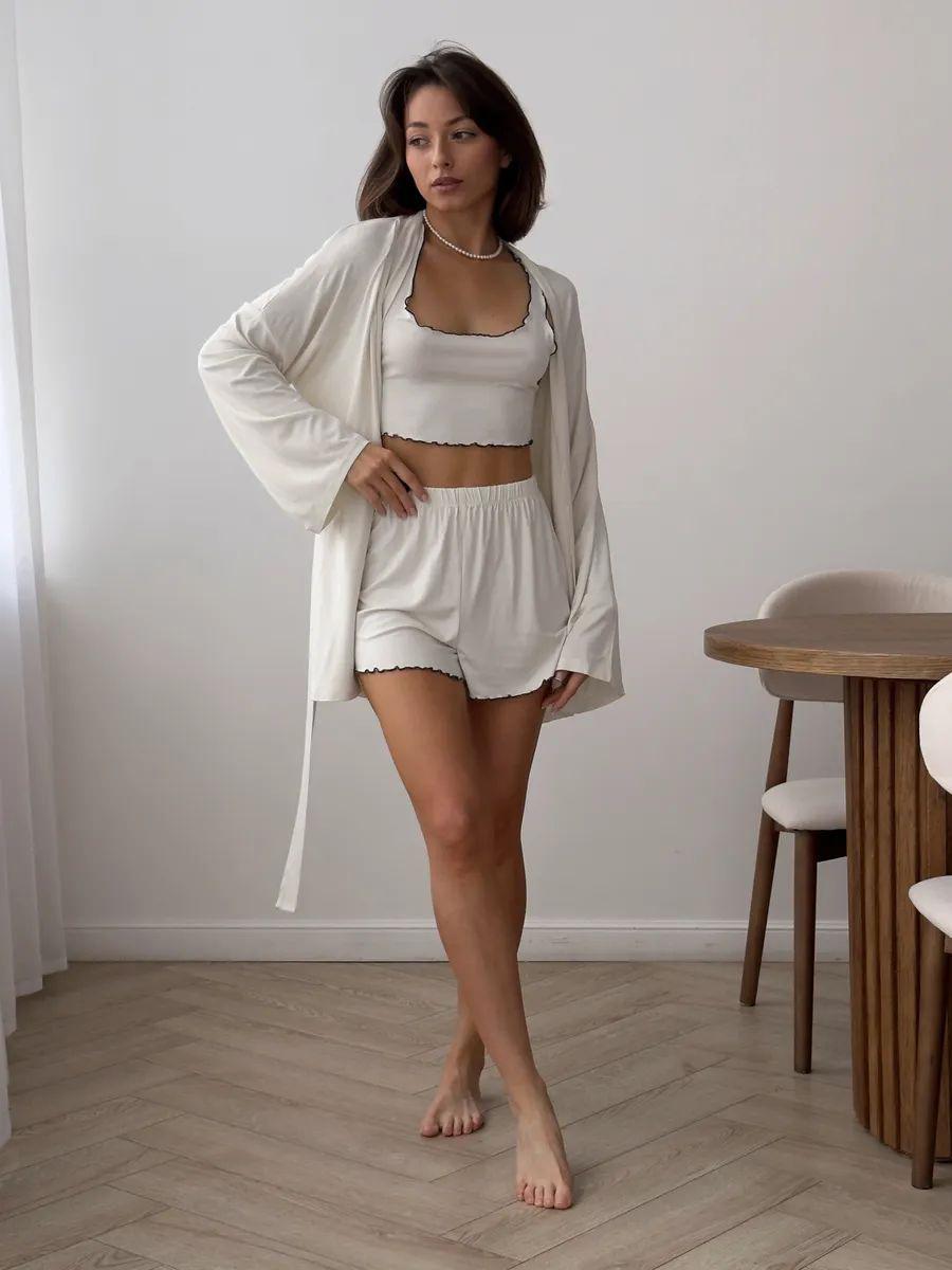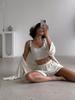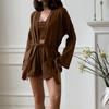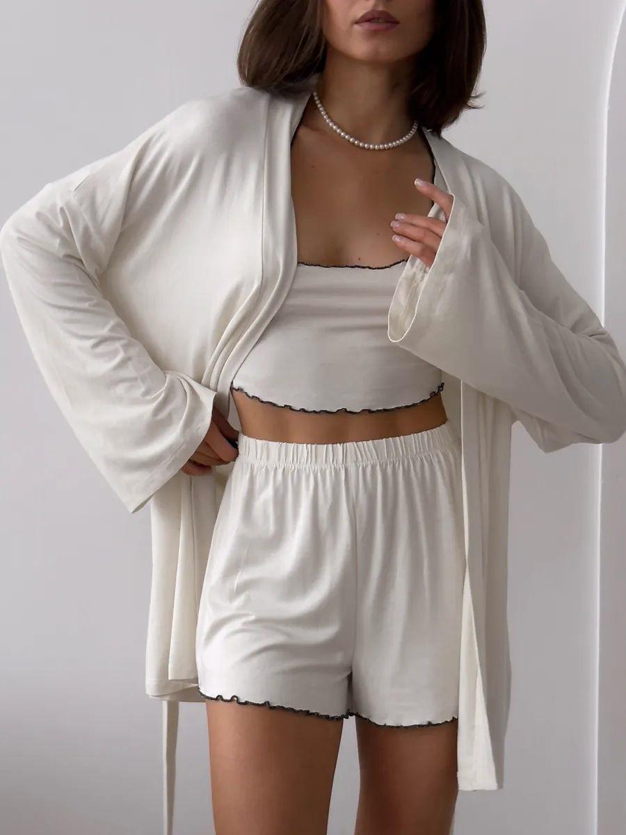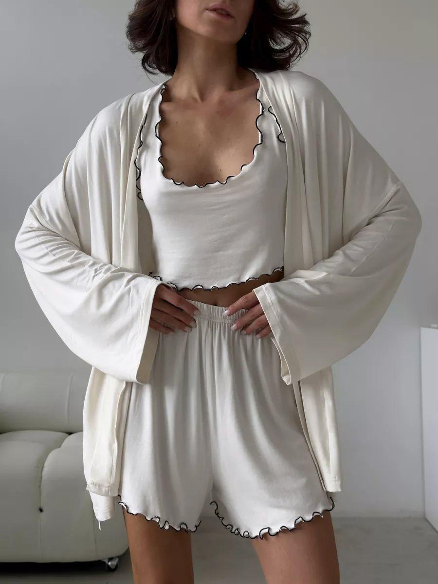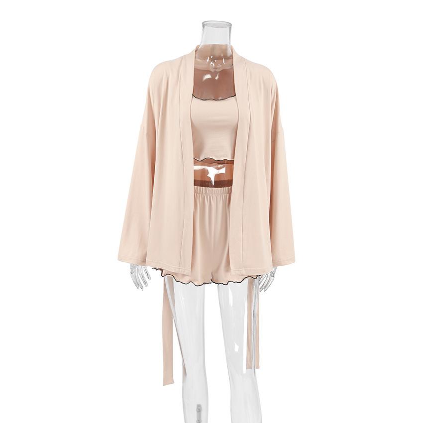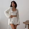Traje de pijama de seda de leche tejida de otoño europeo y americano 2024, cárdigan, camisón, ropa interior sin mangas, shorts, ropa para el hogar para damas