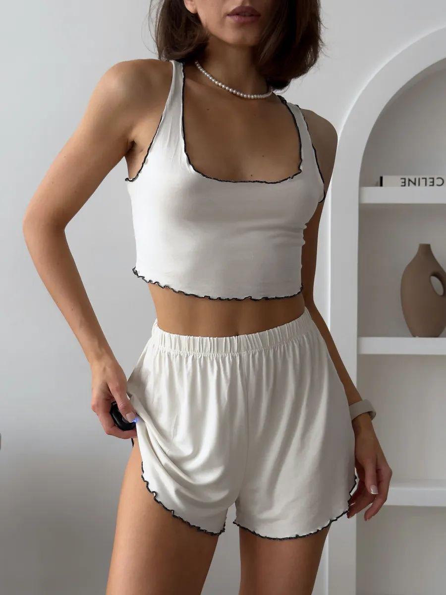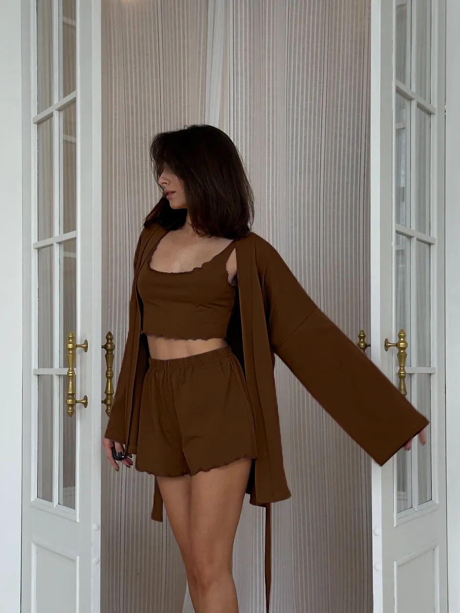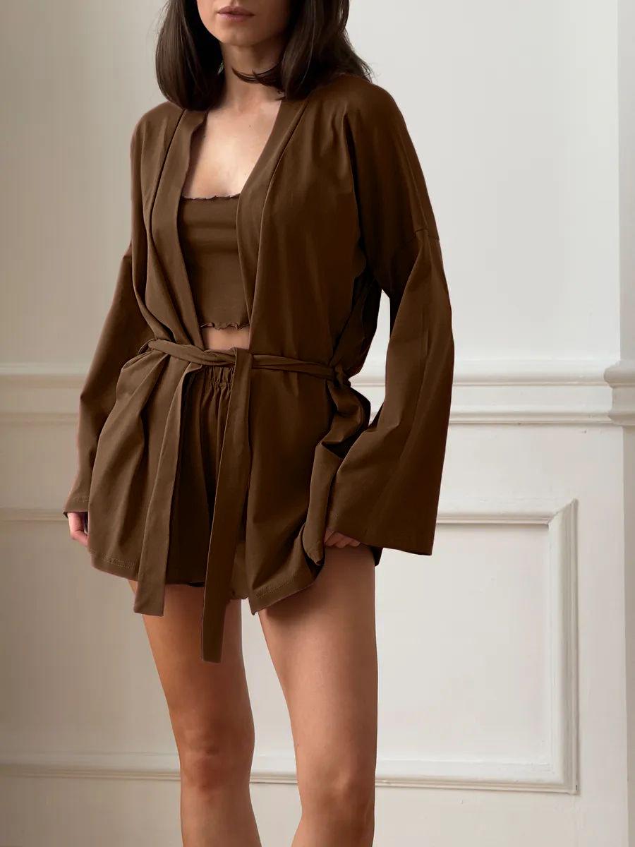 Traje de pijama de seda de leche tejida de otoño europeo y americano 2024, cárdigan, camisón, ropa interior sin mangas, shorts, ropa para el hogar para damas