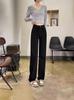 Pantalones vaqueros negros rectos de cintura alta para mujer, holgados y adelgazantes, primavera y otoño 2025, nuevos pantalones altos de pierna ancha.