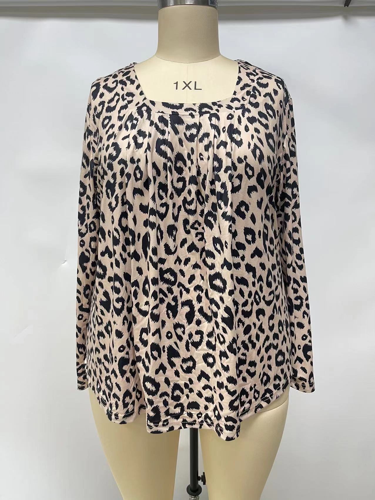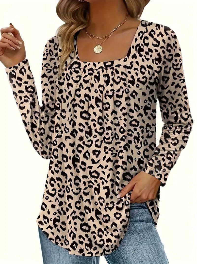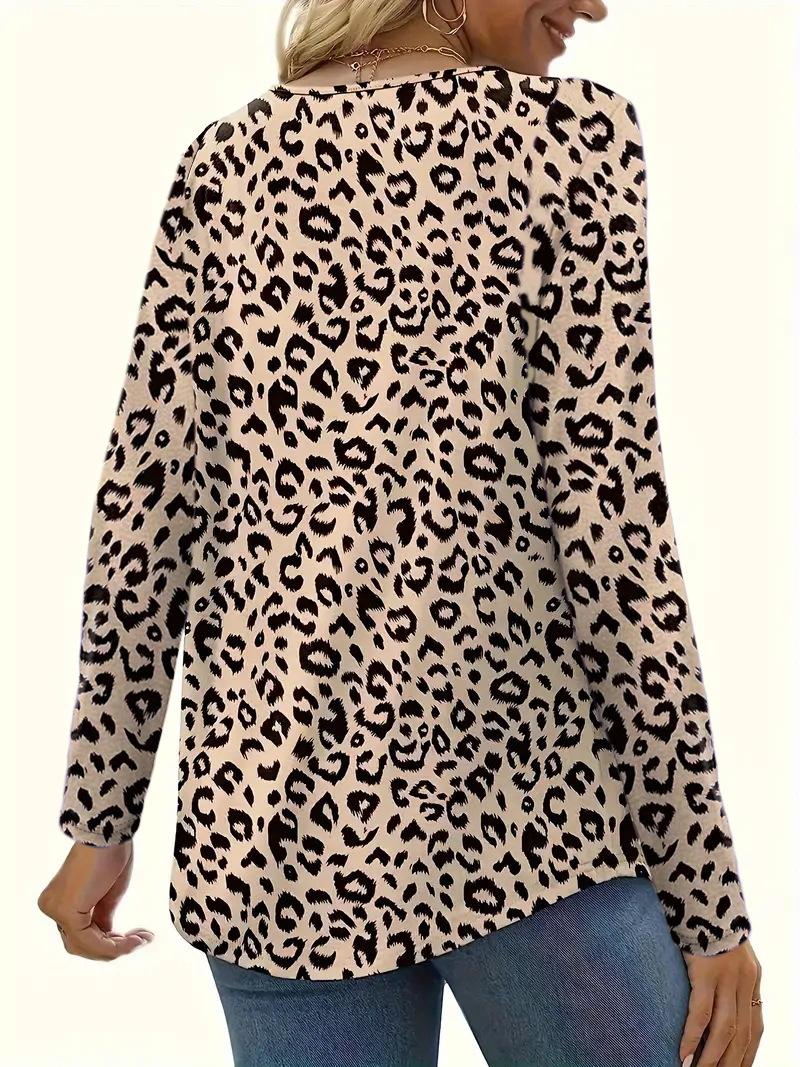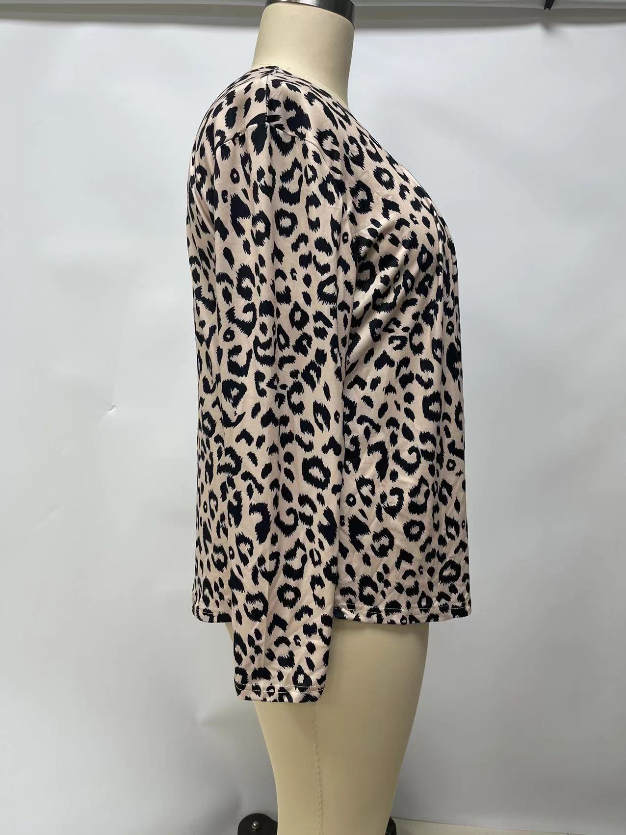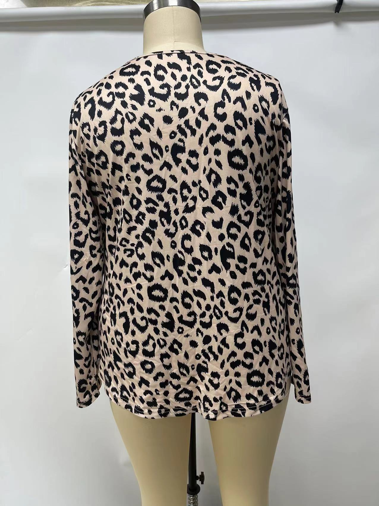 2024 transfronterizo europeo y americano estampado de leopardo otoño e invierno impresión digital temperamento ocio manga larga