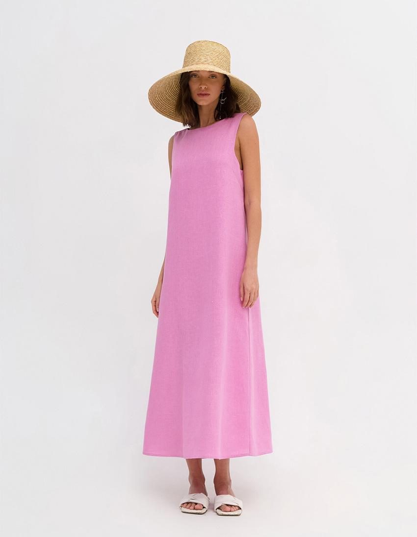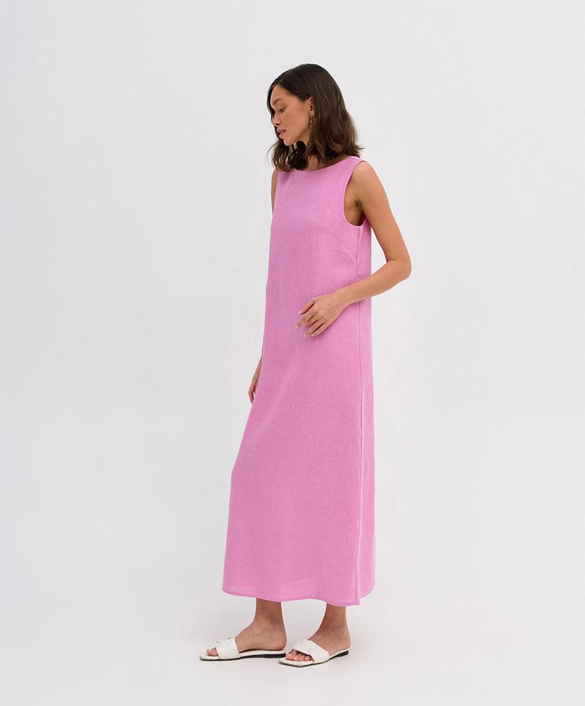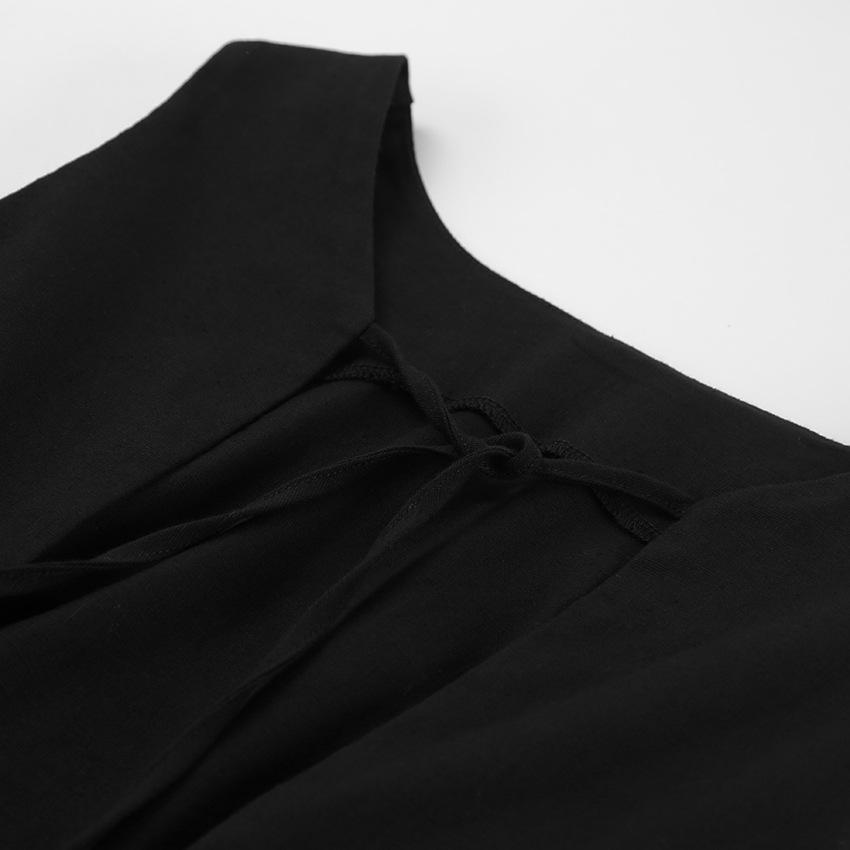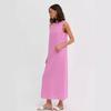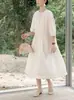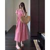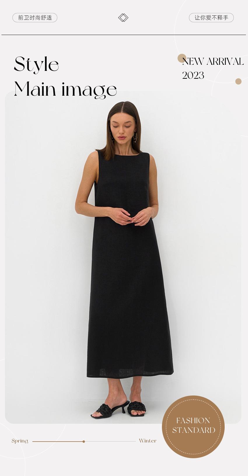 Vestido básico de lino y algodón con cuello redondo, holgado, estilo francés, de primavera 2024