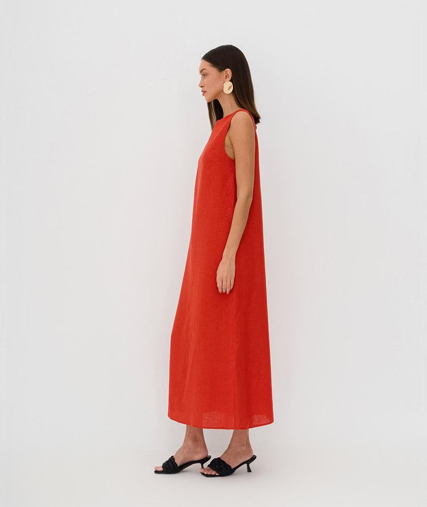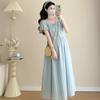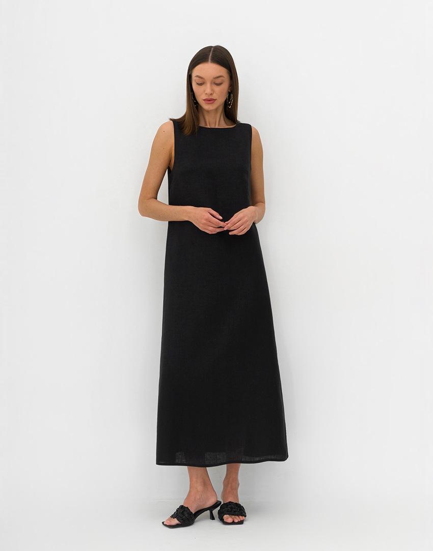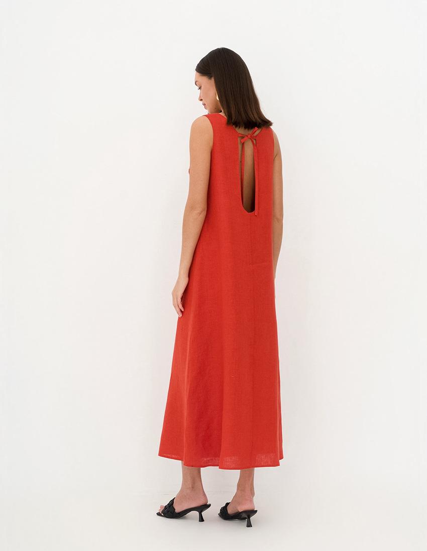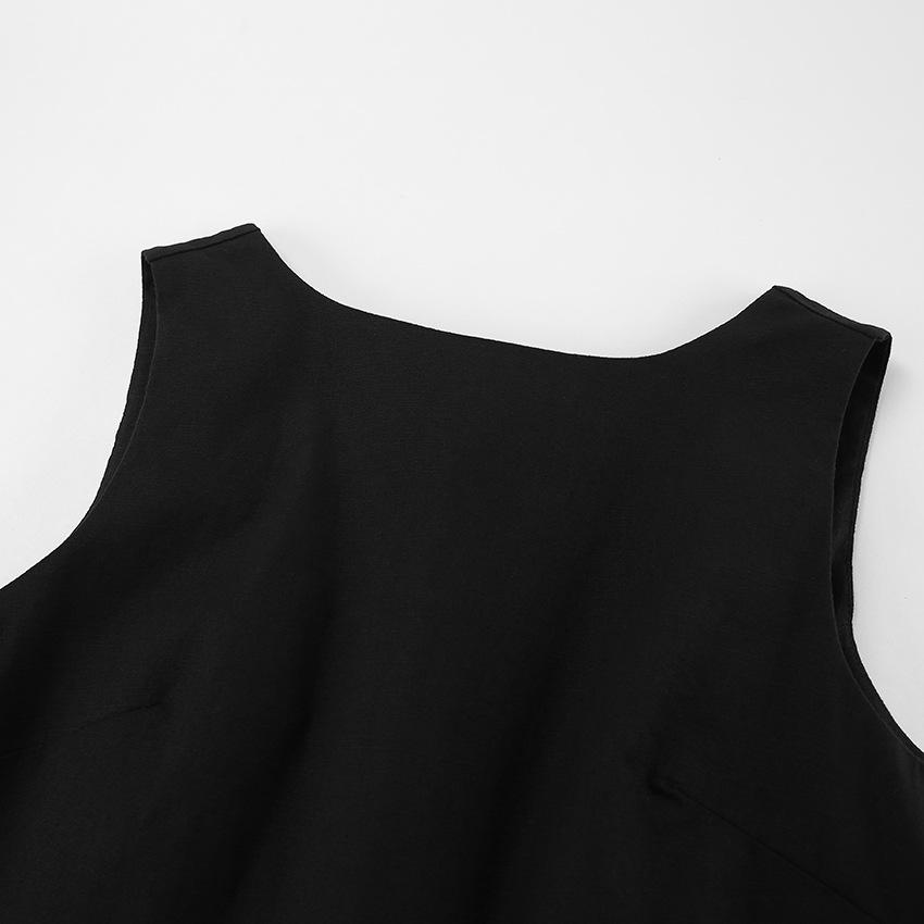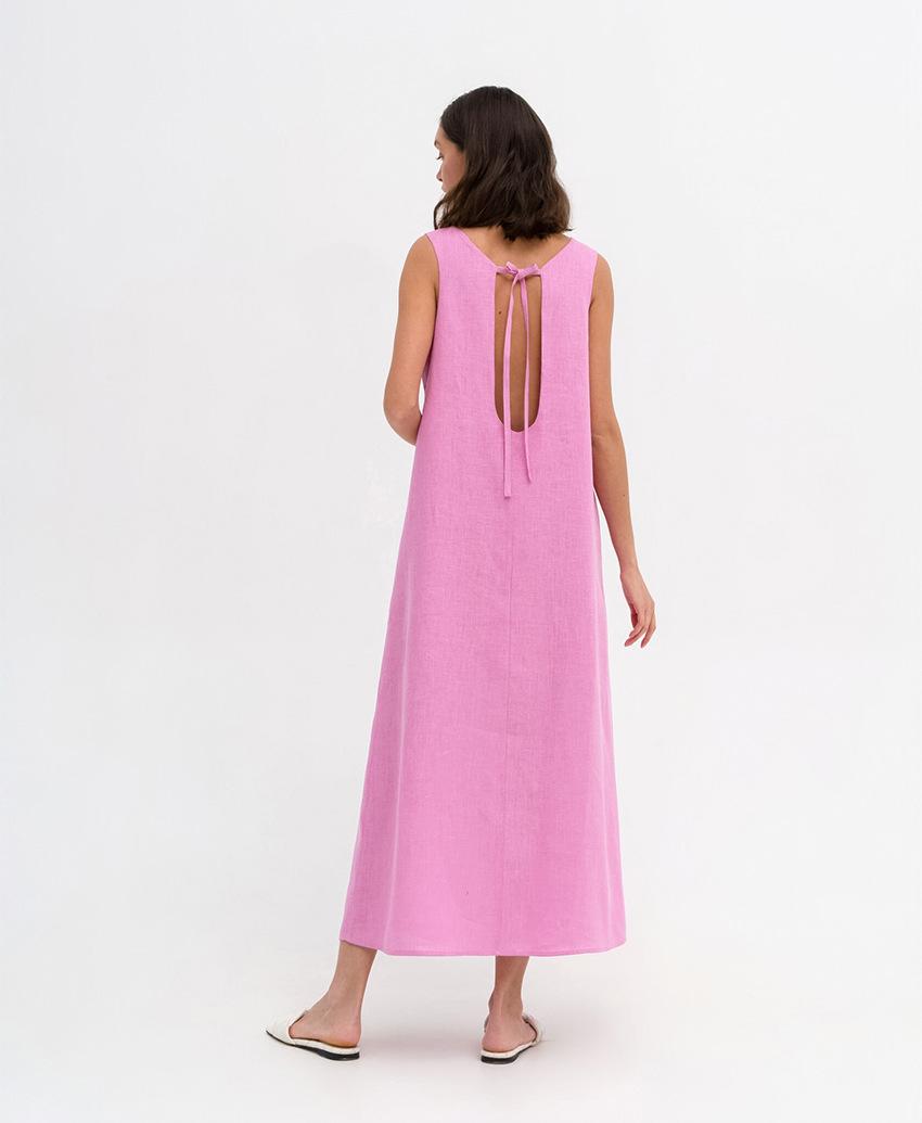 Vestido básico de lino y algodón con cuello redondo, holgado, estilo francés, de primavera 2024