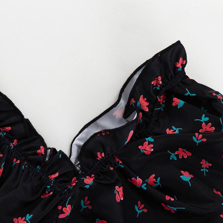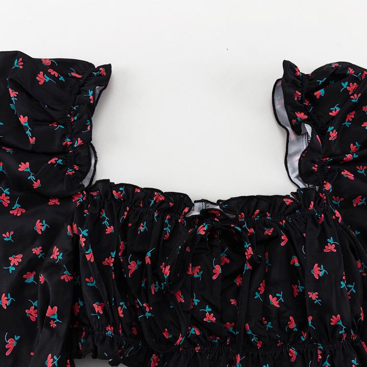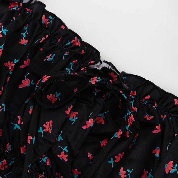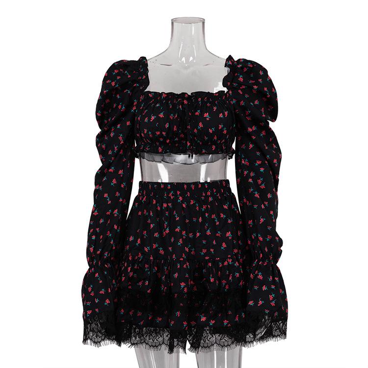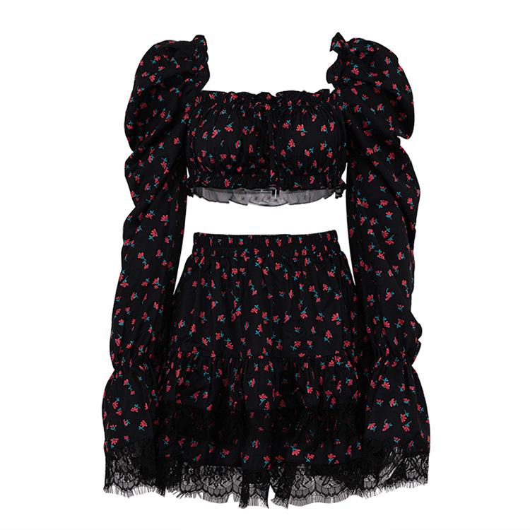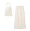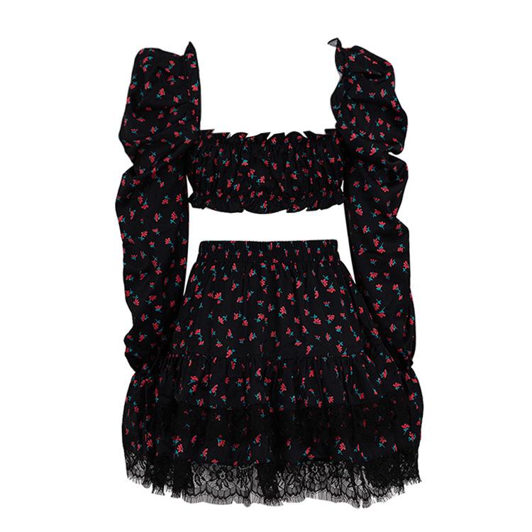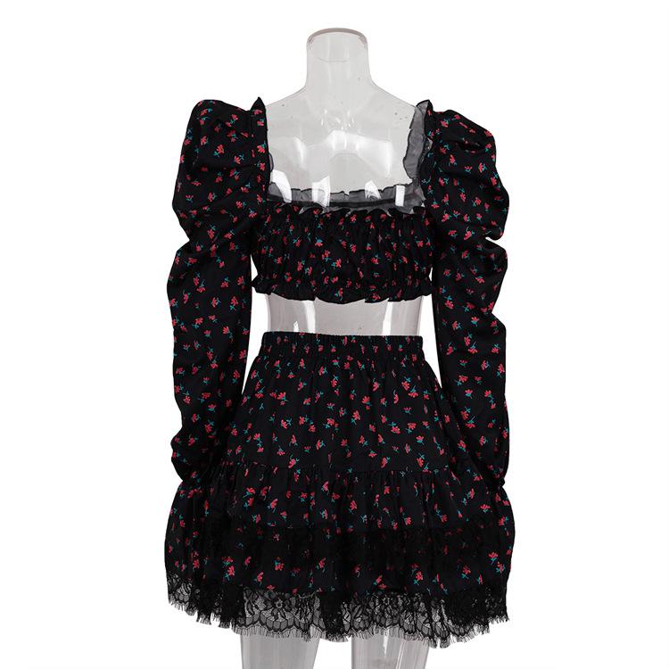 Conjunto de dos piezas con top de tubo y falda con volantes, diseño de costura de encaje para mujer europea y americana.