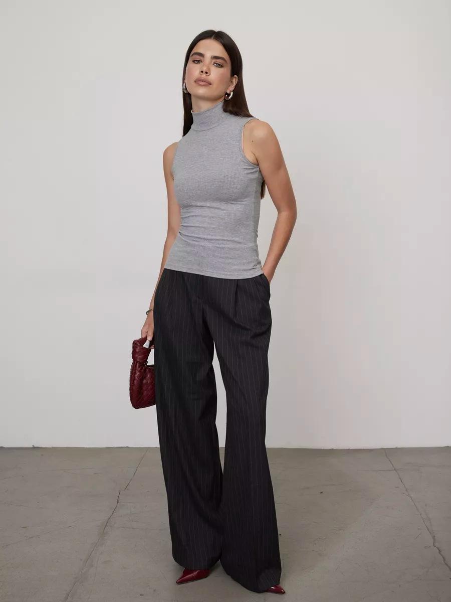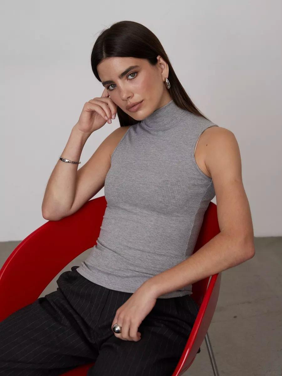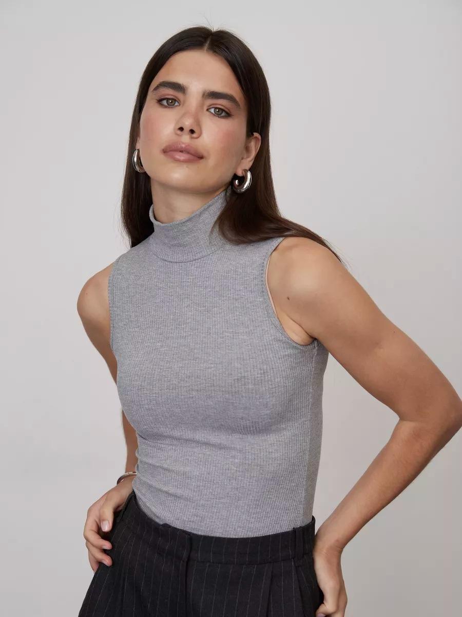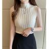 Nuevo Chaleco de Suéter de Punto de Color Sólido para Spice Girls Europeo y Americano Transfronterizo para Mujer con Cuello Alto y sin Mangas