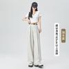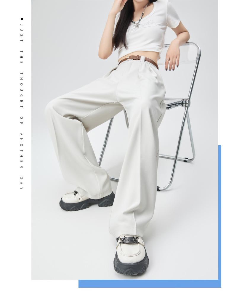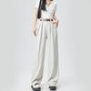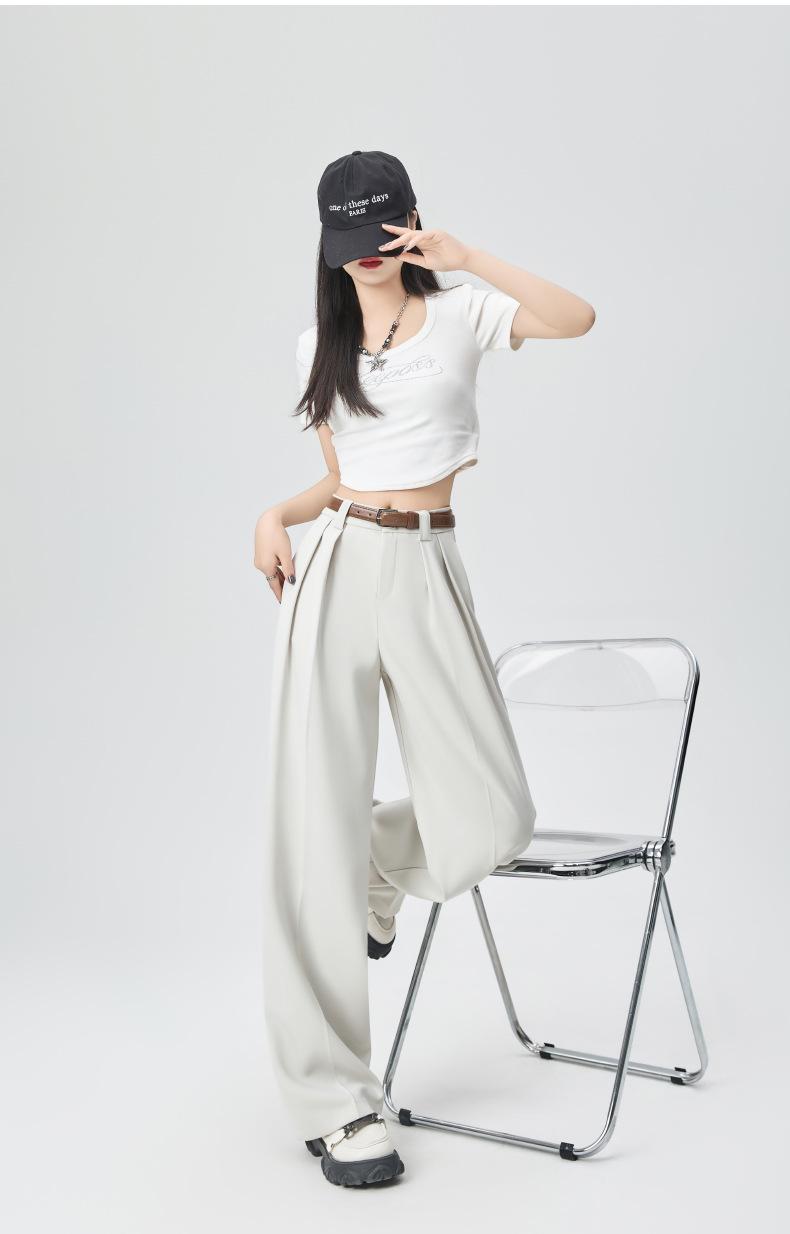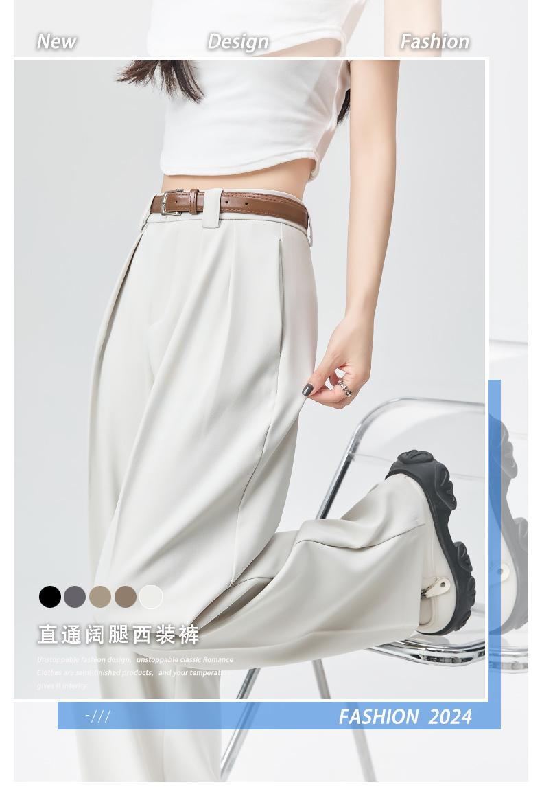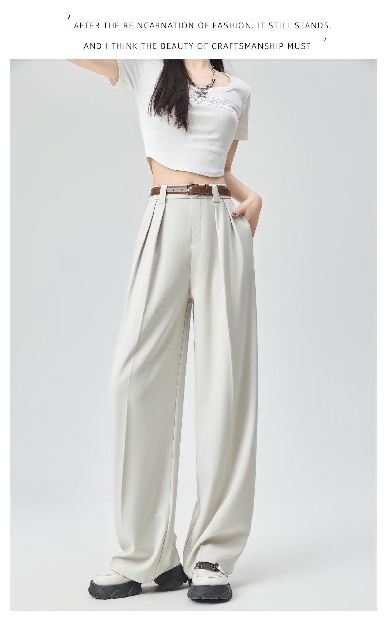 Pantalones de Traje Blancos para Mujer, Verano Delgados, Petite, Pierna Recta, Drapeados, Pantalones Casuales, Pantalones de Pierna Ancha Slim-Fit, Nuevo Estilo 2024