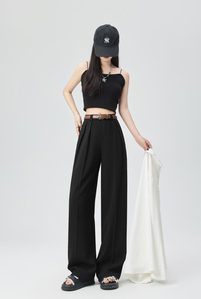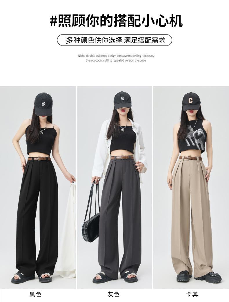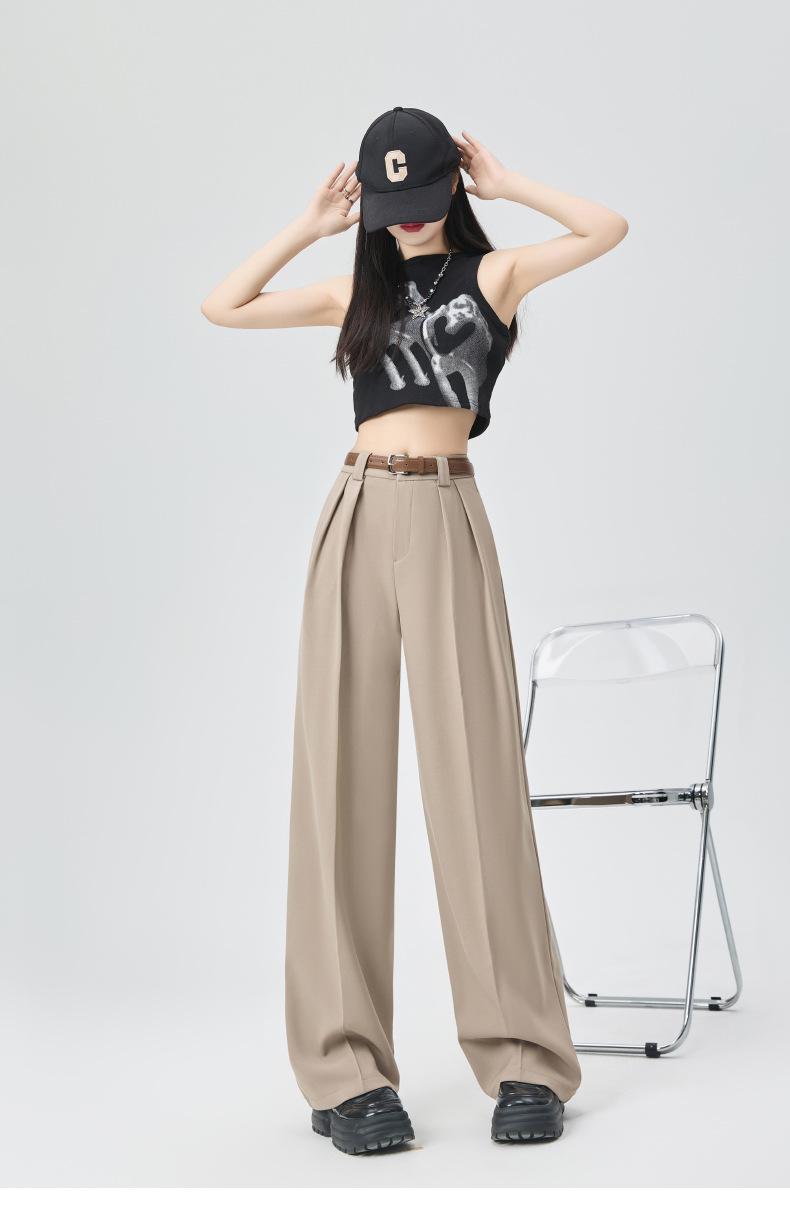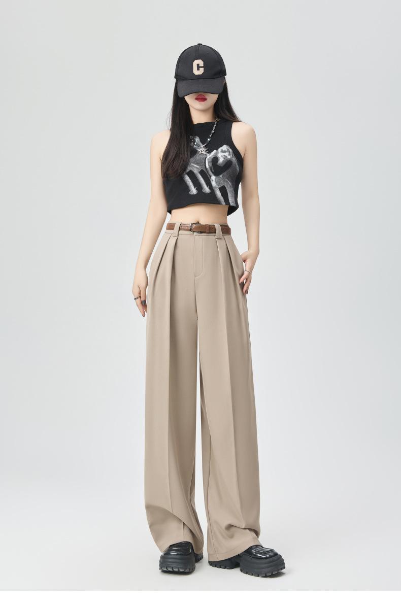 Pantalones de traje color albaricoque para mujer, verano, delgados, holgados, rectos pequeños, casuales, de alta calidad, trece líneas, versión estrecha, pantalones de pierna ancha