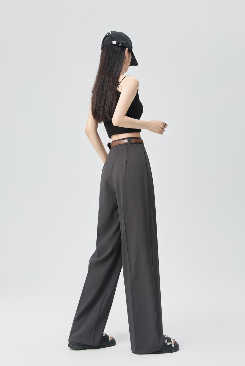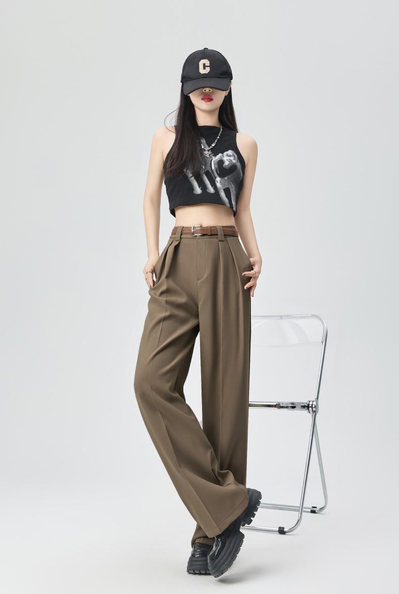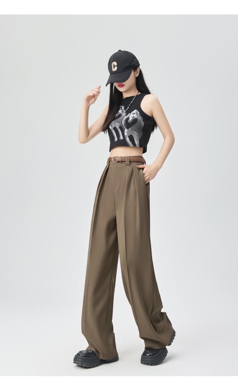 Pantalones de traje color albaricoque para mujer, verano, delgados, holgados, rectos pequeños, casuales, de alta calidad, trece líneas, versión estrecha, pantalones de pierna ancha