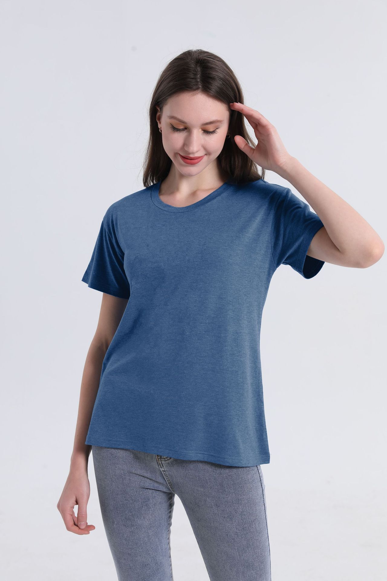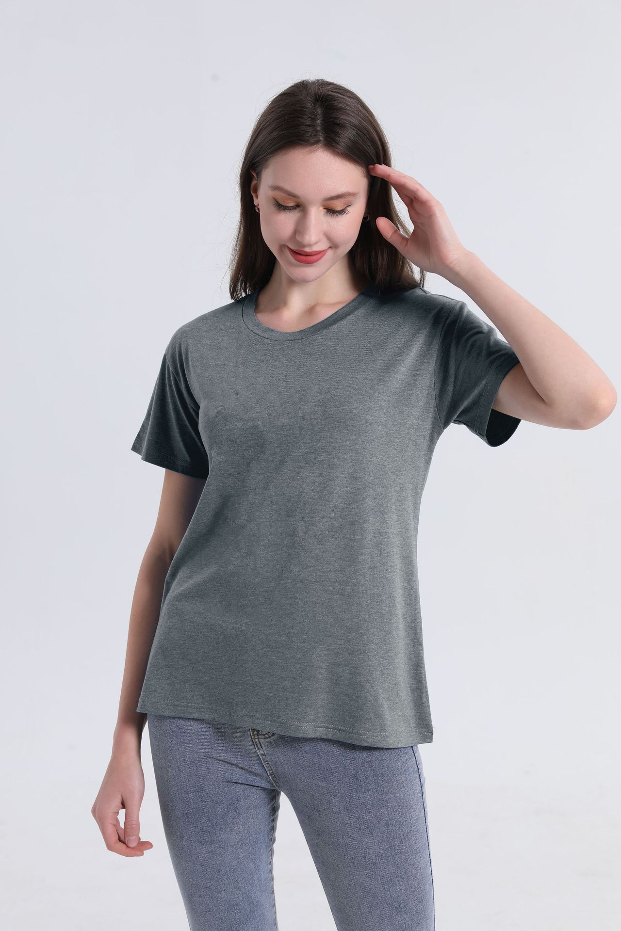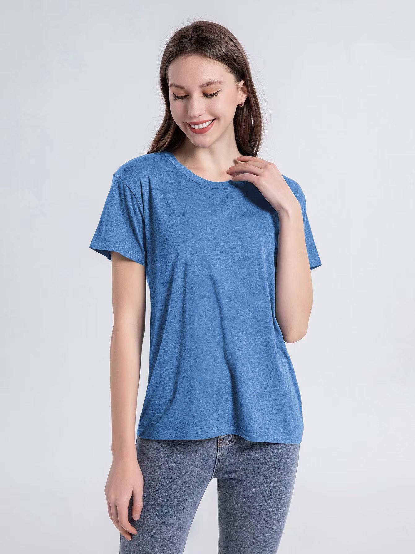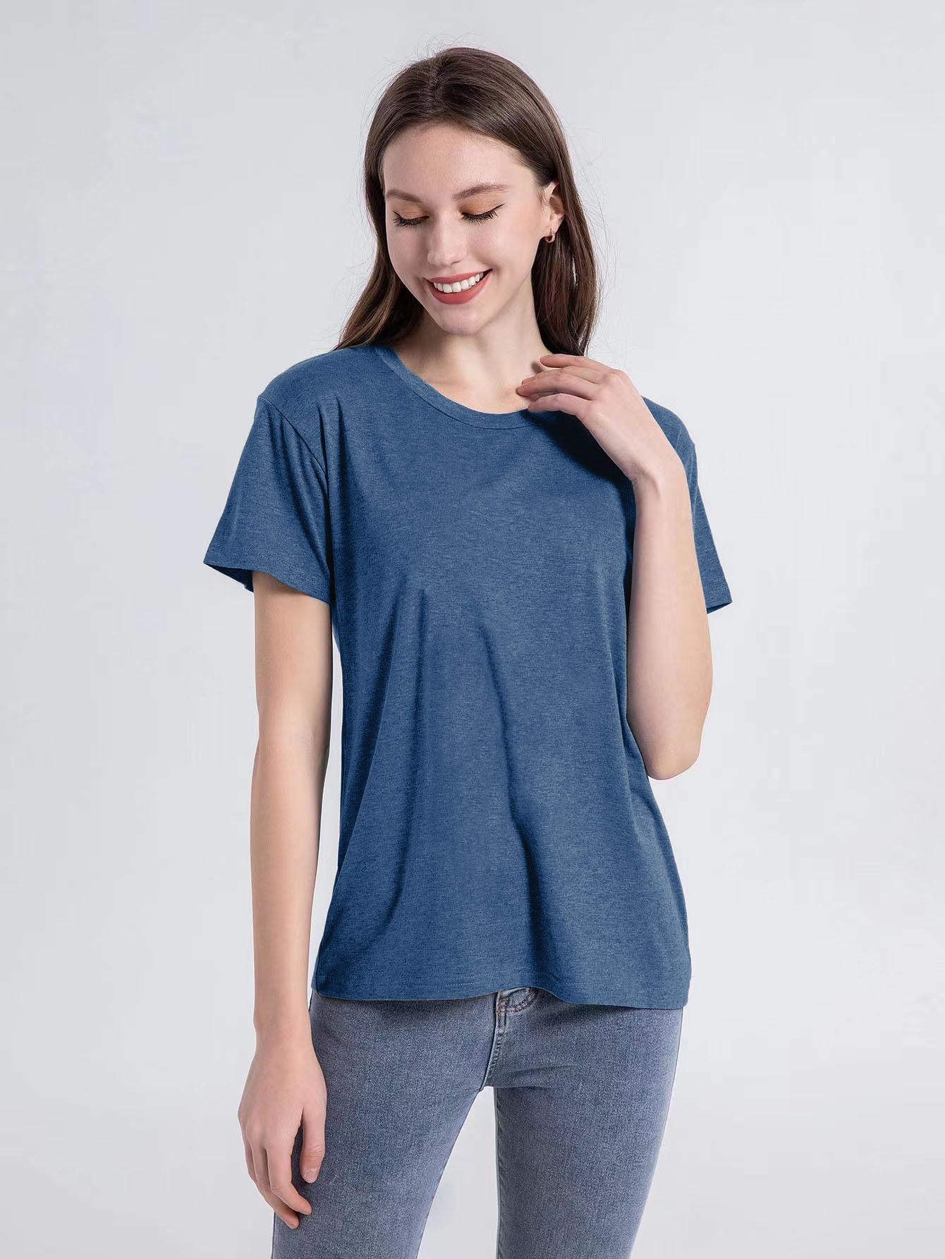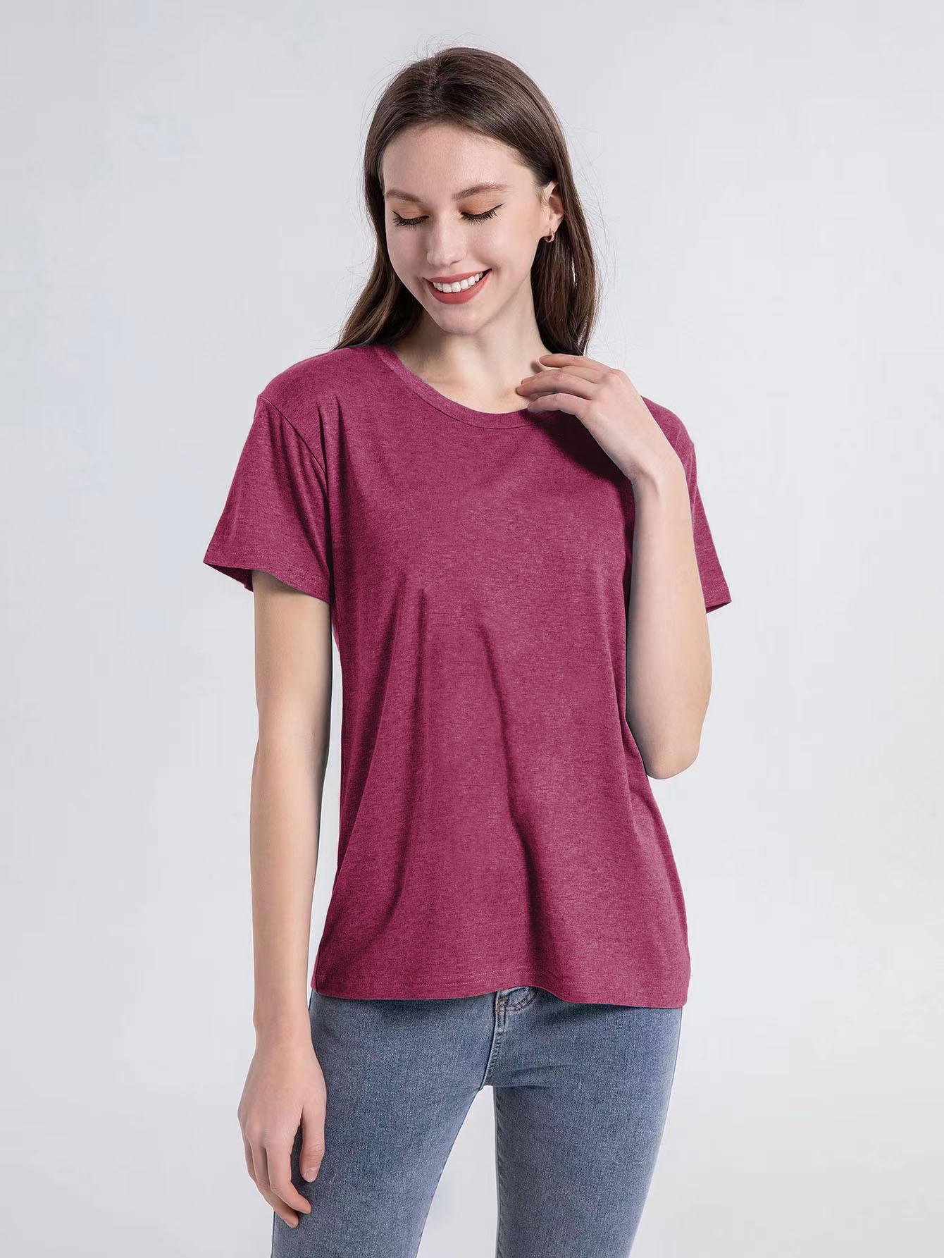 Camiseta de manga corta de color liso con cuello redondo suelto para mujer, de comercio exterior transfronterizo europeo y americano, de eBay y Amazon, 2023