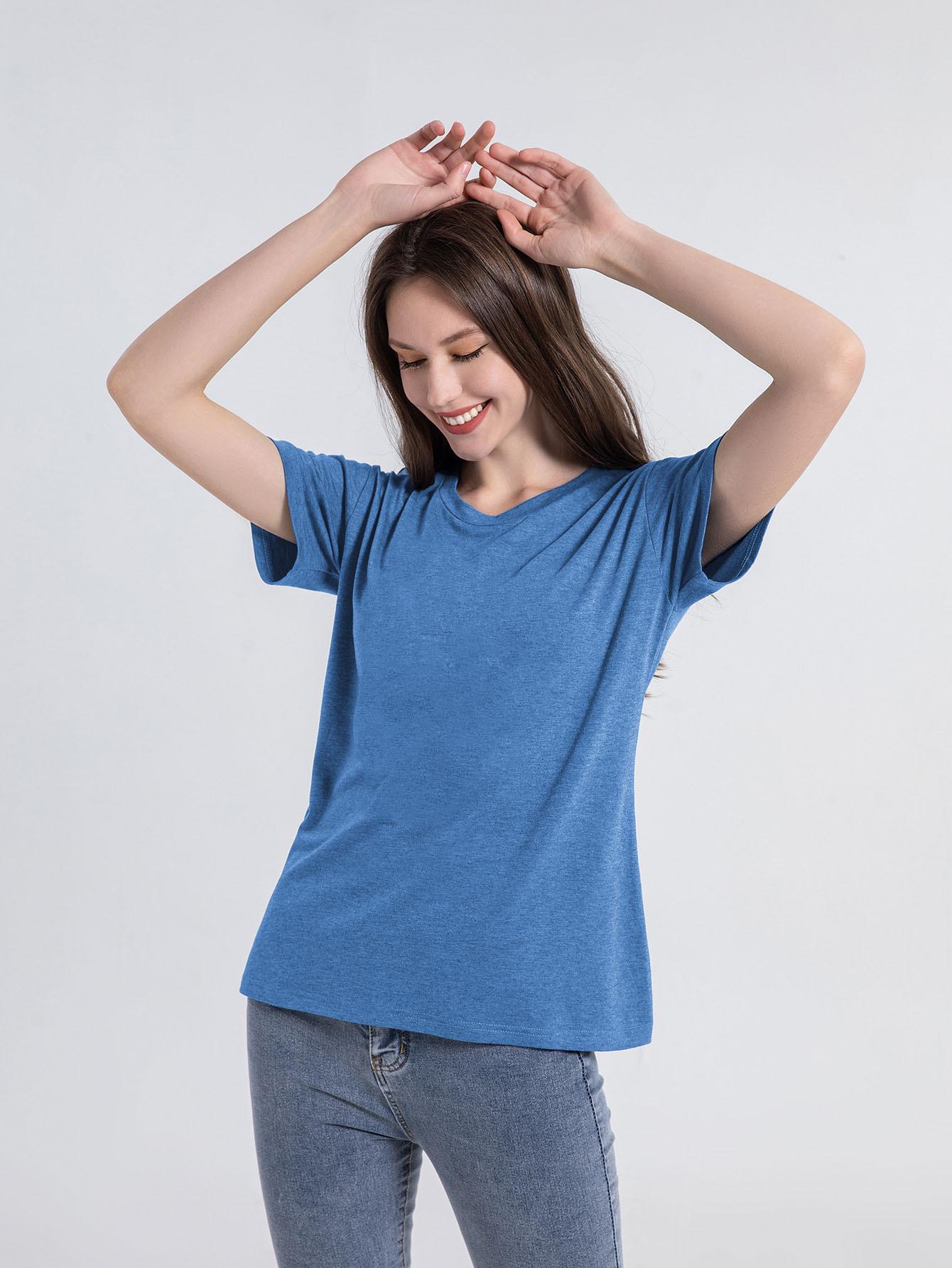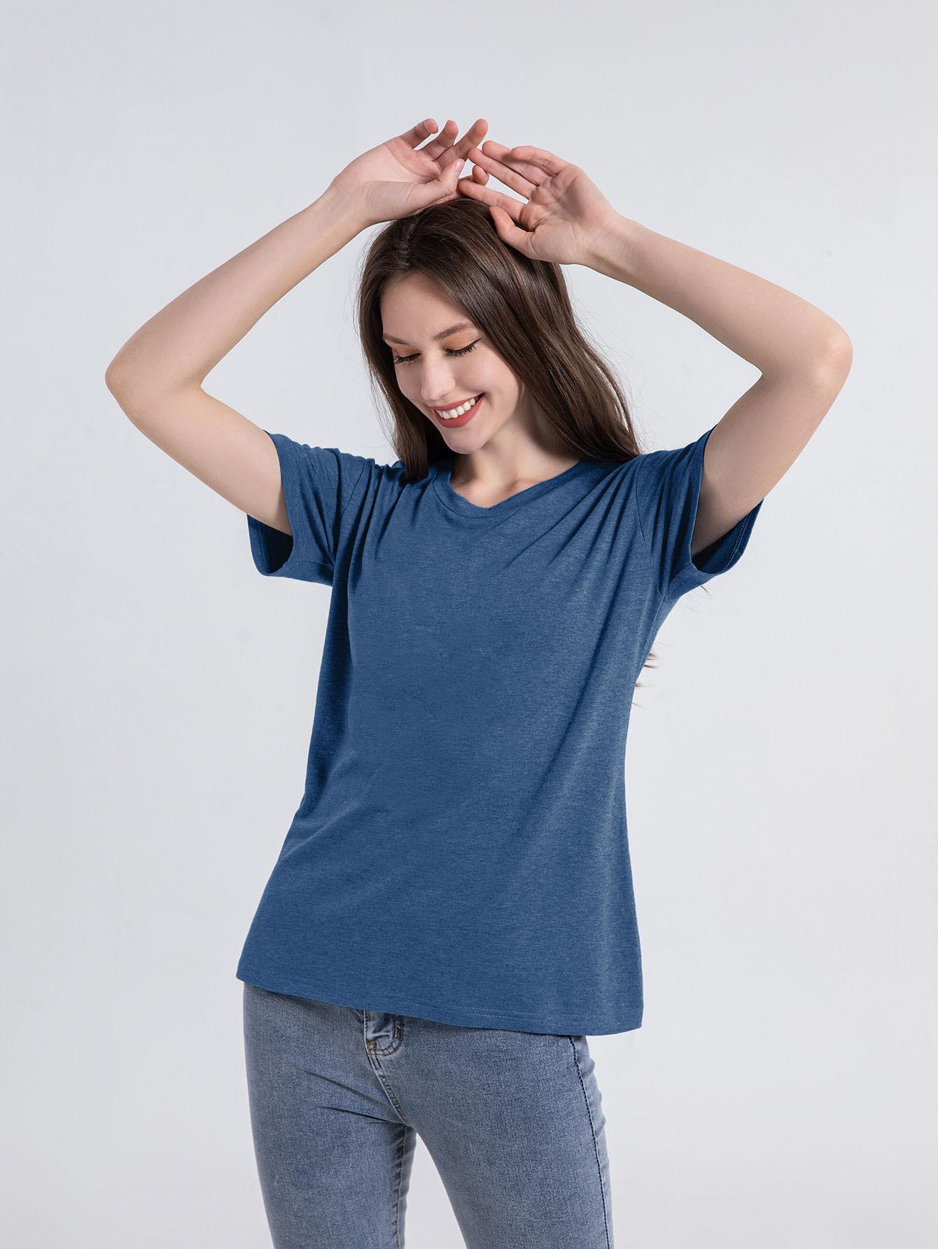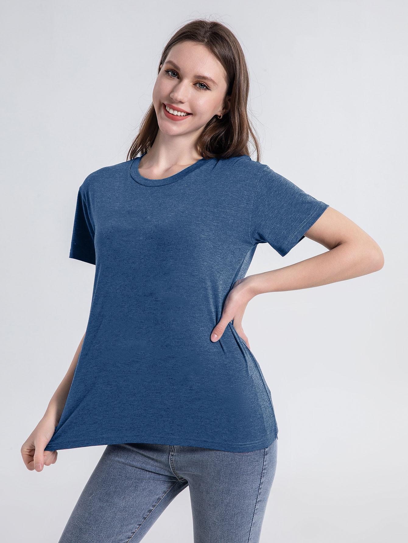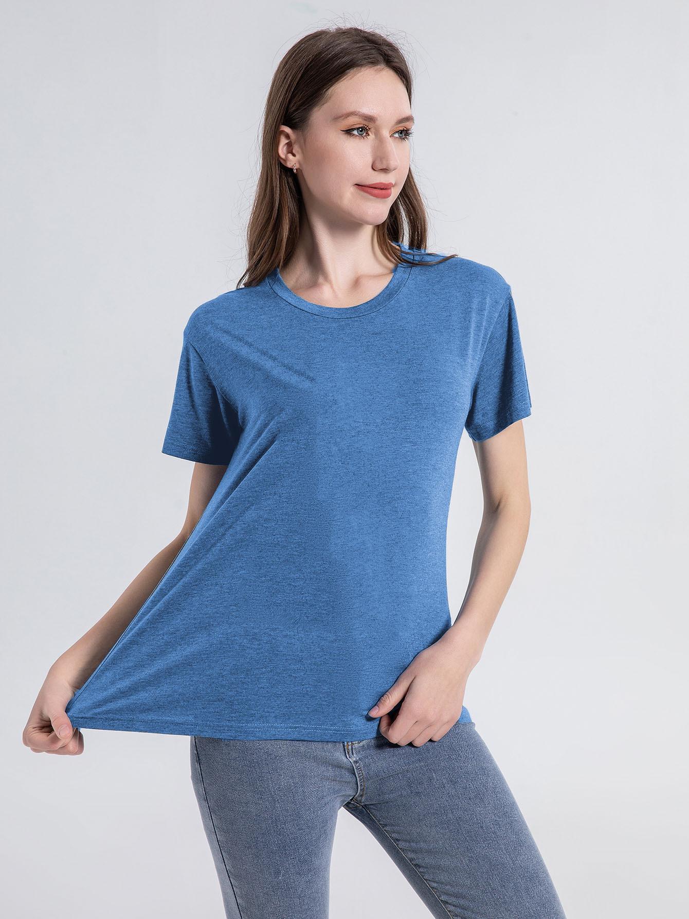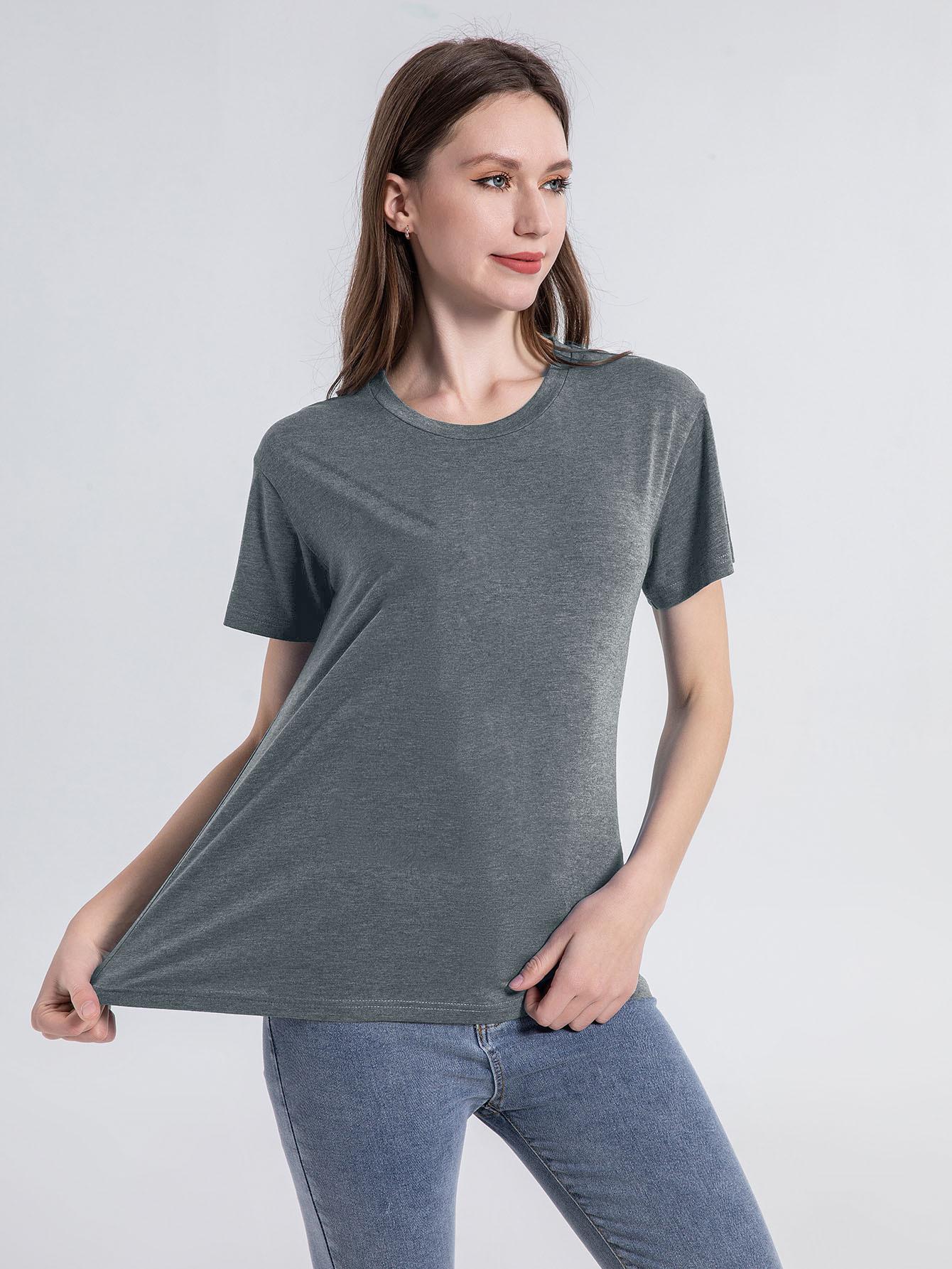 Camiseta de manga corta de color liso con cuello redondo suelto para mujer, de comercio exterior transfronterizo europeo y americano, de eBay y Amazon, 2023