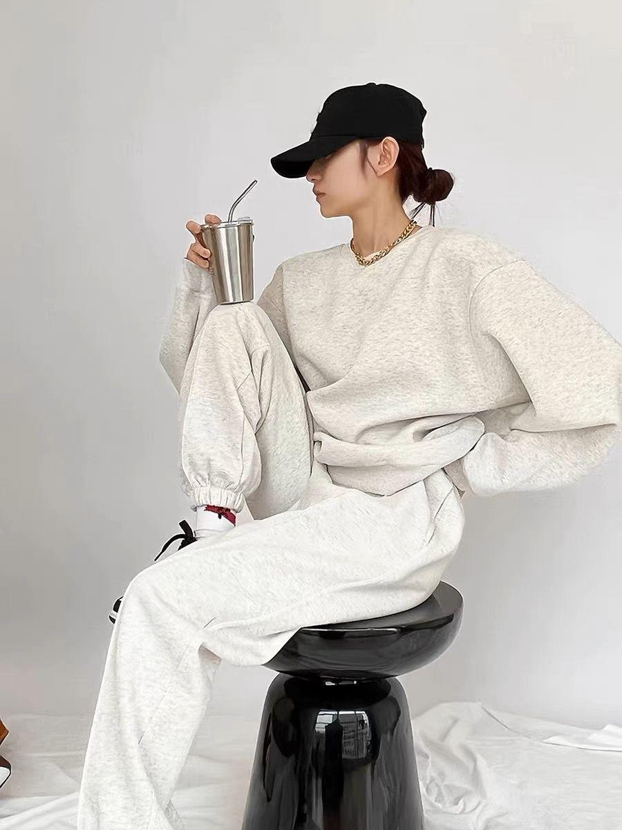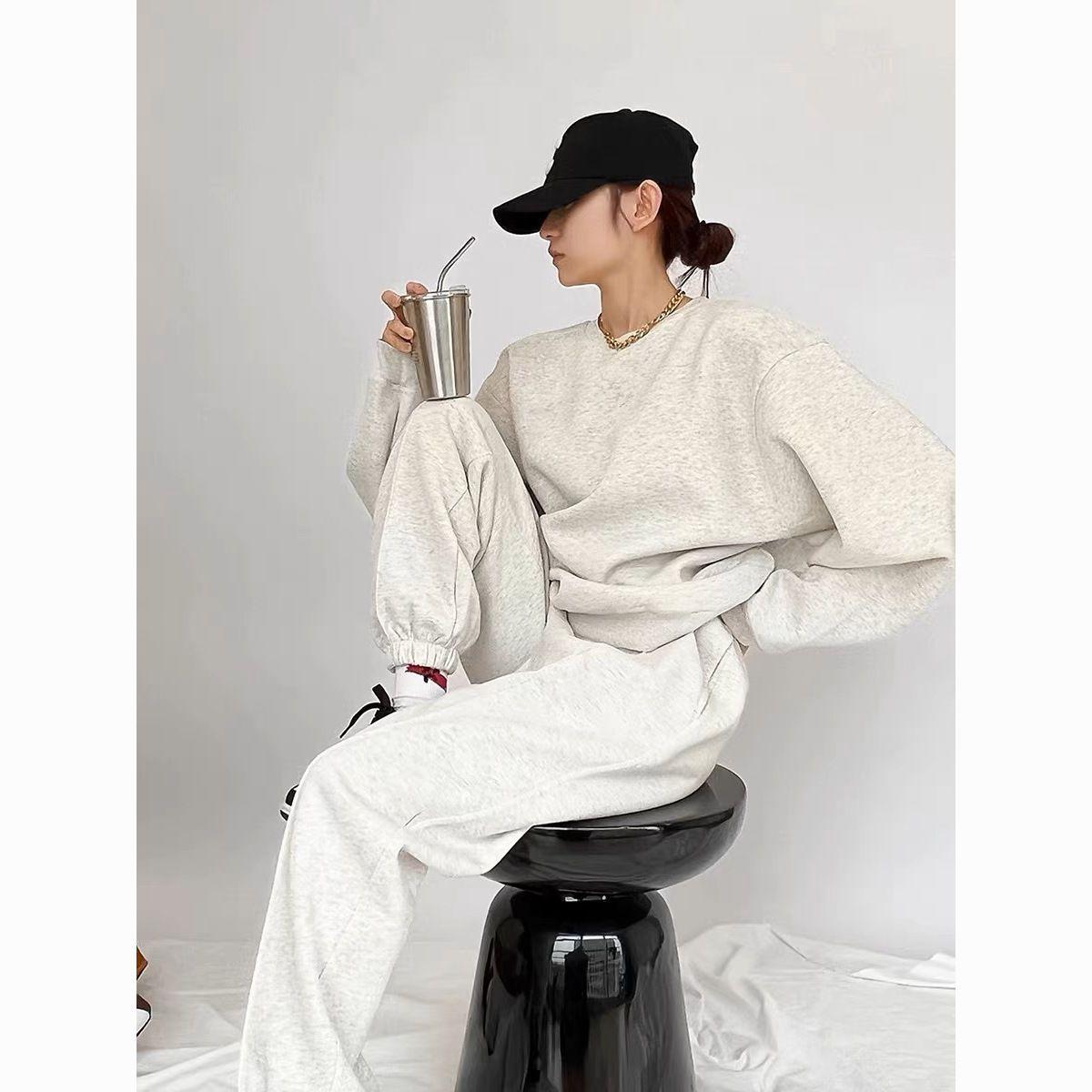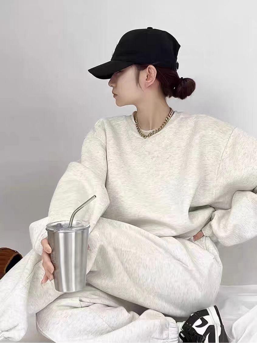 Sudadera retro americana gris de primavera y otoño de 2024, traje informal para mujer, pantalones deportivos de estilo coreano, conjunto de dos piezas a la moda.