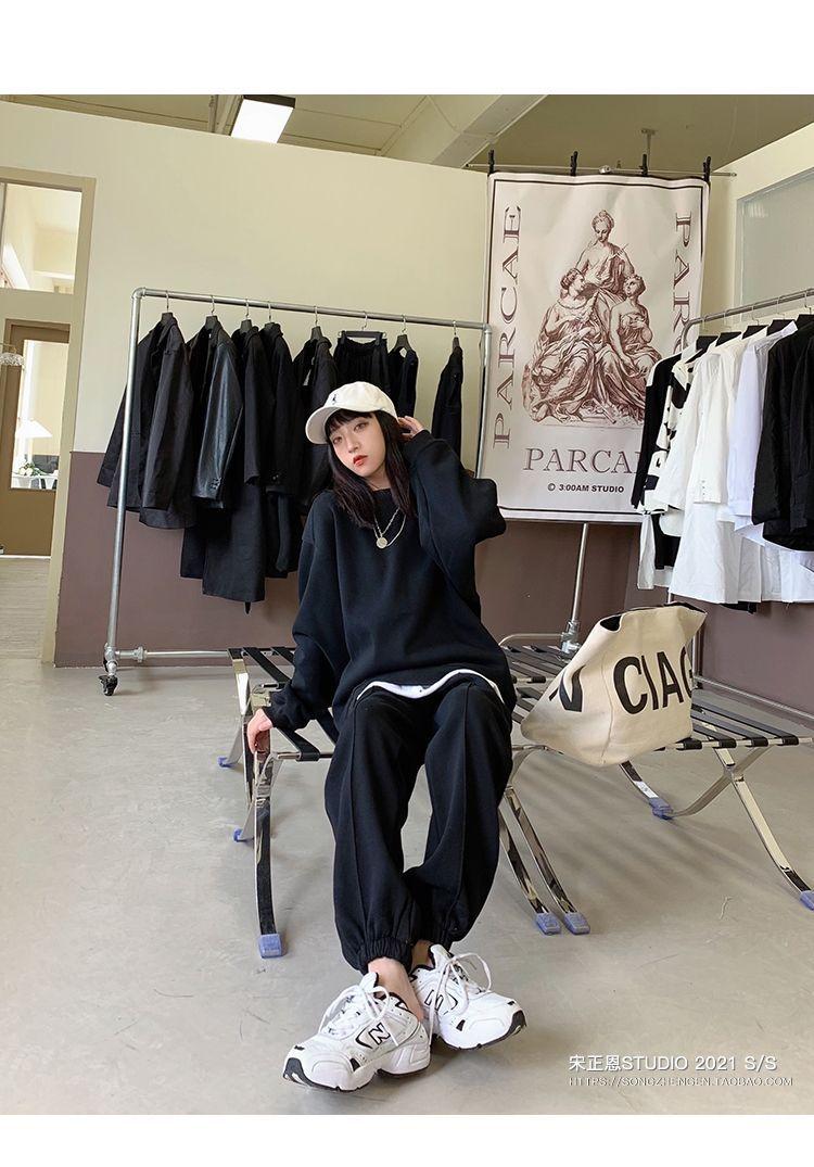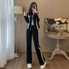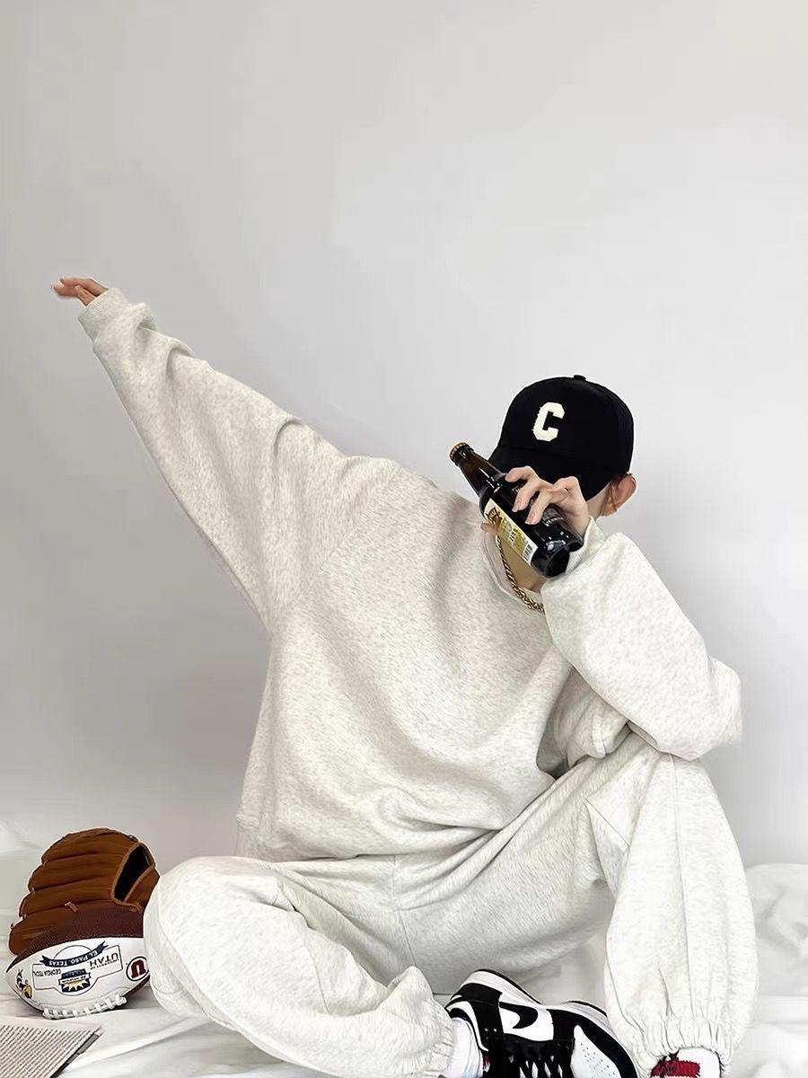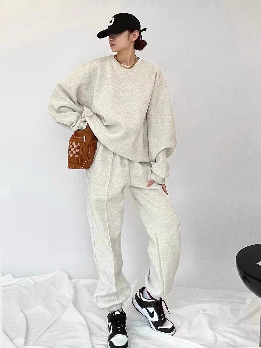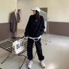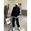 Sudadera retro americana gris de primavera y otoño de 2024, traje informal para mujer, pantalones deportivos de estilo coreano, conjunto de dos piezas a la moda.