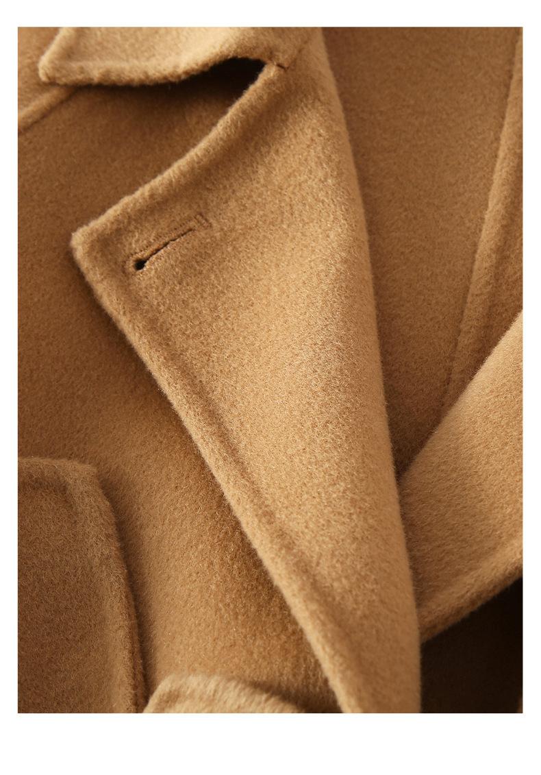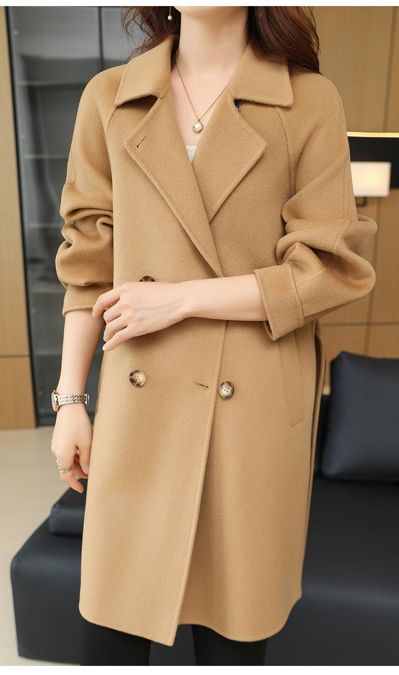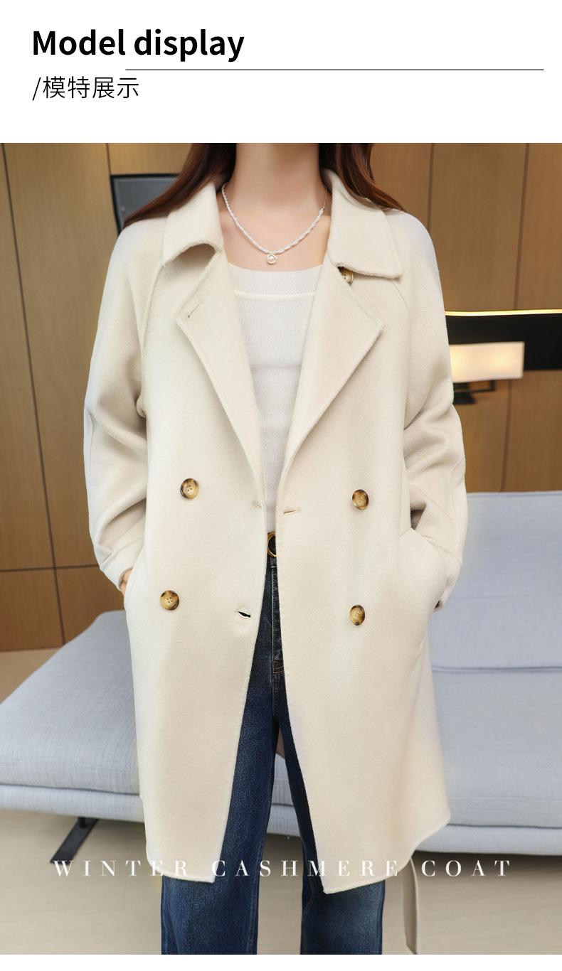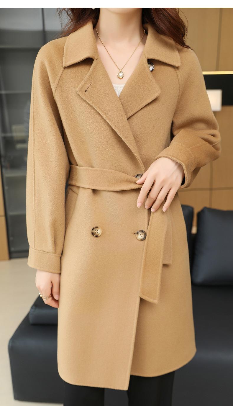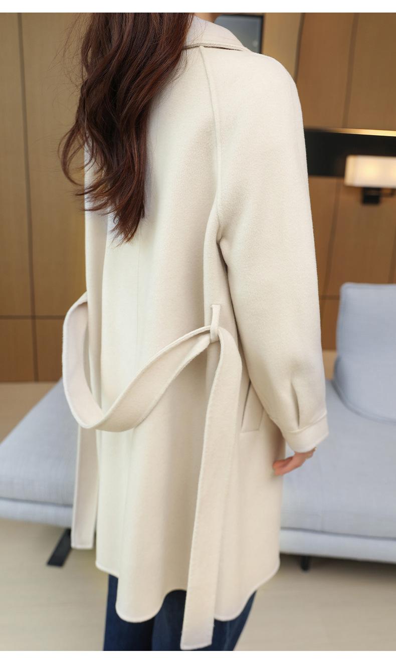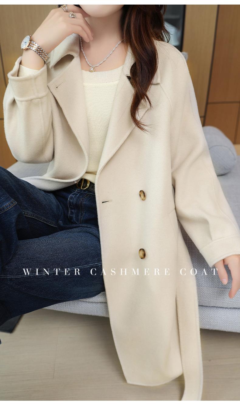 Abrigo de lana pura cruzado nuevo de otoño e invierno para mujer, abrigo de cachemira de doble cara elegante y de moda de longitud media