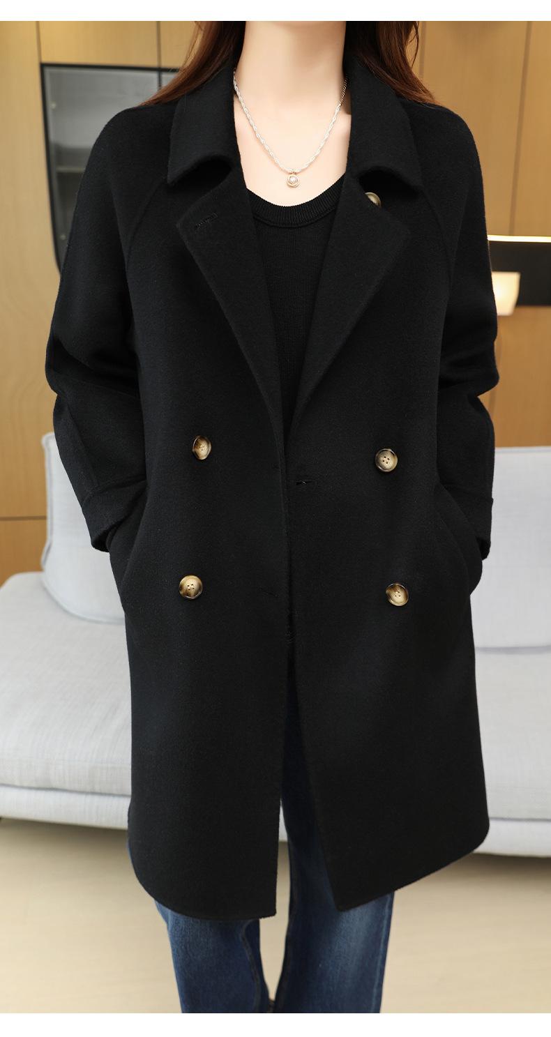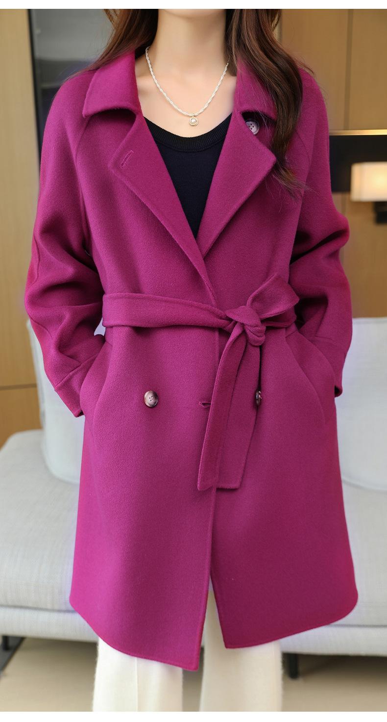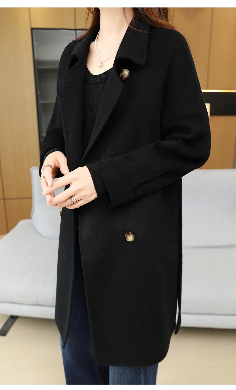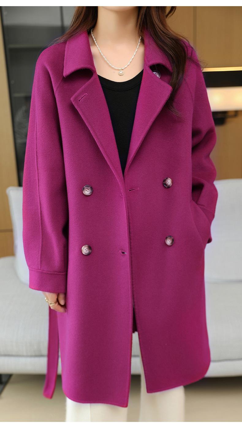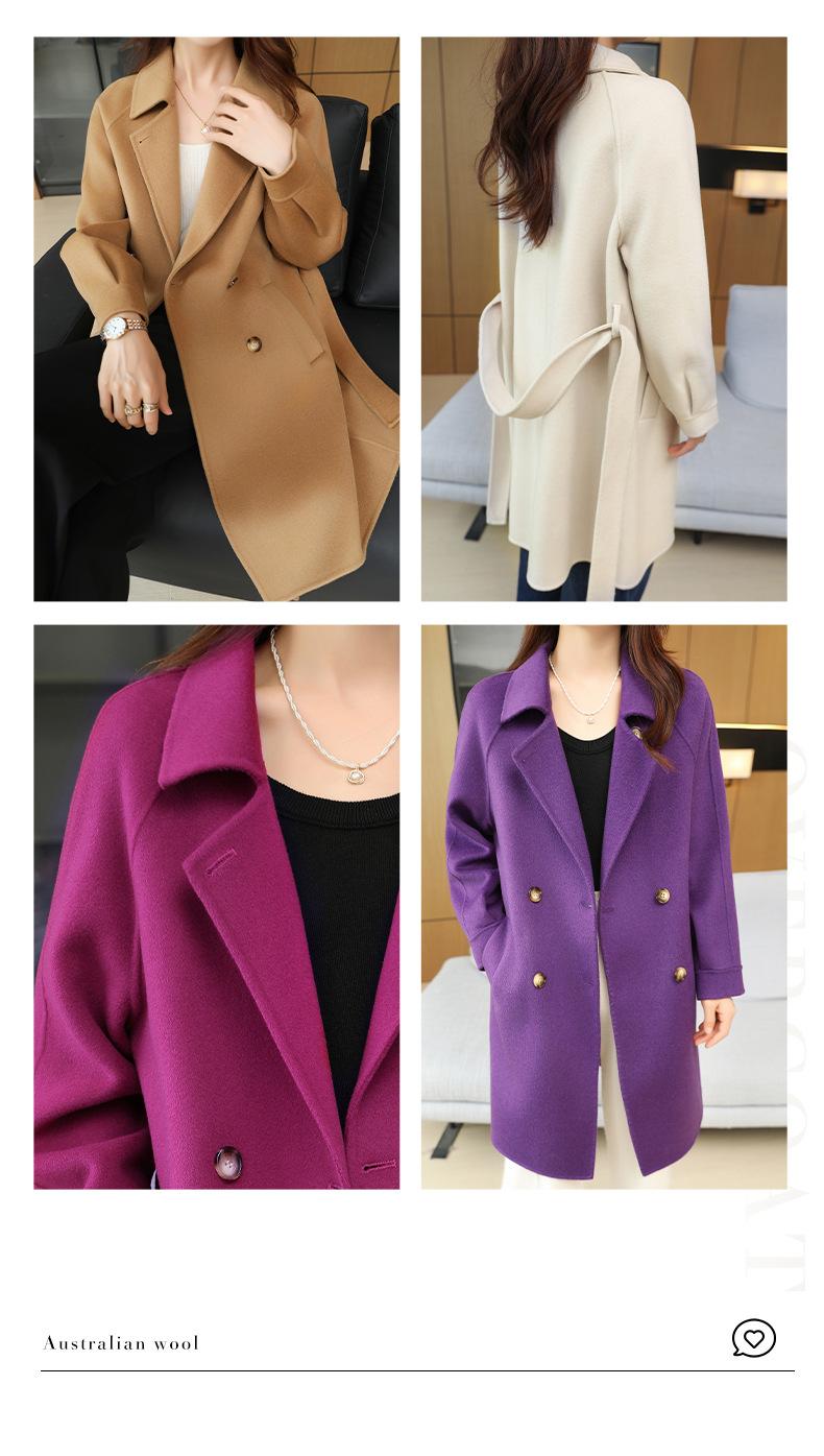 Abrigo de lana pura cruzado nuevo de otoño e invierno para mujer, abrigo de cachemira de doble cara elegante y de moda de longitud media