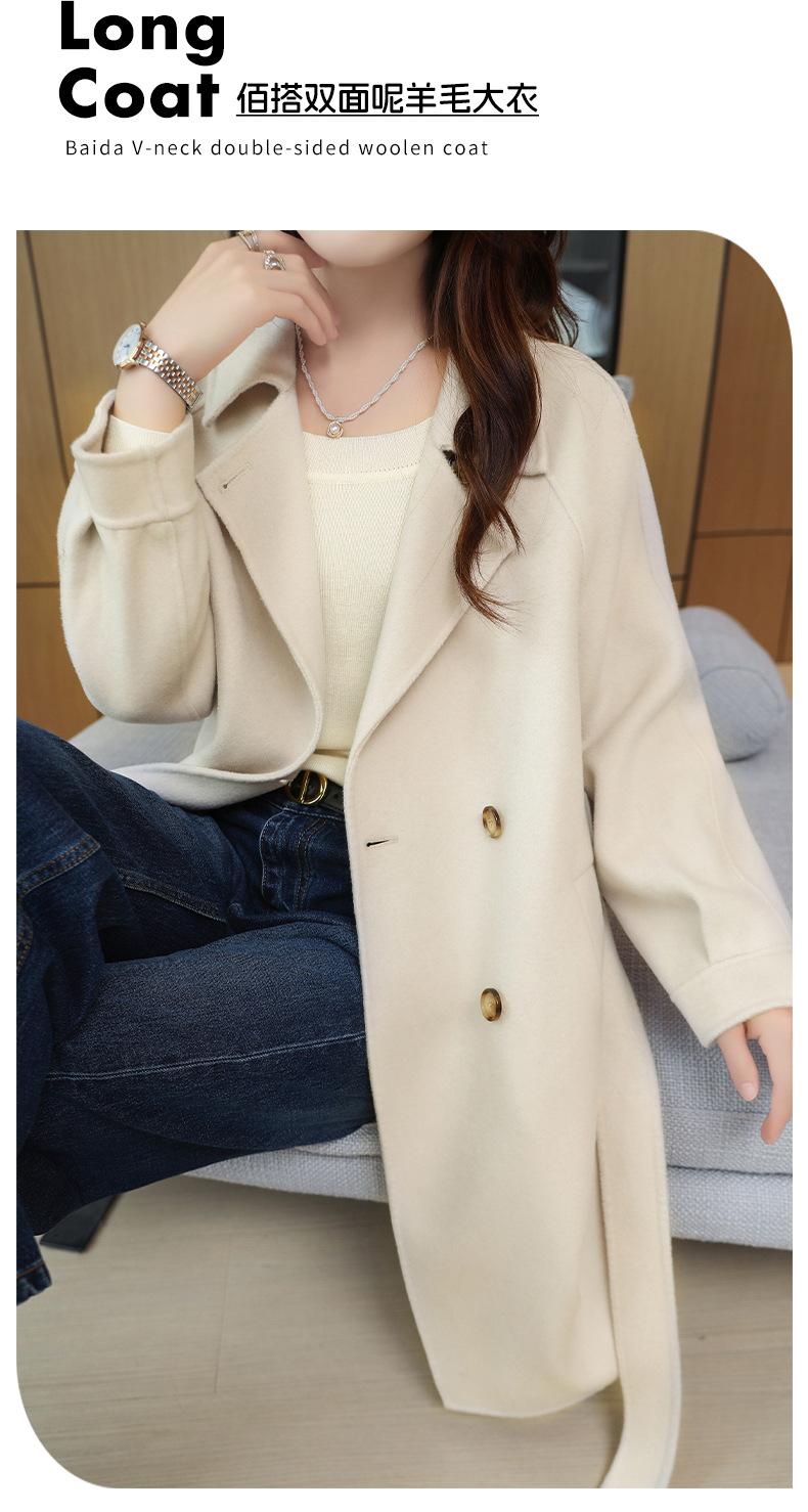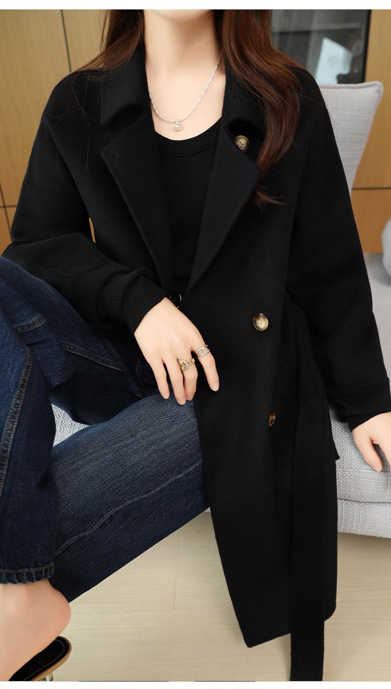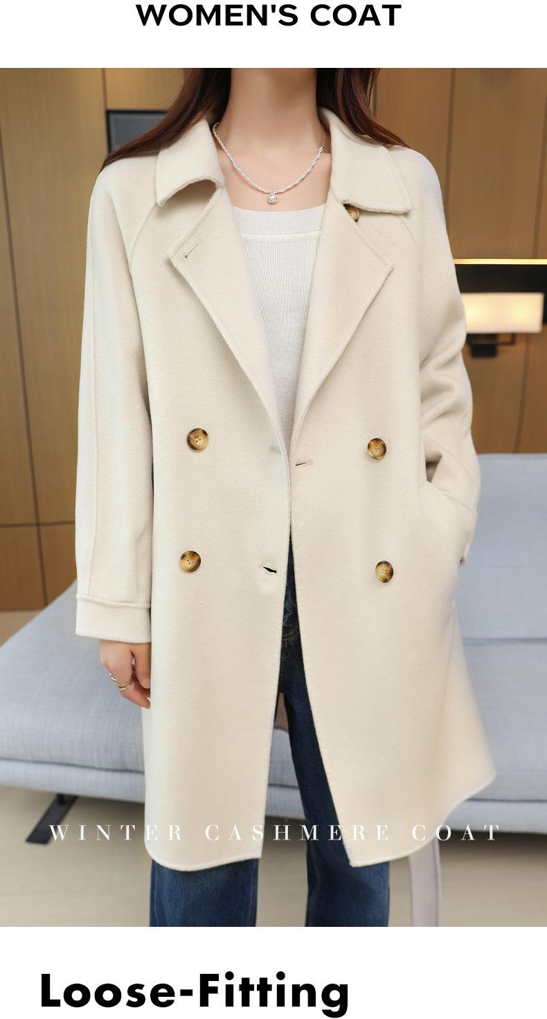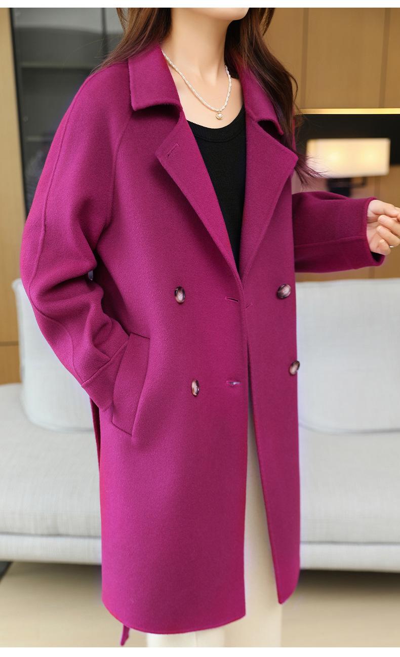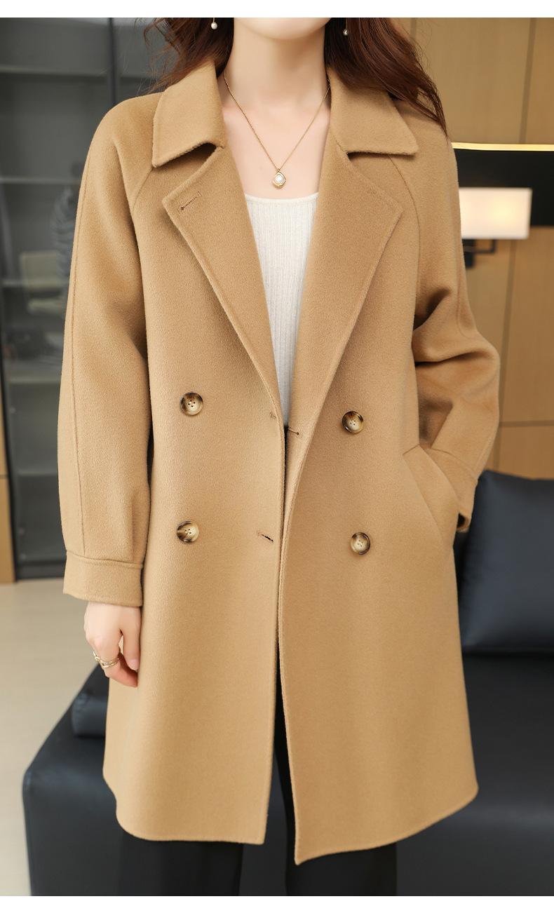 Abrigo de lana pura cruzado nuevo de otoño e invierno para mujer, abrigo de cachemira de doble cara elegante y de moda de longitud media