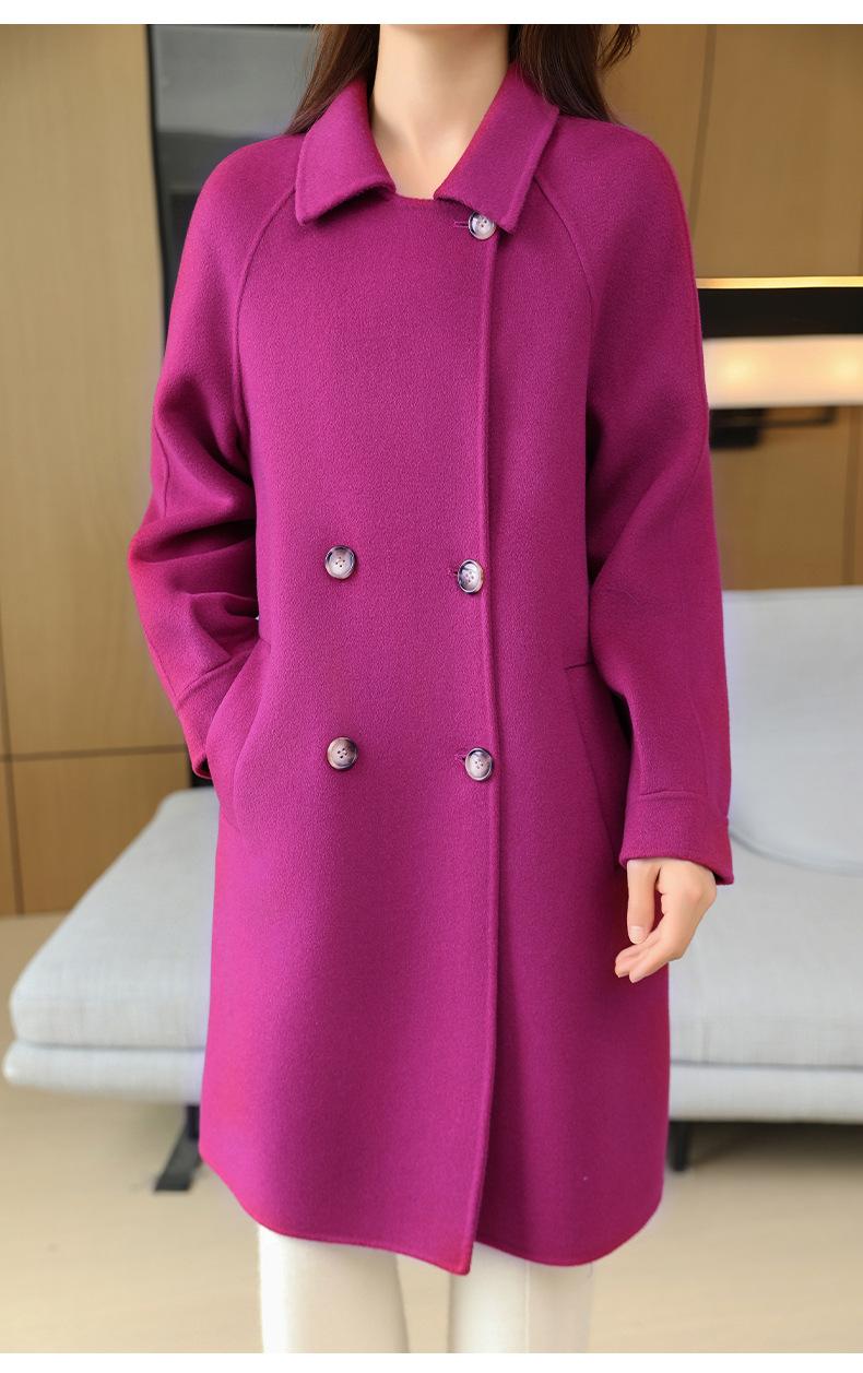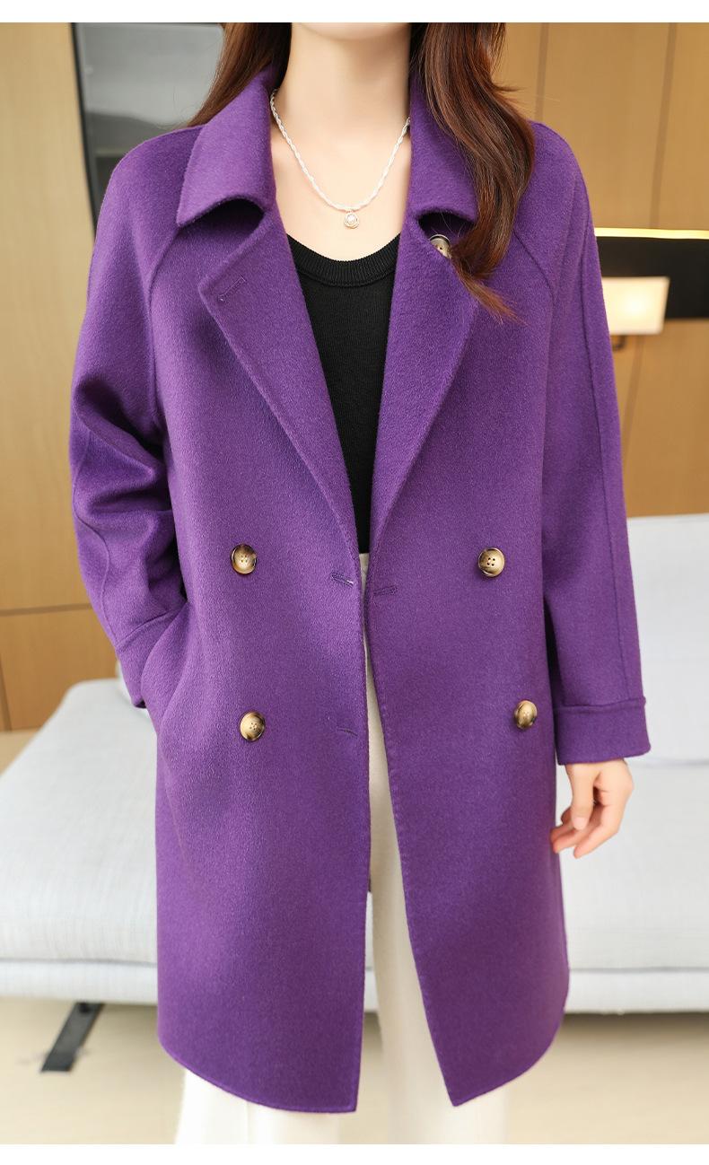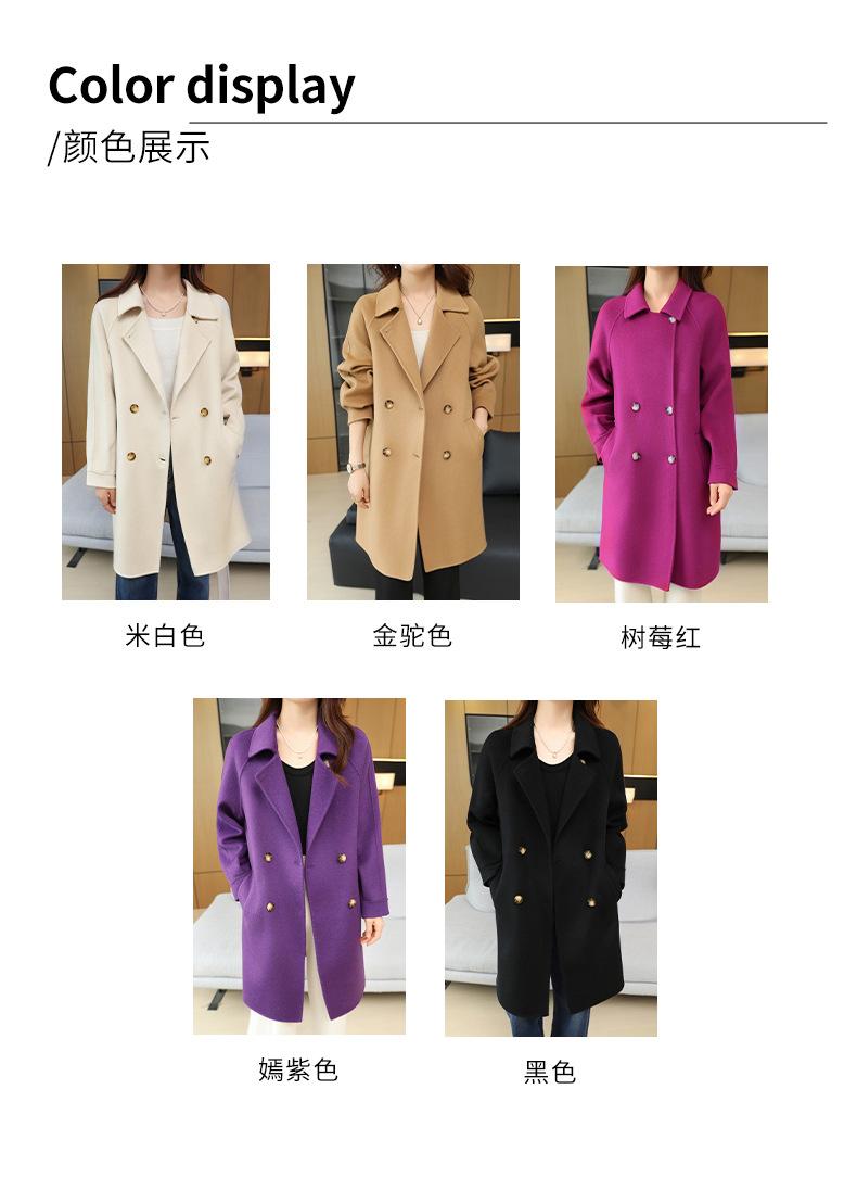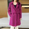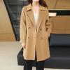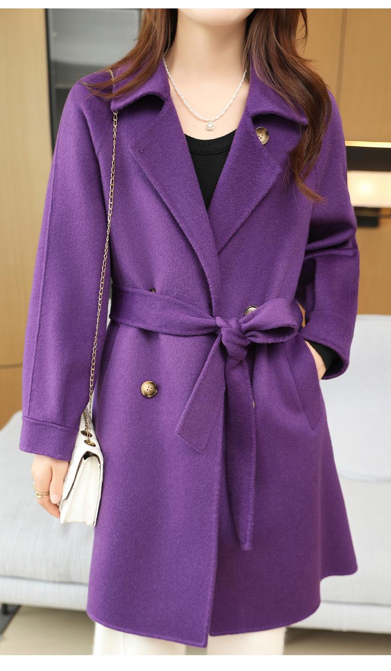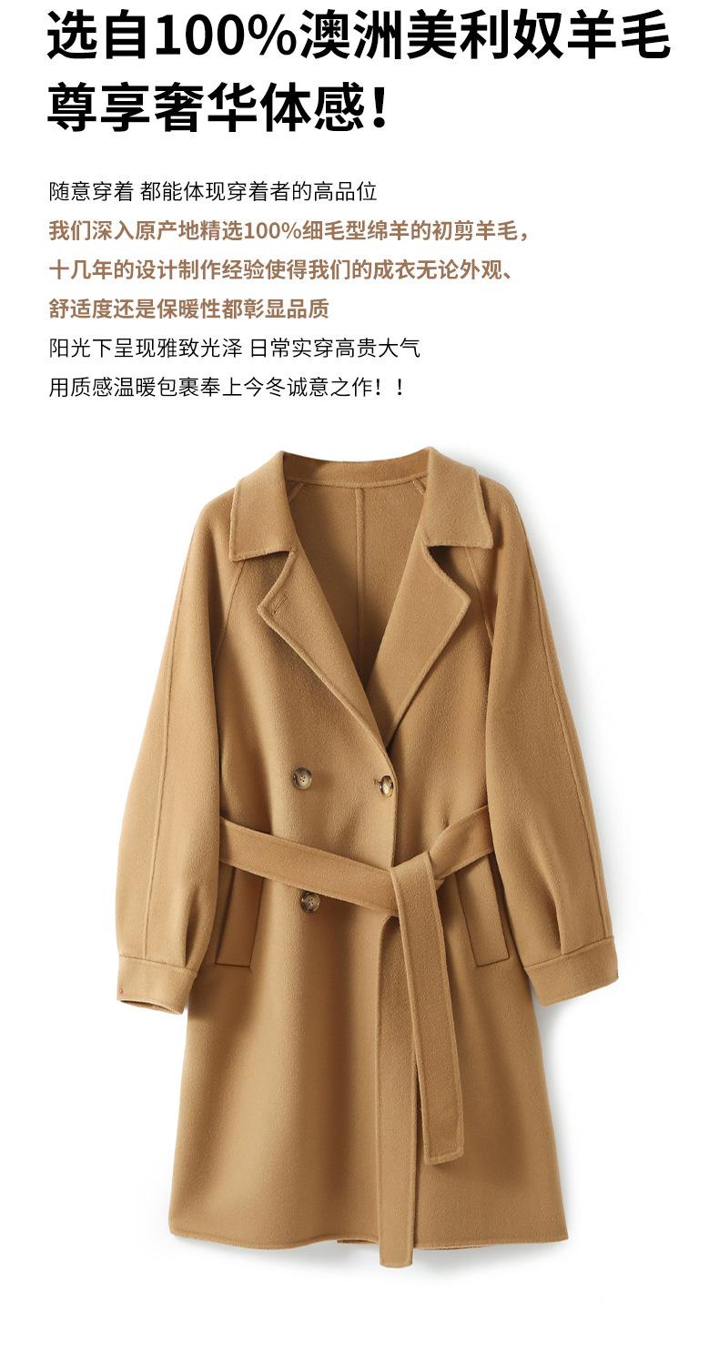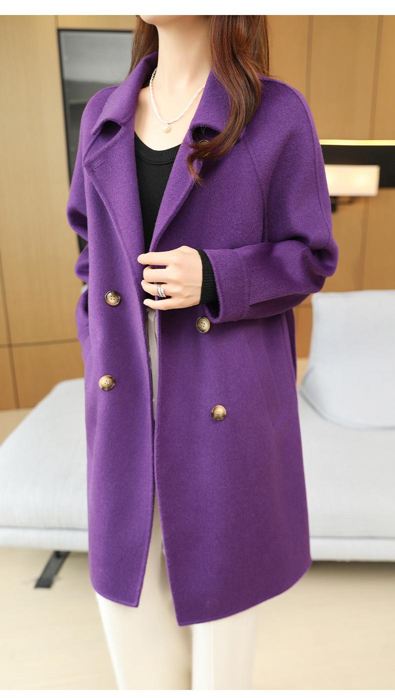 Abrigo de lana pura cruzado nuevo de otoño e invierno para mujer, abrigo de cachemira de doble cara elegante y de moda de longitud media