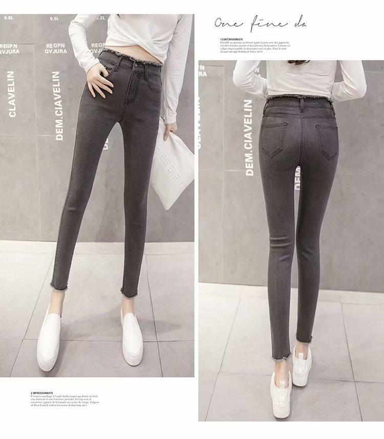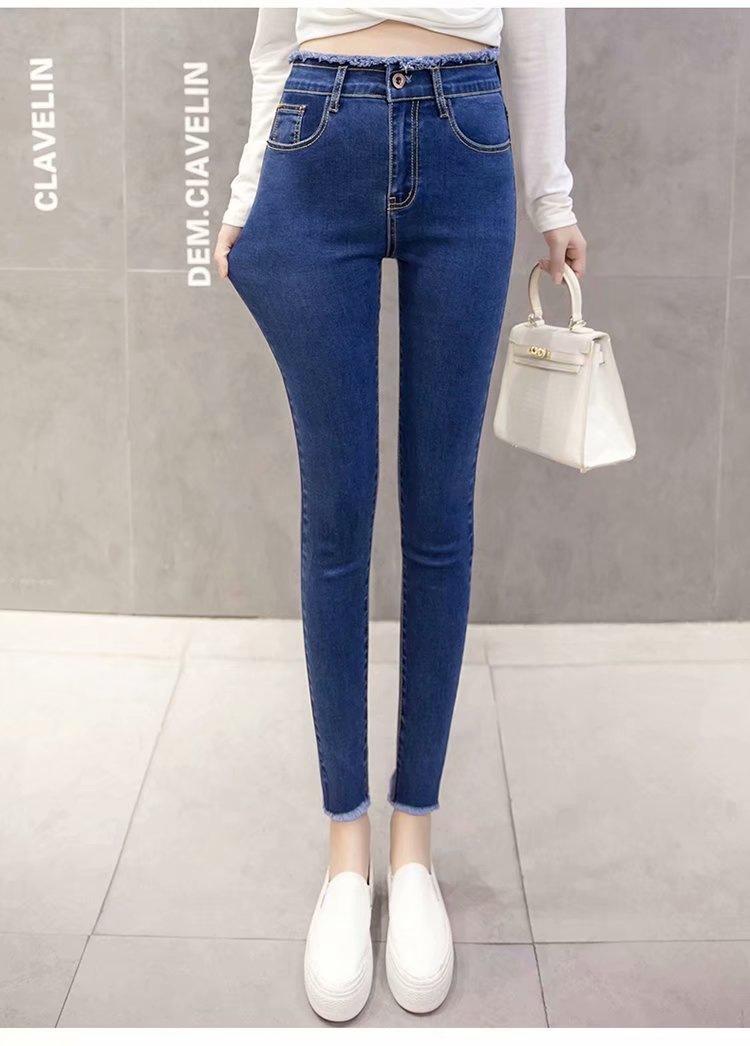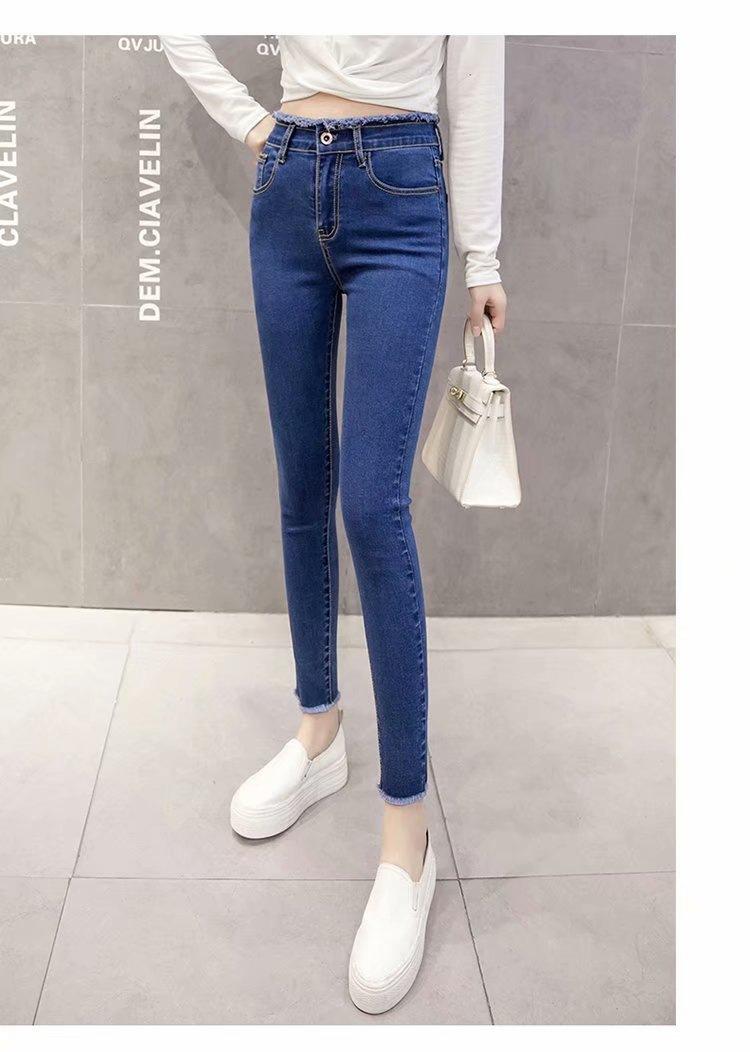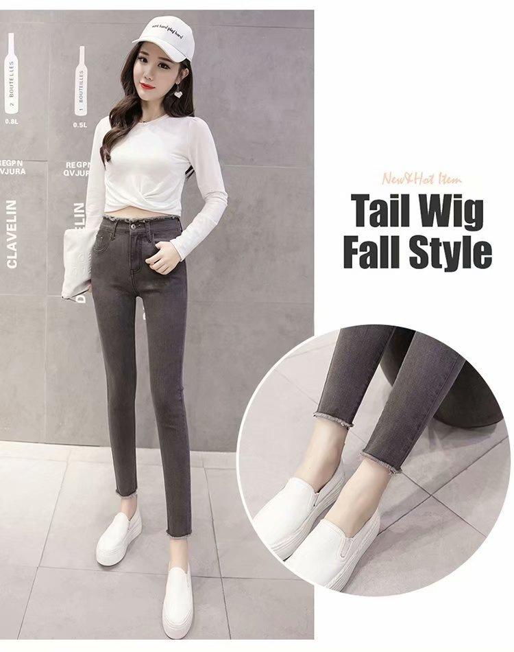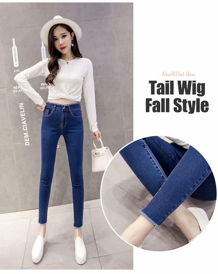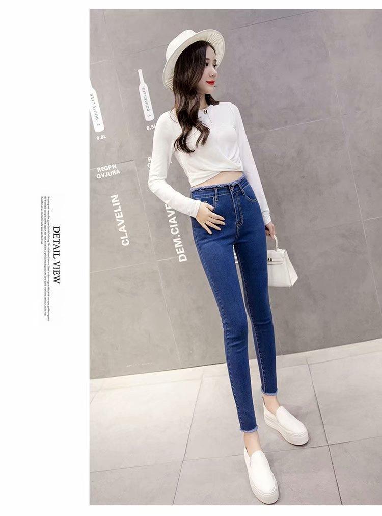 Jeans de Cintura Alta para Mujer Primavera y Verano 2023 Nuevo Ajuste Slim Versátil Ajustado Lápiz Nueve Puntos Pantalones Largos para Pies Pequeños
