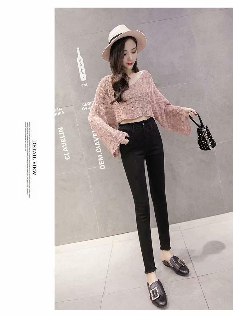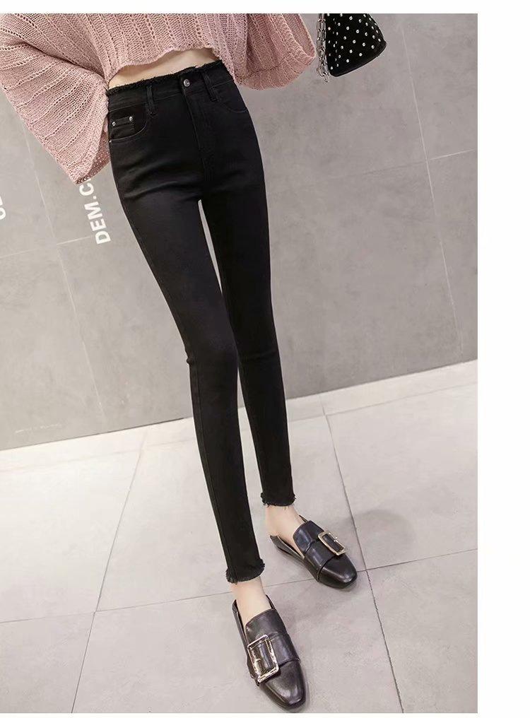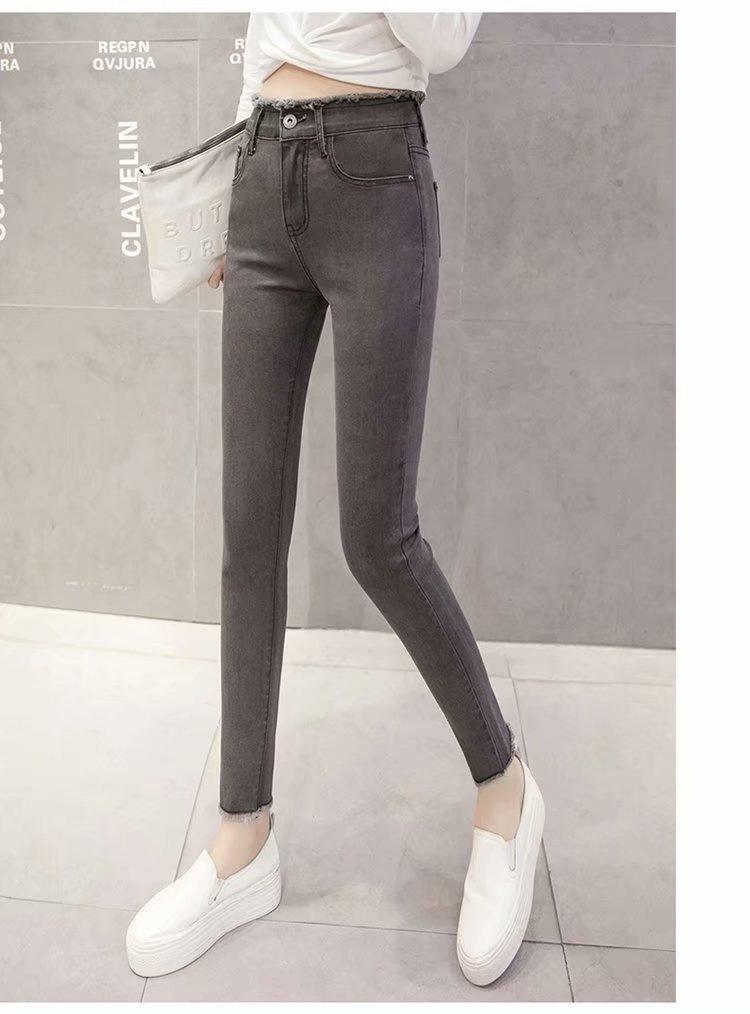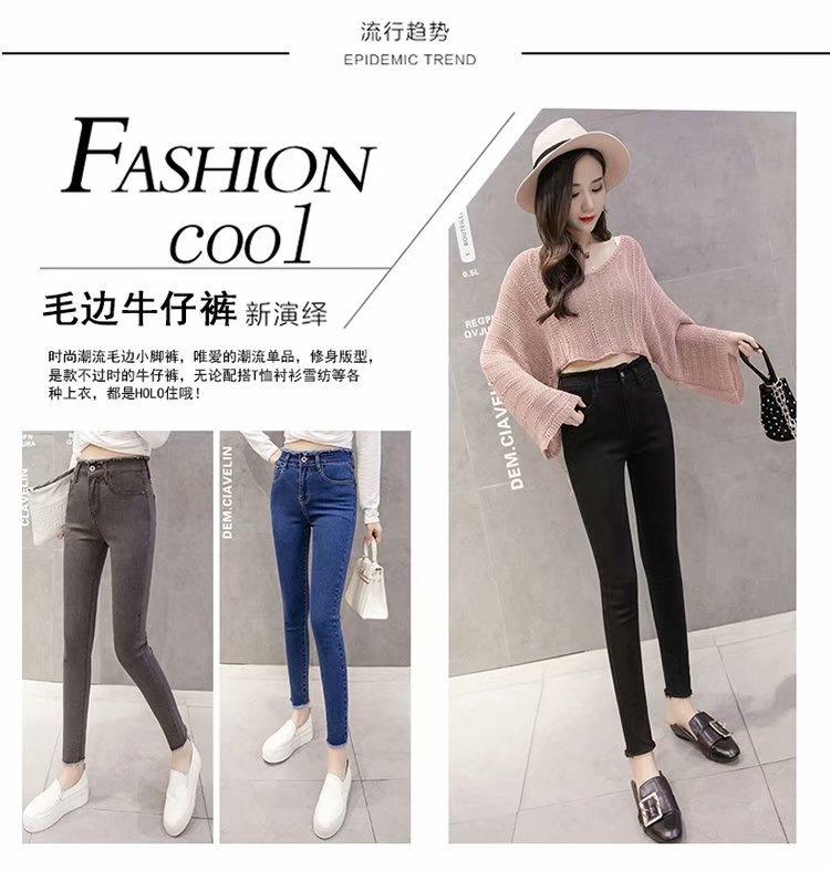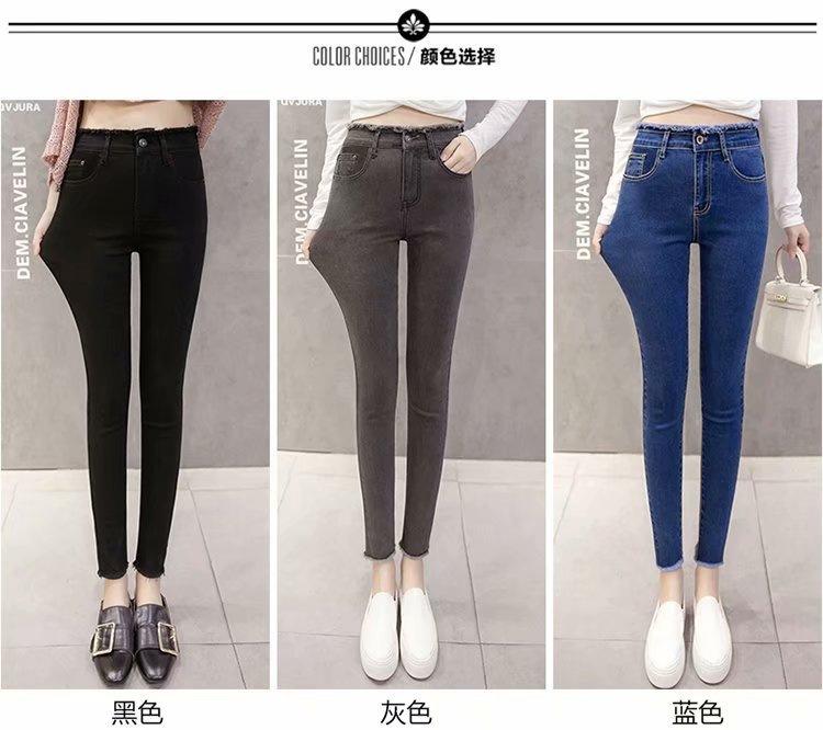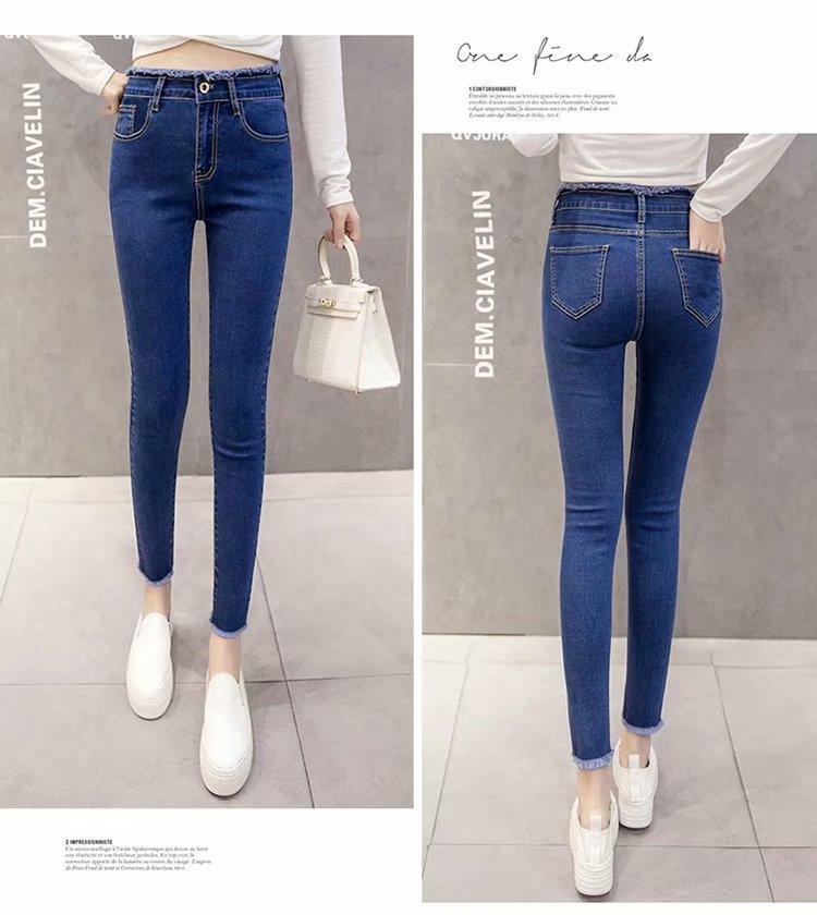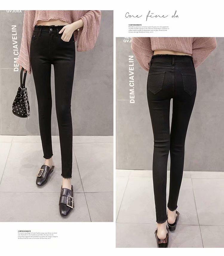 Jeans de Cintura Alta para Mujer Primavera y Verano 2023 Nuevo Ajuste Slim Versátil Ajustado Lápiz Nueve Puntos Pantalones Largos para Pies Pequeños