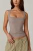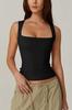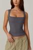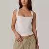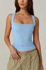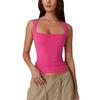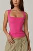 Camiseta básica ajustada de doble capa sin mangas con cuello cuadrado para mujer de Amazon Summer 2024